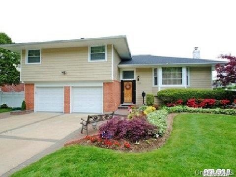 Welcome to this huge Cameo Split nestled in a serene, park-like setting directly across from the golf course! This well-maintained 4-bedroom, 2.5-bath gem offers space, comfort, and timeless charm. As you enter, you will discover beautiful hardwood floors, a sunlit living room, a formal dining room, and an inviting eat-in kitchen ideal for everyday living or entertaining. The cozy den with a wood-burning Fireplace & a convenient half bath provides a great place to relax, with sliders to the backyard. Additional highlights include a full finished basement, a 2-car attached garage, gas heat, and an oversized lot. Don’t miss this rare opportunity in Salisbury Estates. Taxes are without STAR Exemption!