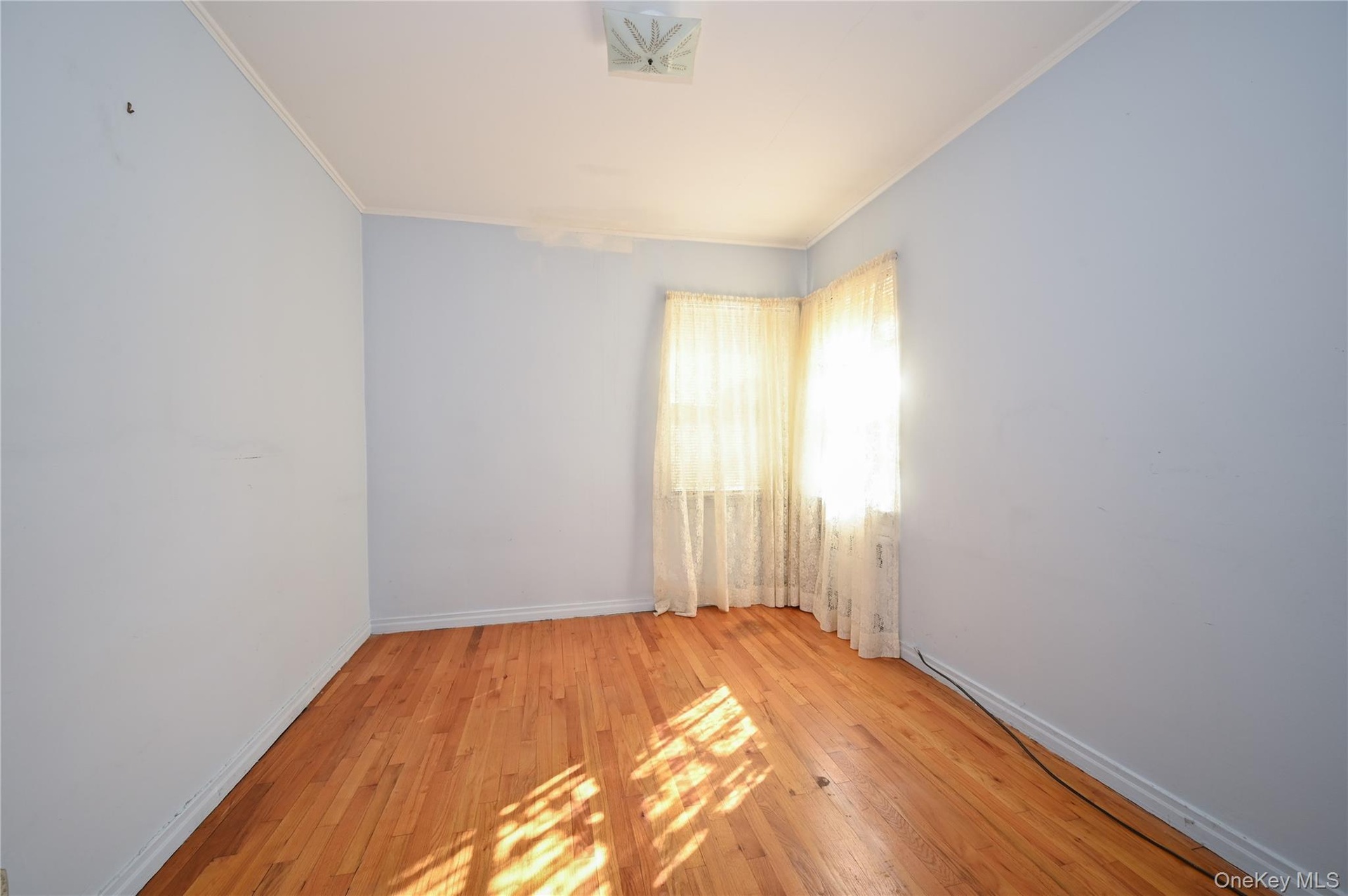 - Empty room with hardwood / wood-style floors and ornamental molding