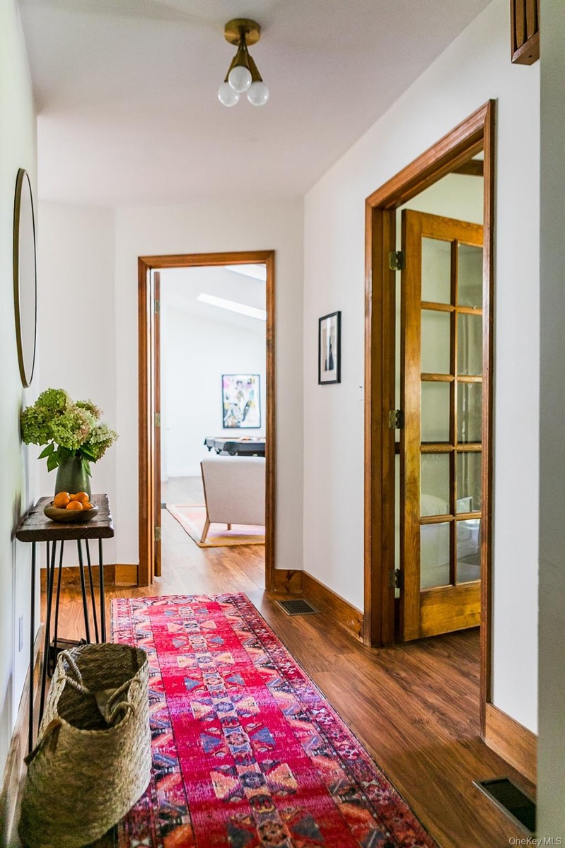 - Entryway featuring a skylight, hardwood / wood-style flooring, and healthy amount of natural light