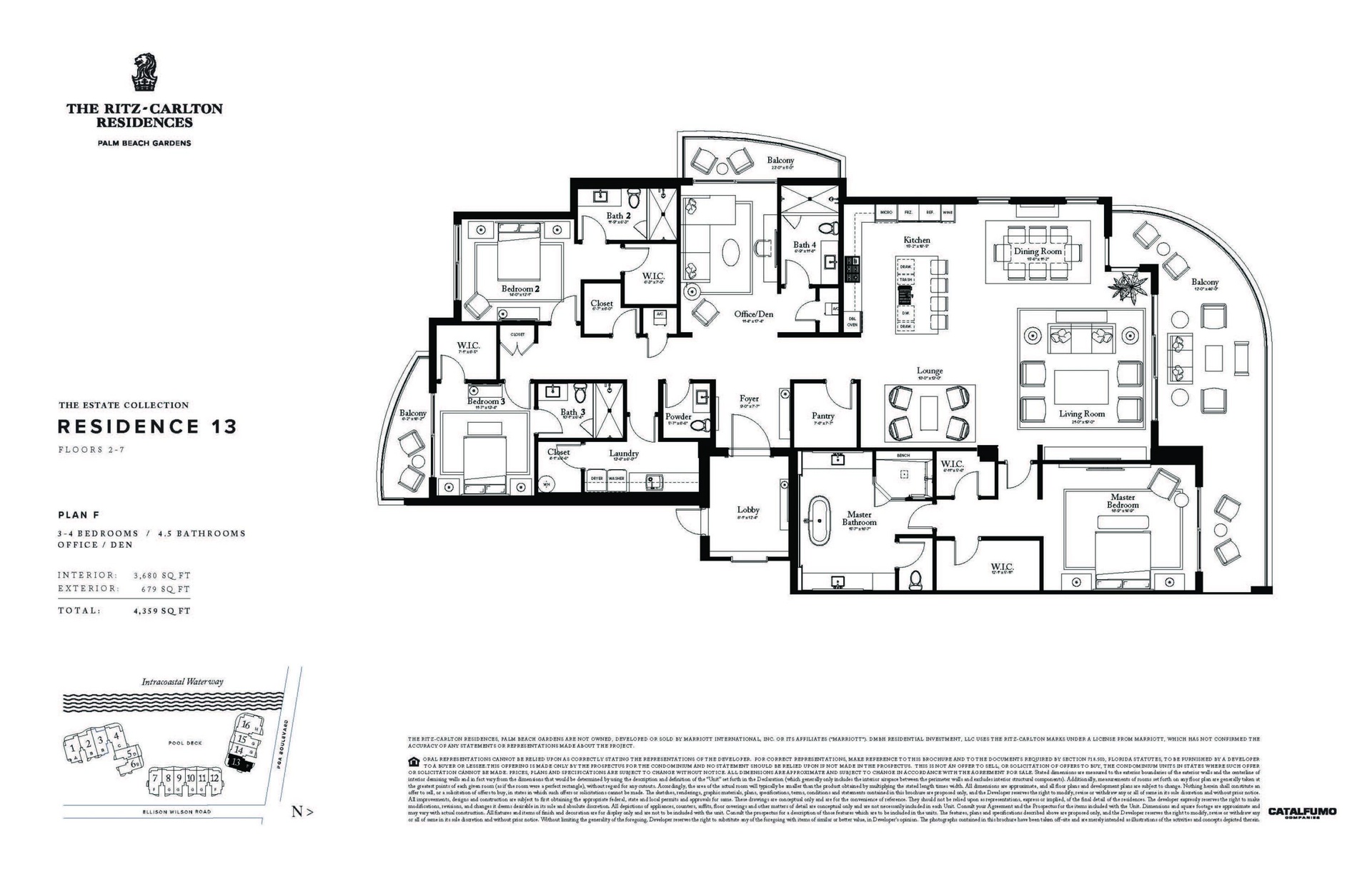 DescriptionResidence 213F is a spacious corner 3BR + Den, 4.5BA at The Ritz-Carlton Residences, Palm Beach Gardens. Located in the North Building, it offers southern exposures over the Intracoastal Waterway, private marina, and resort-style amenities. A flow-through layout and 12' deep balcony create seamless indoor-outdoor living with abundant natural light. The den has its own balcony and is one of only seven F plans with a full bath, allowing a flexible 4th bedroom. Floor-to-ceiling triple-pane glass frames sweeping Intracoastal sunsets. Features include European oak cabinetry, Wolf & Sub-Zero appliances, gas cooktop, and two garage spaces. Residents enjoy 20,000+ sq. ft. of amenities and the legendary service of The Ritz-Carlton. Completion Q2 2026