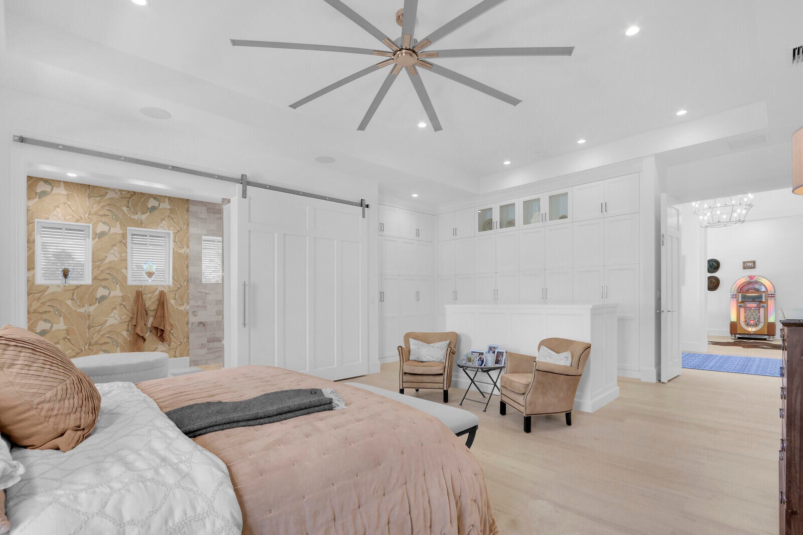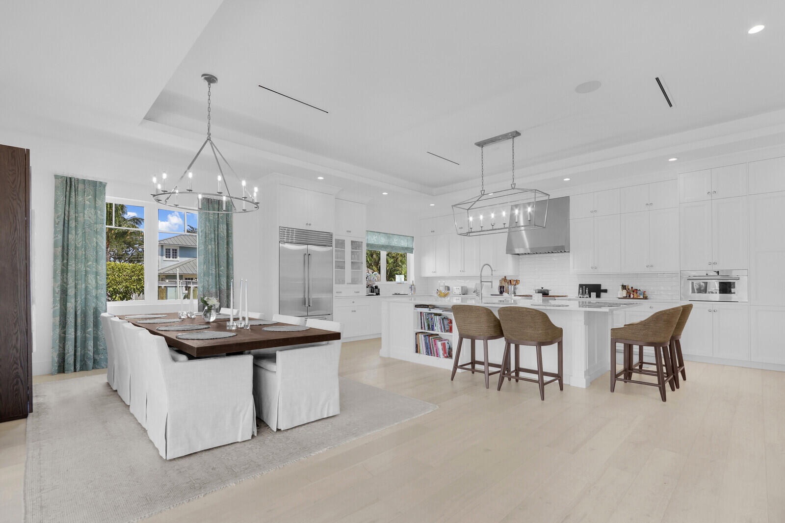 Gorgeous new-construction waterfront home in the heart of Jupiter! Situated on a rare corner lot at the end of a quiet cul-de-sac, this residence offers over 230' of water frontage with direct river, Intracoastal, and ocean access.The spacious 4-bedroom, 4-bath single-story ranch-style home features a split floor plan and Bahamian-inspired design. Highlights include custom mahogany louvered front and garage doors, Bahamian-style shutters and details, high-end impact windows and French doors, French oak beach-style hardwood floors, volume tray ceilings, and vaulted tongue-and-groove ceilings in the foyer and covered patio.The open floor plan is ideal for entertaining, anchored by a chef's kitchen from Palm Beach Cabinet Co. with an oversized island, Wolf propane stove with ...