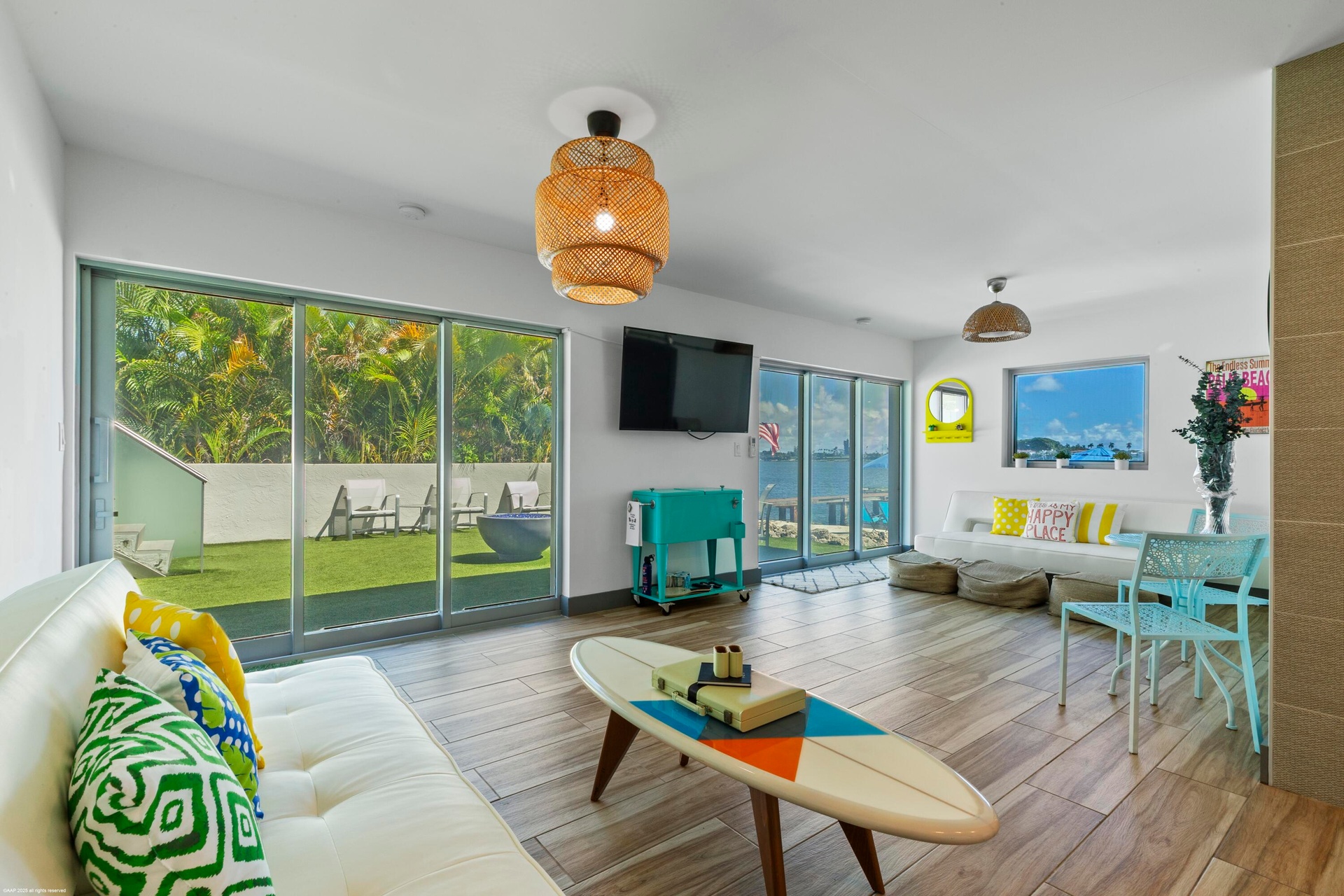 This stunning new direct Intracoastal Oasis was inspired by the incredibly talented minimalist architect Ludwig Mies who was the pioneer of modern architecture. The home's main level has the gourmet kitchen, the living, family and dining rooms all in one open space boasting beautiful views of the wide Intracoastal waterway and Palm Beach. Take the elevator to the third floor where the primary suite has a large deck overlooking the resort style back yard/pool/spa and beachfront. This third level has two additional bedrooms with en-suite baths and great closets. The VIP bedroom and club room are located on the ground floor and live like a separate home. Down at the beach sits a lovely private cabana giving guests the best seat in the house! Behind the entry gates, the air conditioned garage
