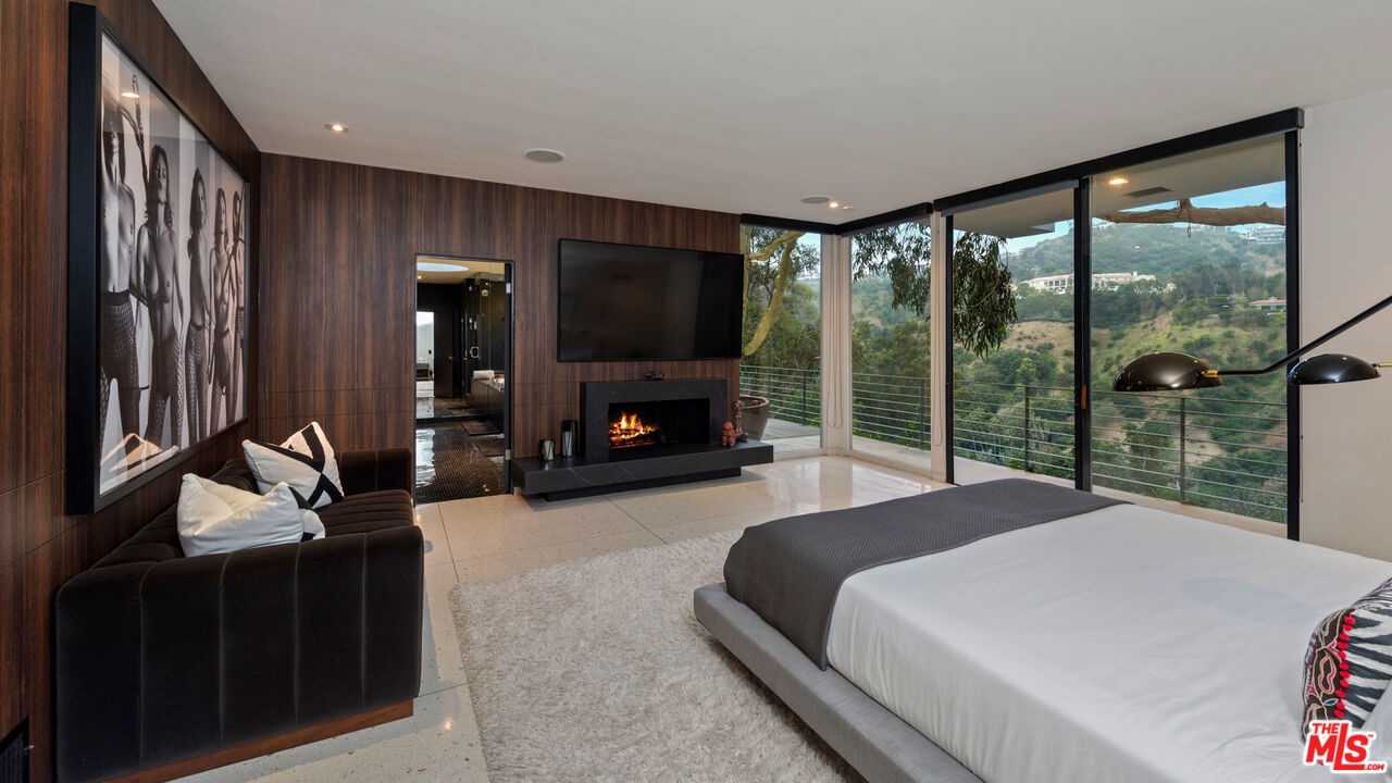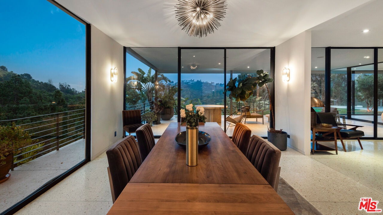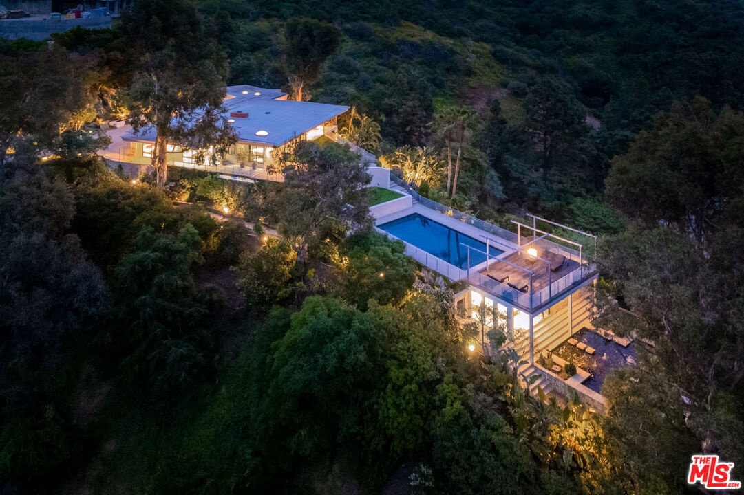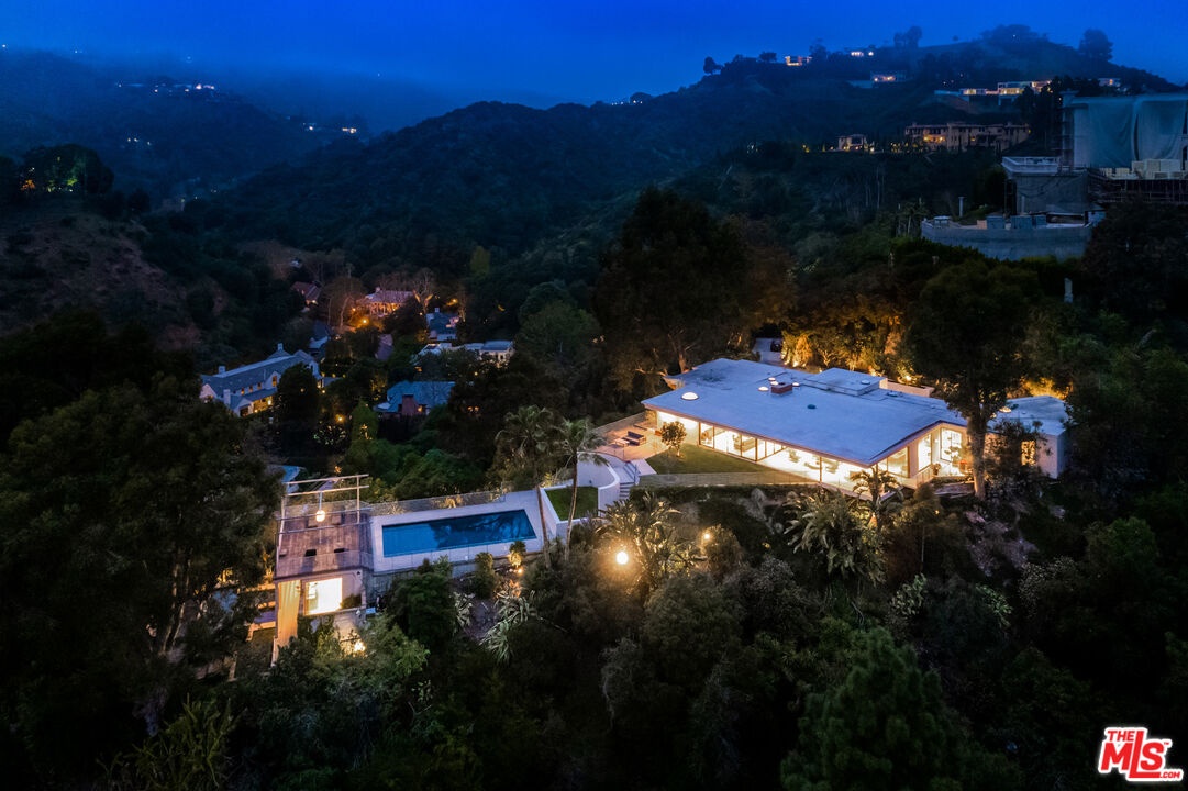 Available fully furnished and turnkey for short, midterm, or long term lease! Rustic and urbane, old-world and high tech, where rural estate meets downtown elegance in this once in a lifetime sensory immersion experience. Escape from ordinary down the a private driveway to the gravel motor court, earthy stone fascia, and arboreally adorned grand entrance to the exquisite execution of this contemporary hillside estate. Natural light will greet you in virtually every corner of the dramatically-styled indoor-outdoor open plan living spaces with floor to ceiling glass walls that reveal resort-style landscaping and marvelous canyon views. You will cherish every moment in the spacious living room with its uplifting fireplace, family room, dining room, gourmet kitchen with professional appliances, custom cabinetry and breakfast, and covered patio. Indulge your inner sun-worshiper on the rear lawn and wood deck or beside the shimmering pool in the viewing pavilion. Retreat to the opulent primary suite, nestled in pastoral splendor and featuring a fireplace, large walk-in closet and dressing area, and picturesque bath with dual basins, spa tub, and steam shower. A guest/maid suite with bath and laundry room is located off the kitchen and two additional guest rooms with a shared bathroom are available for your family and friends. A detached guest house with bedroom, bath, kitchenette and private patio with koi pond is available for extra special guests or private getaways. Expertly decorated with curated artwork and careful attention to the balance between color and texture and light and dark, as you ensconce yourself in a perpetual source of positive energy day and night, whether you're entertaining, working, or relaxing, alone or with family and friends. Located on a cul-de-sac off of Stone Canyon and tucked away in the gorgeous hills of Bel Air, this one-of-a-kind domicile is an encounter to remember.