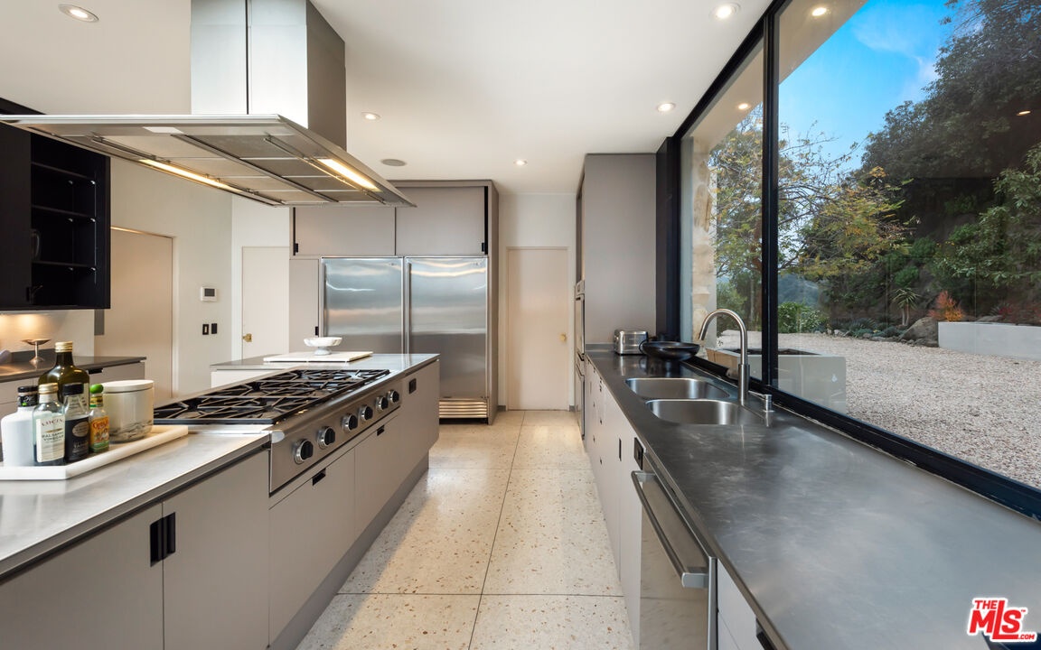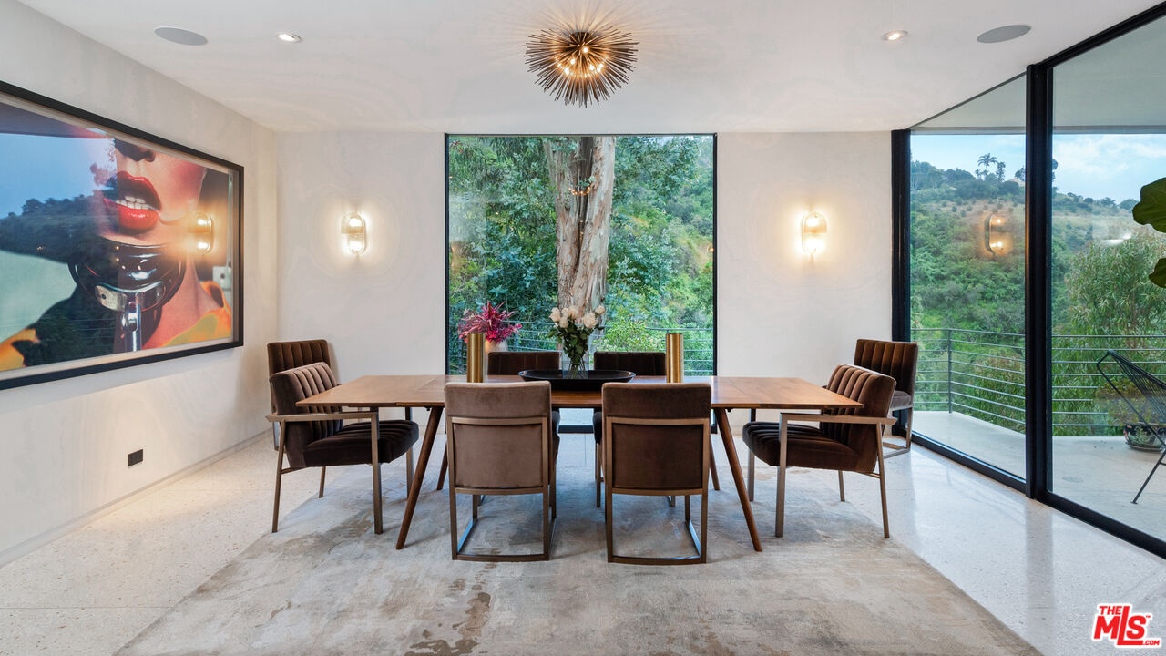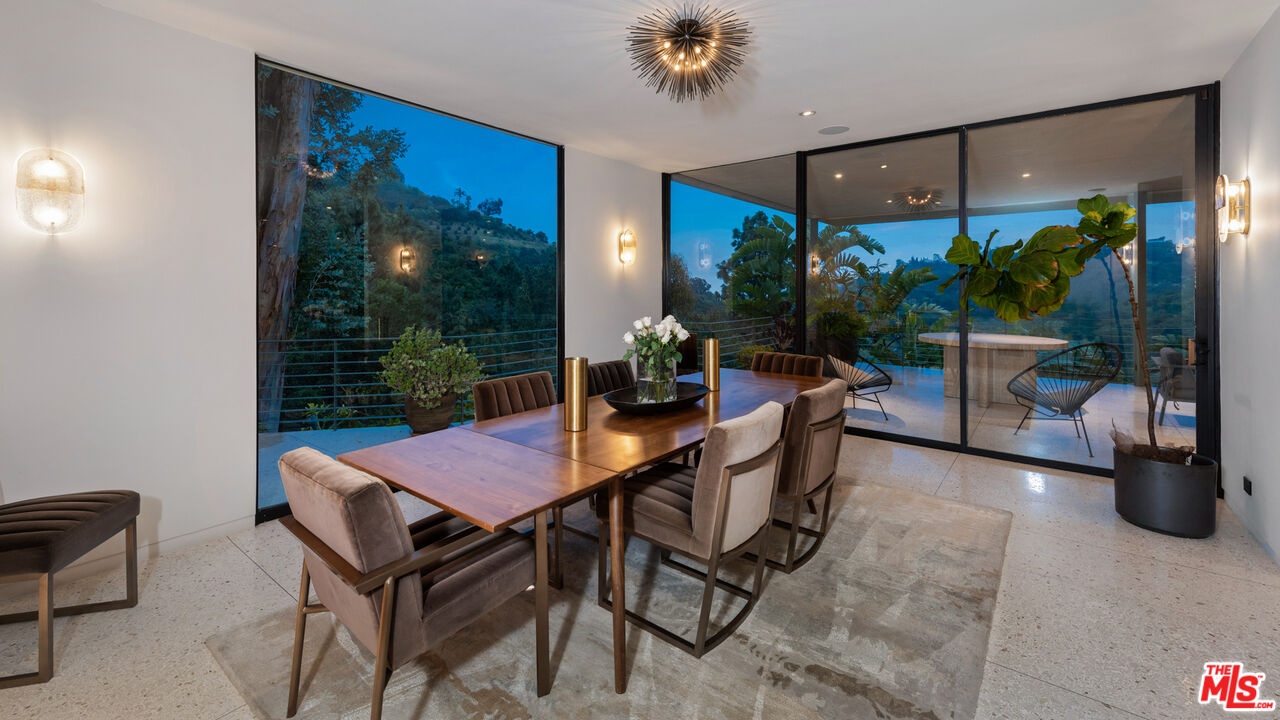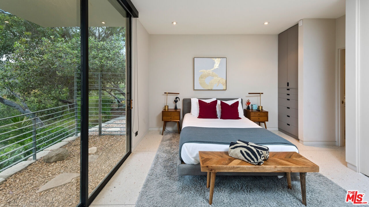 Available fully furnished and turnkey for short, midterm, or long term lease! Rustic and urbane, old-world and high tech, where rural estate meets downtown elegance in this once in a lifetime sensory immersion experience. Escape from ordinary down the a private driveway to the gravel motor court, earthy stone fascia, and arboreally adorned grand entrance to the exquisite execution of this contemporary hillside estate. Natural light will greet you in virtually every corner of the dramatically-styled indoor-outdoor open plan living spaces with floor to ceiling glass walls that reveal resort-style landscaping and marvelous canyon views. You will cherish every moment in the spacious living room with its uplifting fireplace, family room, dining room, gourmet kitchen with professional appliances, custom cabinetry and breakfast, and covered patio. Indulge your inner sun-worshiper on the rear lawn and wood deck or beside the shimmering pool in the viewing pavilion. Retreat to the opulent primary suite, nestled in pastoral splendor and featuring a fireplace, large walk-in closet and dressing area, and picturesque bath with dual basins, spa tub, and steam shower. A guest/maid suite with bath and laundry room is located off the kitchen and two additional guest rooms with a shared bathroom are available for your family and friends. A detached guest house with bedroom, bath, kitchenette and private patio with koi pond is available for extra special guests or private getaways. Expertly decorated with curated artwork and careful attention to the balance between color and texture and light and dark, as you ensconce yourself in a perpetual source of positive energy day and night, whether you're entertaining, working, or relaxing, alone or with family and friends. Located on a cul-de-sac off of Stone Canyon and tucked away in the gorgeous hills of Bel Air, this one-of-a-kind domicile is an encounter to remember.