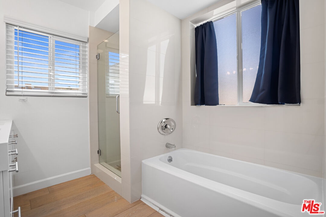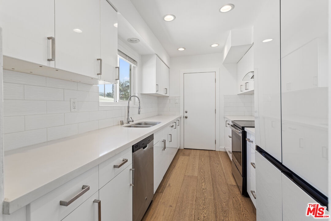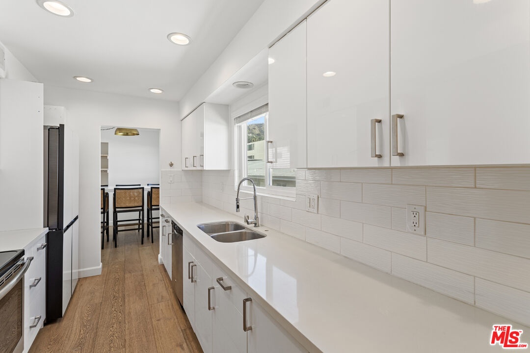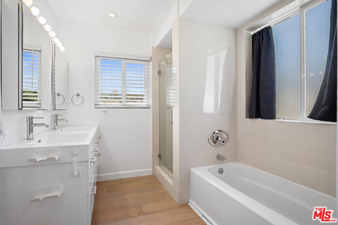 TREMENDOUS beautifully remodeled 2,140 SqFt rare Penthouse unit that shares no common walls is located in the center of it all! This 3 Bedroom plus office/den 2.5 bathroom condo is a short stroll to the shops and restaurants of WeHo's Sunset Strip and Hollywood, hikes in the hills(Runyon), and close to all of the main streets for getting around town. The expansive bright south facing open living space has newer luxury vinyl floors, wall to wall windows, and the space allows for endless possibilities to customize the home to your own taste. The updated kitchen has quartz countertops, subway tile backsplash, and newer stainless steel appliances. The large primary suite has views of the Hollywood Hills, a huge walk in closet, and a stylish and comfortable bathroom that features a standalone shower and bathtub. The two spacious secondary bedrooms have great closets spaces and the bonus den space would make for a perfect office or gym. The condo also had central HVAC, two car parking, and is in a secure entry building that has a nice pool and patio for enjoying the SoCal weather.