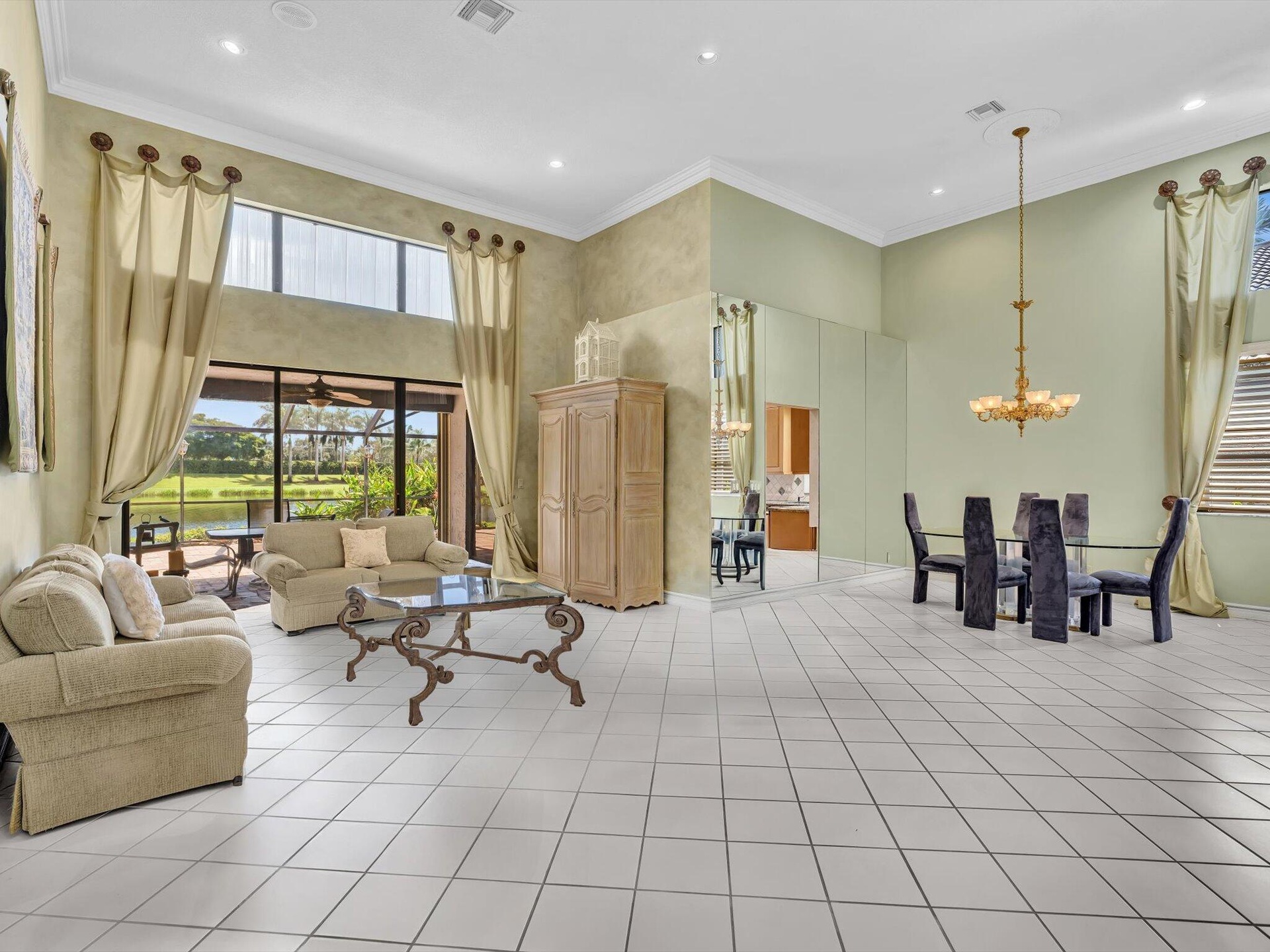 Step into a home where every detail celebrates the essence of Florida living. From the moment you walk through the door, your eyes are immediately drawn to the breathtaking views of the tranquil lake, a serene and natural backdrop. Whether you're enjoying your morning coffee or unwinding with a glass of wine at sunset, the beauty of nature is always just beyond your window.This residence boasts soaring high ceilings, with the living room, kitchen, and primary bedroom all framing those spectacular lakefront views. The beautifully upgraded kitchen is designed for both elegance and function, while the spa-like bathrooms feature luxurious details, including a steam shower with powerful jets. Perfect for relaxing after a workout, a round of golf, or a day of activity.