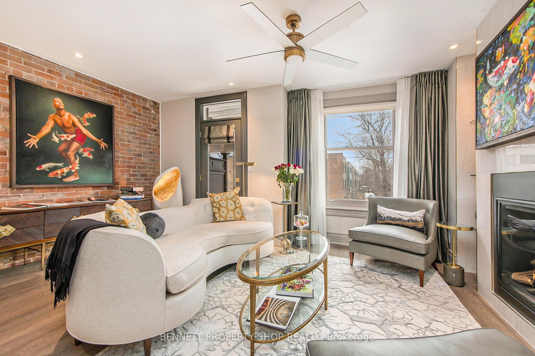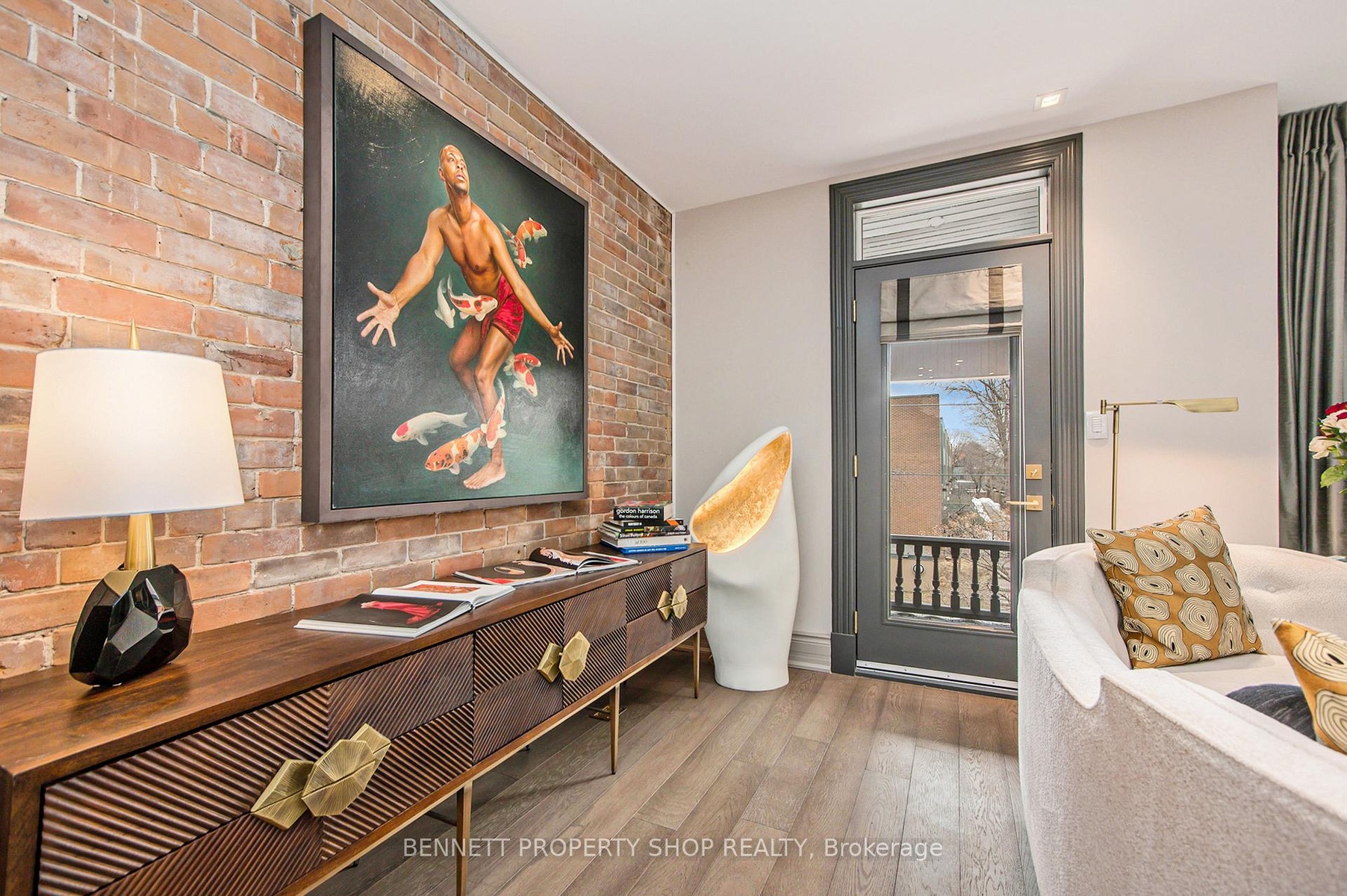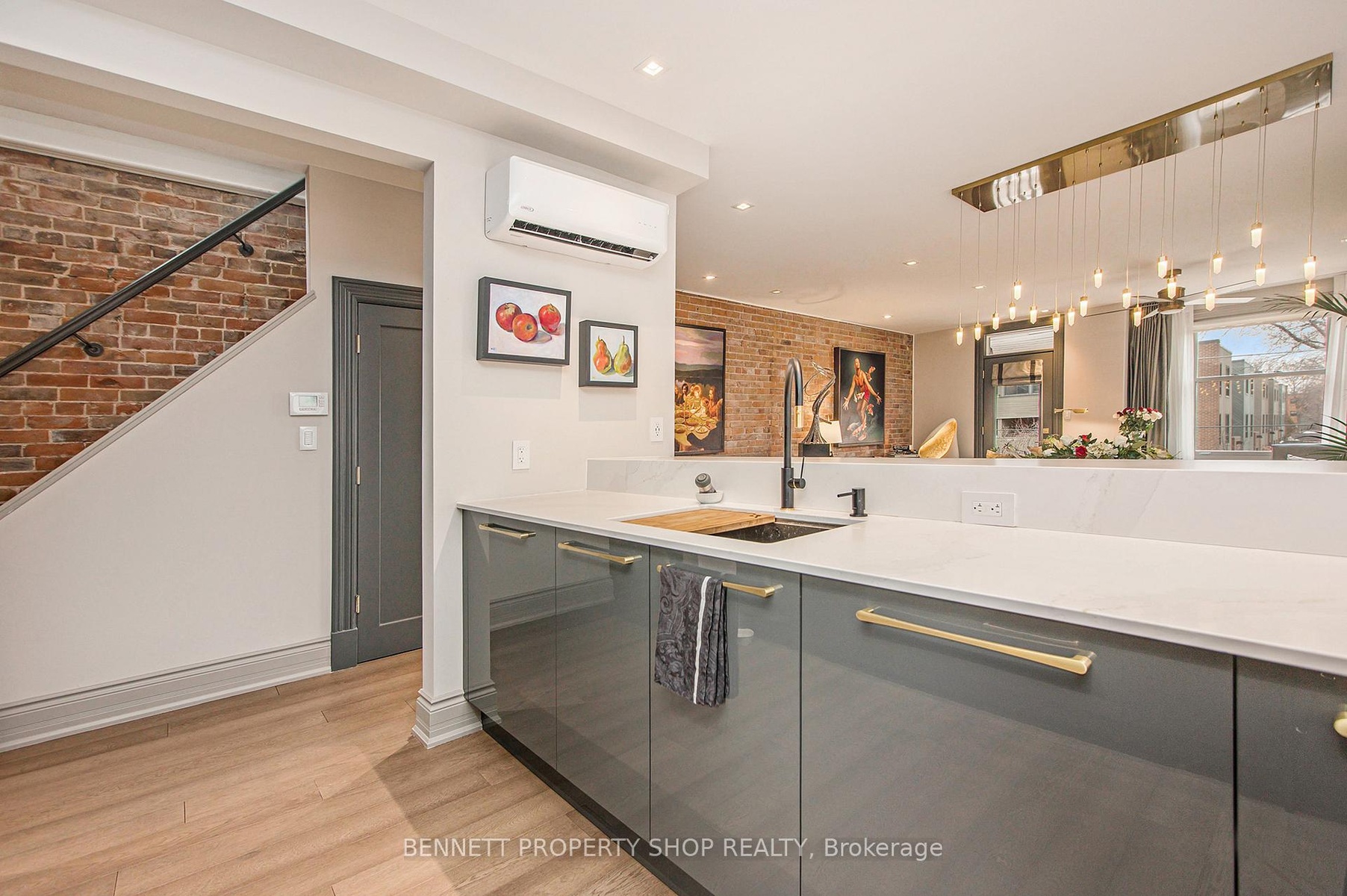 Discover the pinnacle of refined living in this luxuriously furnished 2 storey, 2-bedroom + den pied-à-terre, designed by Viali Design in Ottawa's vibrant Golden Triangle, offering unparalleled access to Elgin Street, the Rideau Canal, Parliament Hill, ByWard Market, and Lansdownes entertainment hub, with upscale dining and boutique shopping just steps away. You'll be inspired to cook in your fully equipped custom chefs kitchen featuring an induction cooktop, 2 built-in ovens, elegant countertops, dedicated wine storage, and premium cookware for a cozy night in. The upscale living room boasts bespoke designer furnishings, exposed brick, curated artwork, and a charming gas fireplace, while the dining room seats six for intimate gatherings, complemented by a private balcony off the living room. On this main level, you'll also find your Queen bedroom with mirrored wardrobes, plus a spa-inspired bathroom featuring a deep soaker tub, glass enclosure shower with rain shower/hand shower, heated towel rack, and plush towels, all enhanced by Control4 automation for ambient lighting. There are automated blinds that go down at dusk and up at dawn throughout as well as custom silk drapes. Ascend to your second level loft den or secluded rooftop patio with panoramic views, alongside your primary King bedroom. The showstoppers of this primary suite include a walk-in closet, opulent linens, and music streaming via invisible speakers, custom silk window treatments, and Canadian artwork. This executive apartment features radiant heated floors and efficient air conditioning, with heat, water, and high-speed internet included (tenant only responsible for hydro). Street parking permits are available through the City of Ottawa. A 24-month lease is preferred. This executive designer apartment is a rare blend of luxury and functionality. Contact us today for a private viewing!