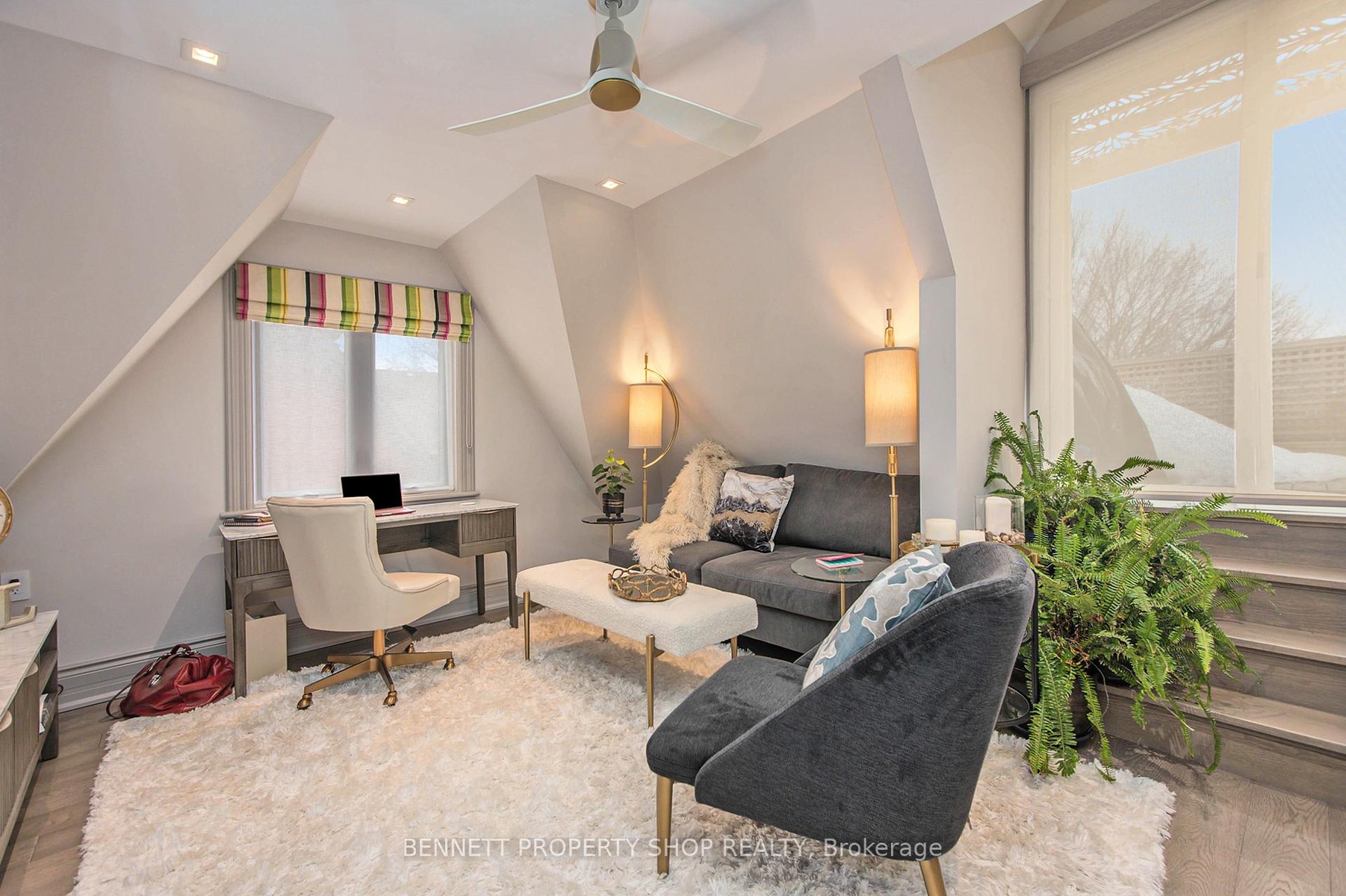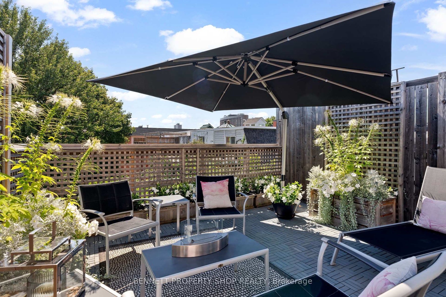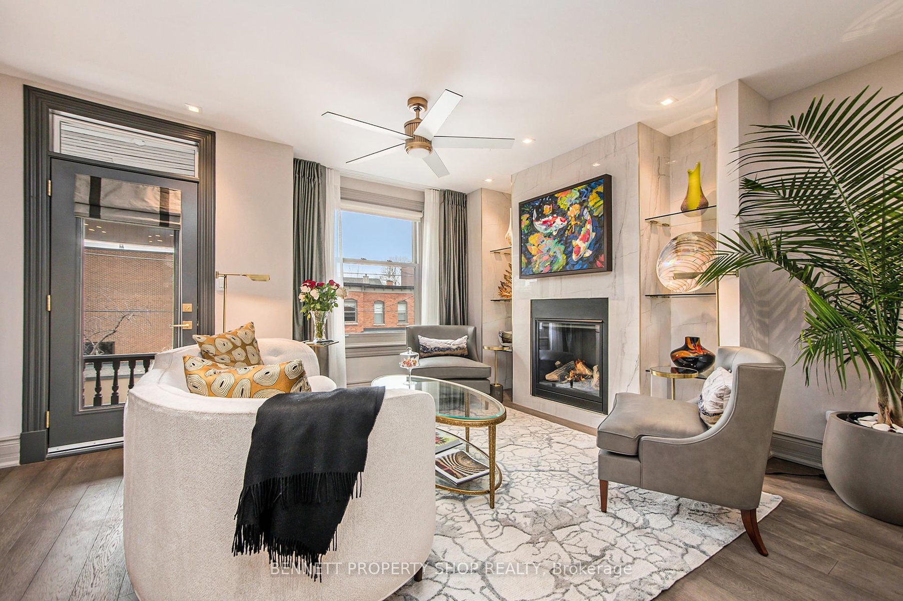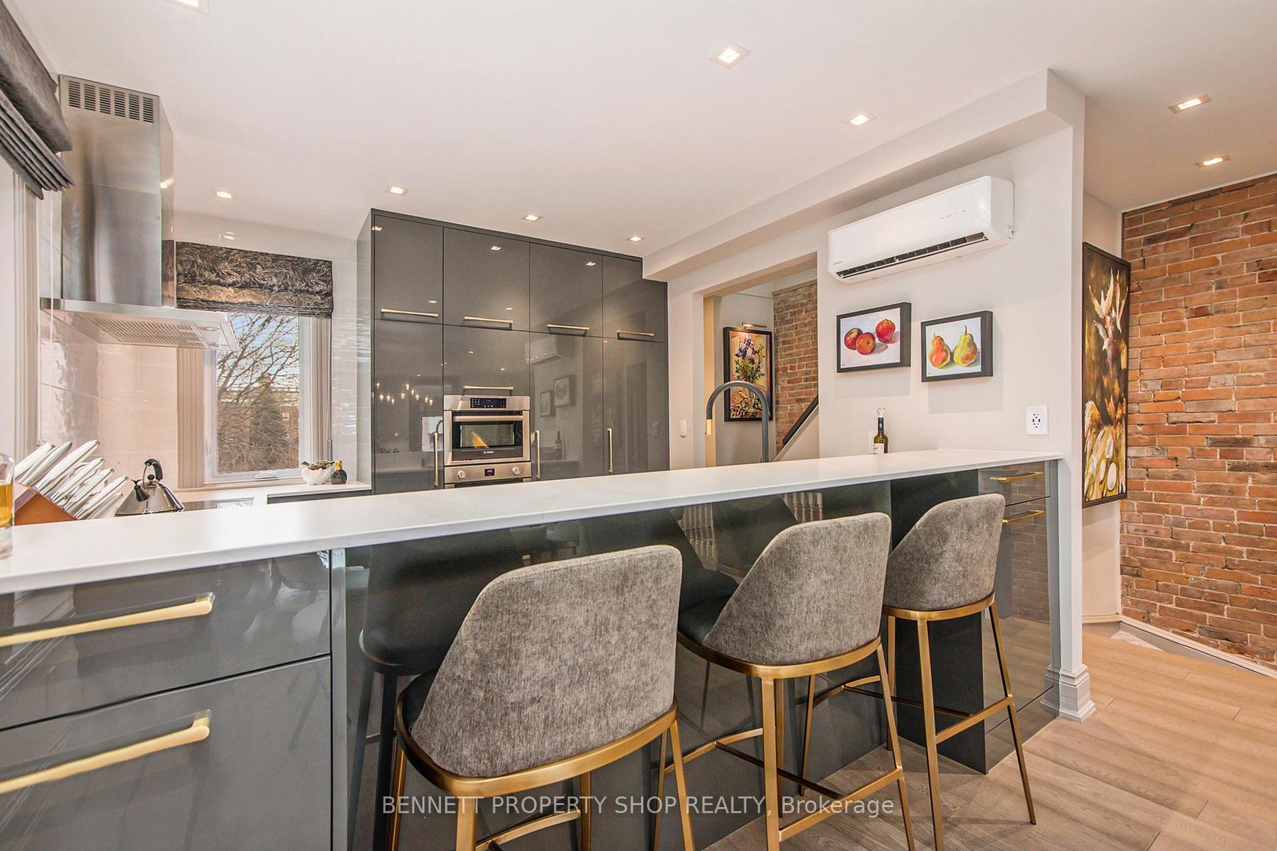 Discover the pinnacle of refined living in this luxuriously furnished 2 storey, 2-bedroom + den pied-à-terre, designed by Viali Design in Ottawa's vibrant Golden Triangle, offering unparalleled access to Elgin Street, the Rideau Canal, Parliament Hill, ByWard Market, and Lansdownes entertainment hub, with upscale dining and boutique shopping just steps away. You'll be inspired to cook in your fully equipped custom chefs kitchen featuring an induction cooktop, 2 built-in ovens, elegant countertops, dedicated wine storage, and premium cookware for a cozy night in. The upscale living room boasts bespoke designer furnishings, exposed brick, curated artwork, and a charming gas fireplace, while the dining room seats six for intimate gatherings, complemented by a private balcony off the living room. On this main level, you'll also find your Queen bedroom with mirrored wardrobes, plus a spa-inspired bathroom featuring a deep soaker tub, glass enclosure shower with rain shower/hand shower, heated towel rack, and plush towels, all enhanced by Control4 automation for ambient lighting. There are automated blinds that go down at dusk and up at dawn throughout as well as custom silk drapes. Ascend to your second level loft den or secluded rooftop patio with panoramic views, alongside your primary King bedroom. The showstoppers of this primary suite include a walk-in closet, opulent linens, and music streaming via invisible speakers, custom silk window treatments, and Canadian artwork. This executive apartment features radiant heated floors and efficient air conditioning, with heat, water, and high-speed internet included (tenant only responsible for hydro). Street parking permits are available through the City of Ottawa. A 24-month lease is preferred. This executive designer apartment is a rare blend of luxury and functionality. Contact us today for a private viewing!