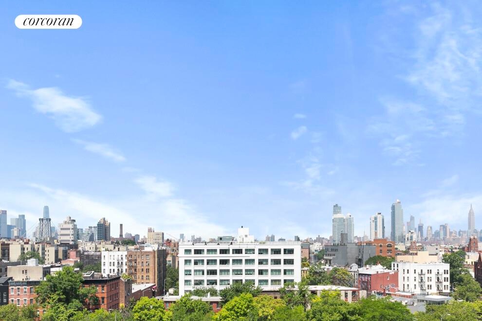 An expansive, fully furnished and landscaped roof deck overlooking Brooklyn and Manhattan