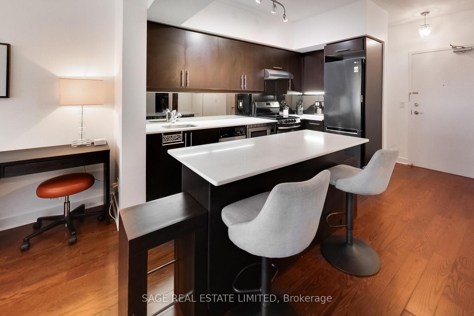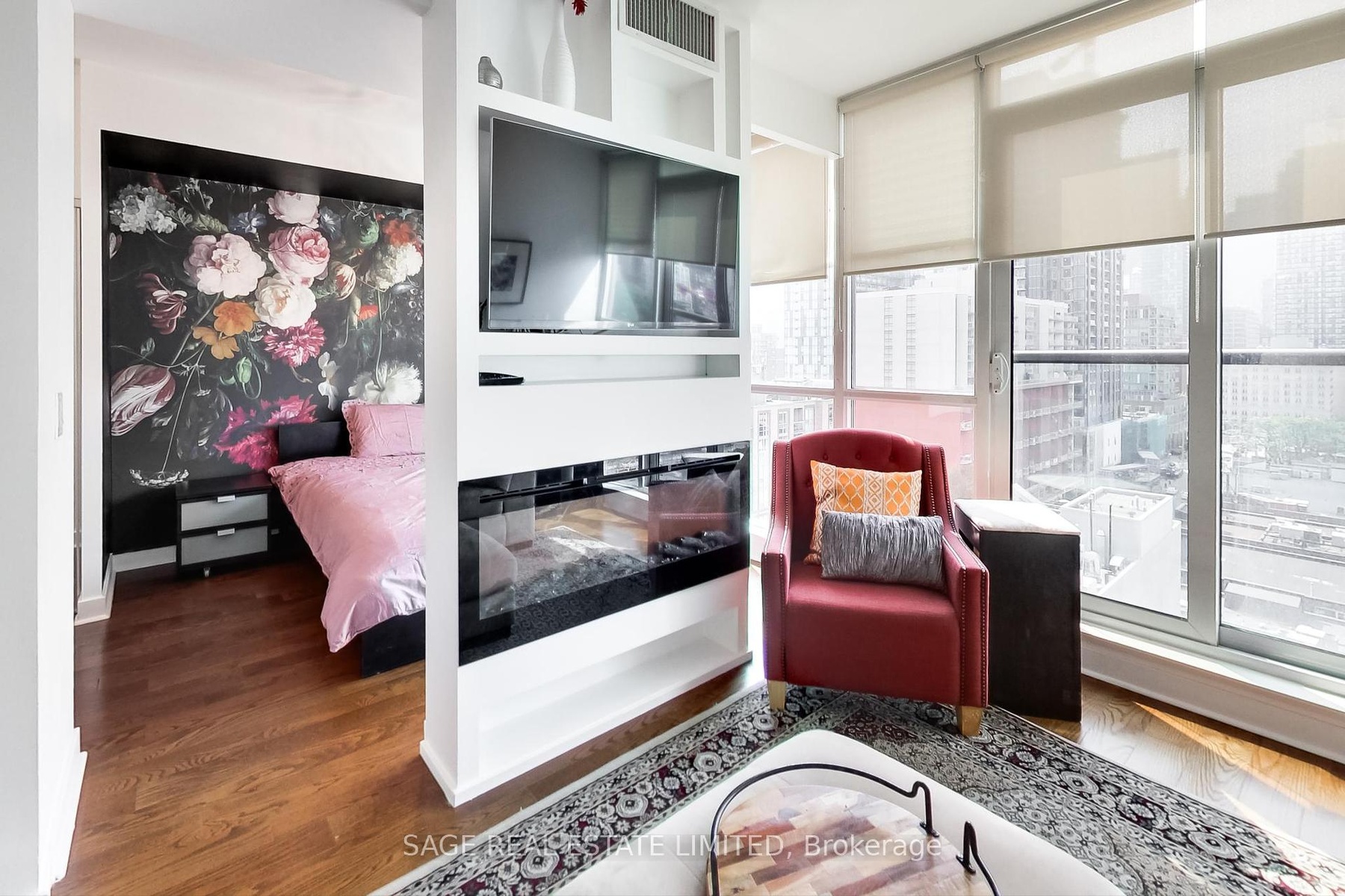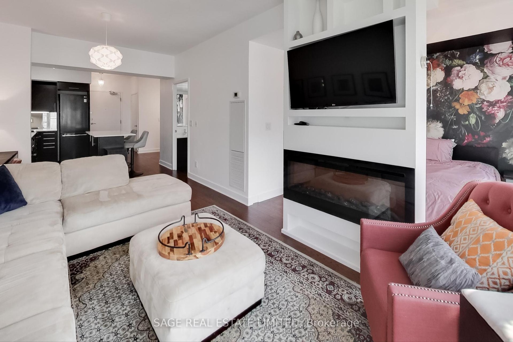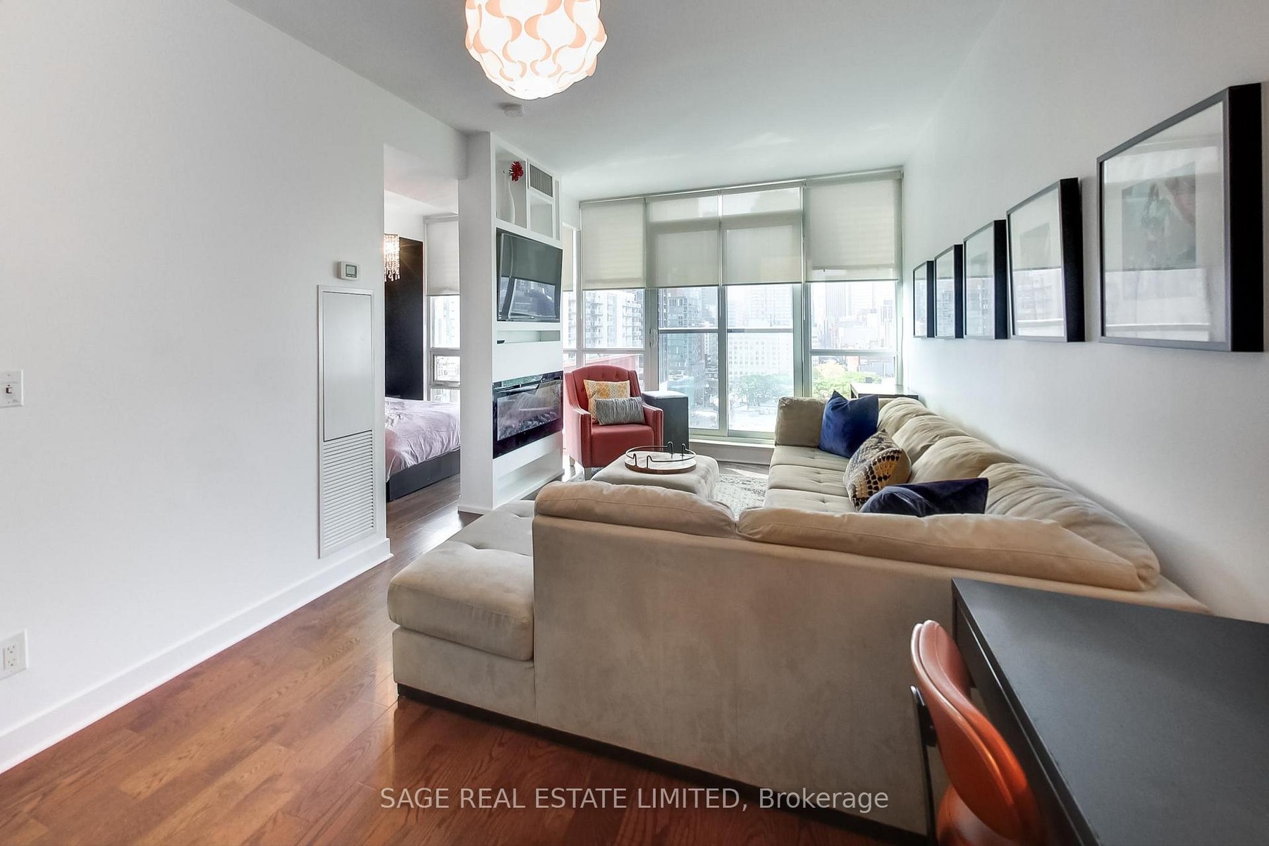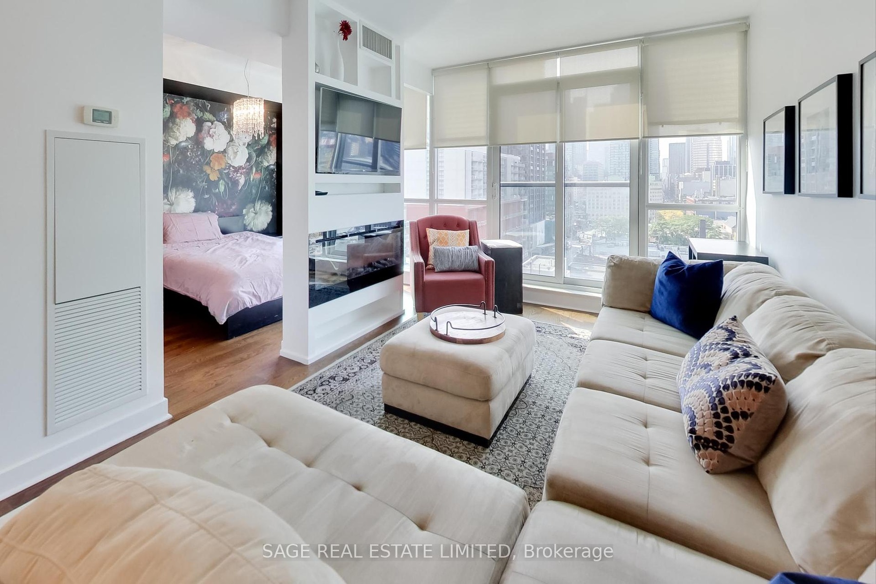 Welcome to The Modern at 320 Richmond St E - where contemporary design meets the vibrant pulse of downtown living. This fully furnished 1+1 bedroom suite is framed by floor-to-ceiling windows, filling the space with natural light and west-facing city views. The open-concept layout feels both functional and inviting, with a rare built-in fireplace feature creating a stylish focal point between the living and sleeping areas. The kitchen is sleek and efficient, with stone countertops, stainless steel appliances, and a generous island that doubles as the perfect gathering spot. The den is enhanced by built-in storage, making it an ideal home office or creative workspace. Life here extends far beyond the suite itself. Step up to the rooftop and take in panoramic skyline views while lounging by the pool or hosting friends at the BBQ area. Recharge in the gym or sauna, and count on 24-hour concierge service, bike storage and visitor parking for everyday convenience. At your doorstep lies the best of the city: King Streets restaurants and nightlife, the historic St. Lawrence Market, George Brown College, the Distillery District, and effortless TTC access to anywhere you need to be. This is downtown living at its finest - where style, function, and location come together seamlessly.