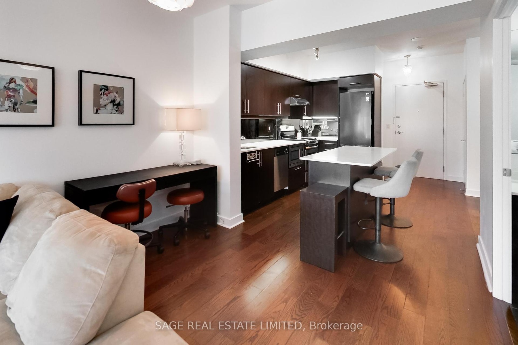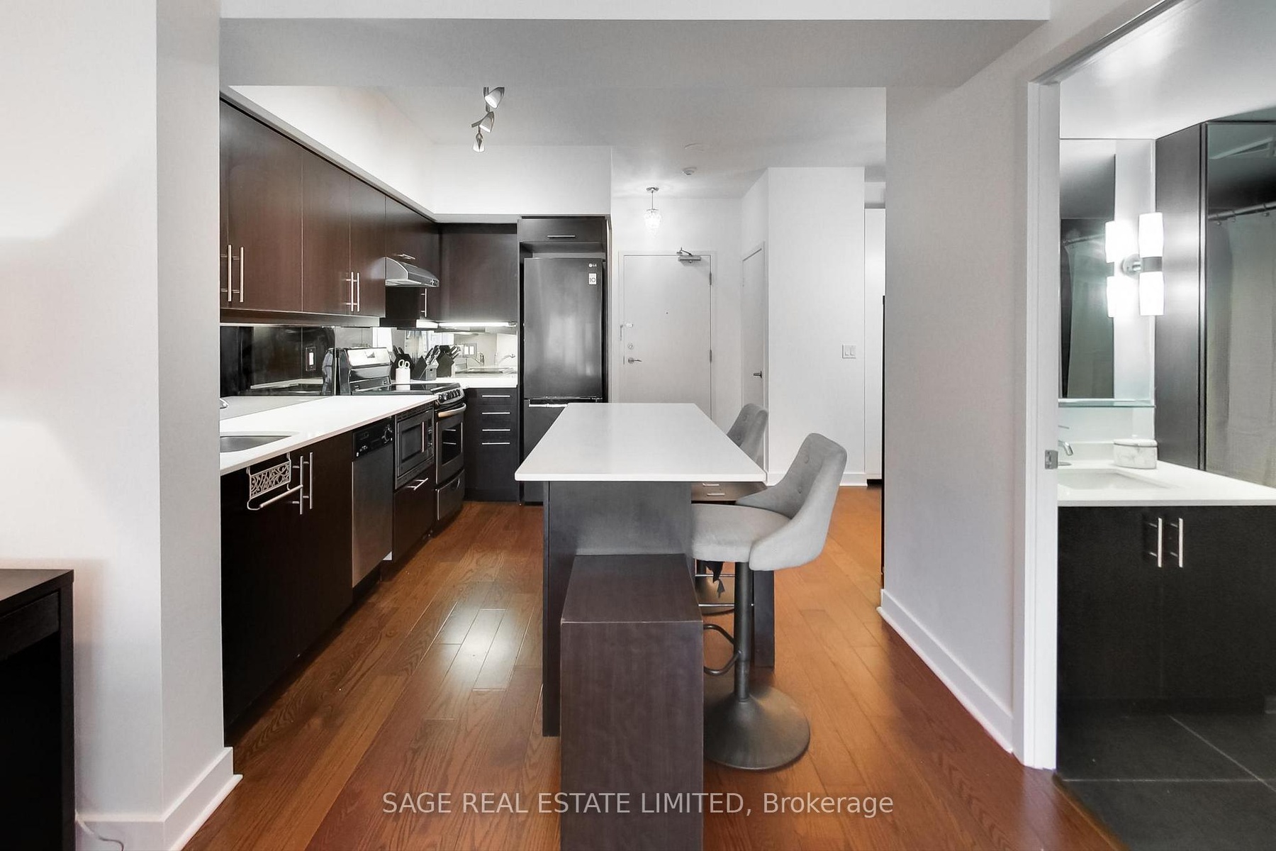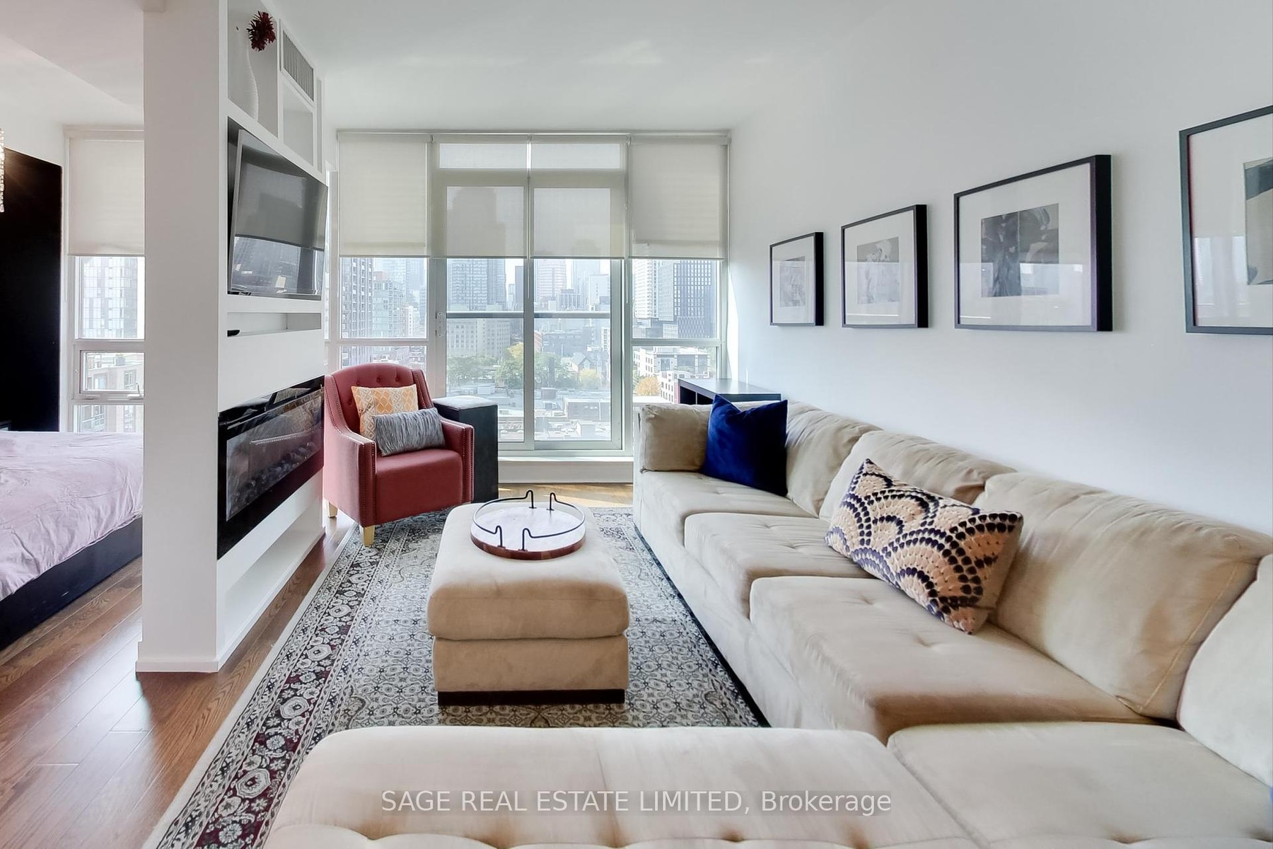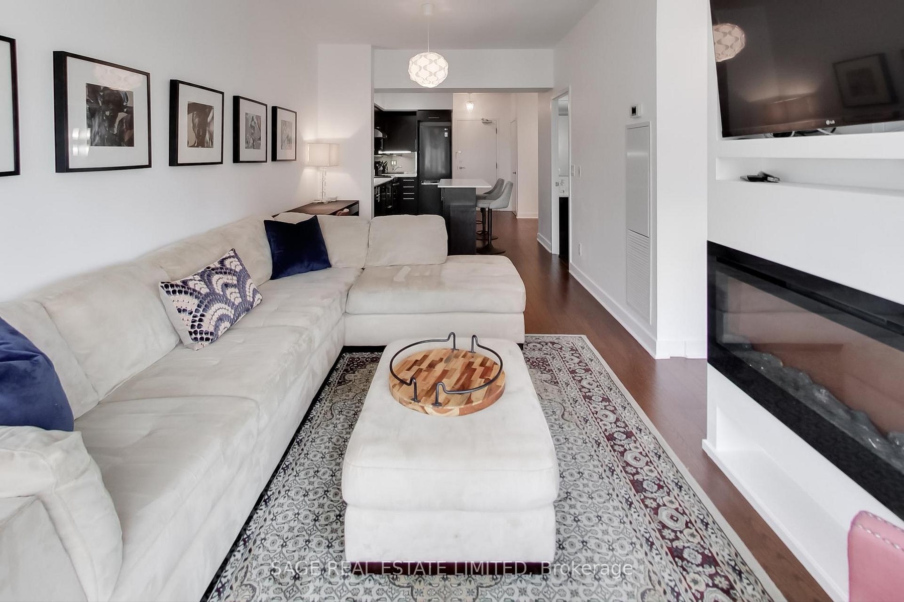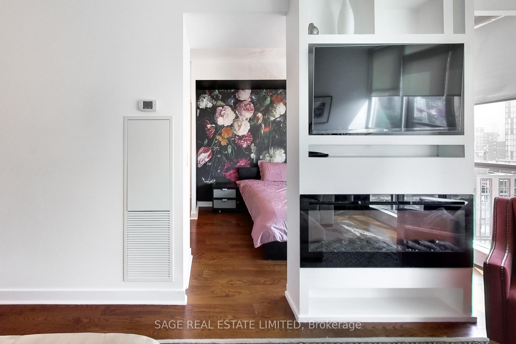 Welcome to The Modern at 320 Richmond St E - where contemporary design meets the vibrant pulse of downtown living. This fully furnished 1+1 bedroom suite is framed by floor-to-ceiling windows, filling the space with natural light and west-facing city views. The open-concept layout feels both functional and inviting, with a rare built-in fireplace feature creating a stylish focal point between the living and sleeping areas. The kitchen is sleek and efficient, with stone countertops, stainless steel appliances, and a generous island that doubles as the perfect gathering spot. The den is enhanced by built-in storage, making it an ideal home office or creative workspace. Life here extends far beyond the suite itself. Step up to the rooftop and take in panoramic skyline views while lounging by the pool or hosting friends at the BBQ area. Recharge in the gym or sauna, and count on 24-hour concierge service, bike storage and visitor parking for everyday convenience. At your doorstep lies the best of the city: King Streets restaurants and nightlife, the historic St. Lawrence Market, George Brown College, the Distillery District, and effortless TTC access to anywhere you need to be. This is downtown living at its finest - where style, function, and location come together seamlessly.