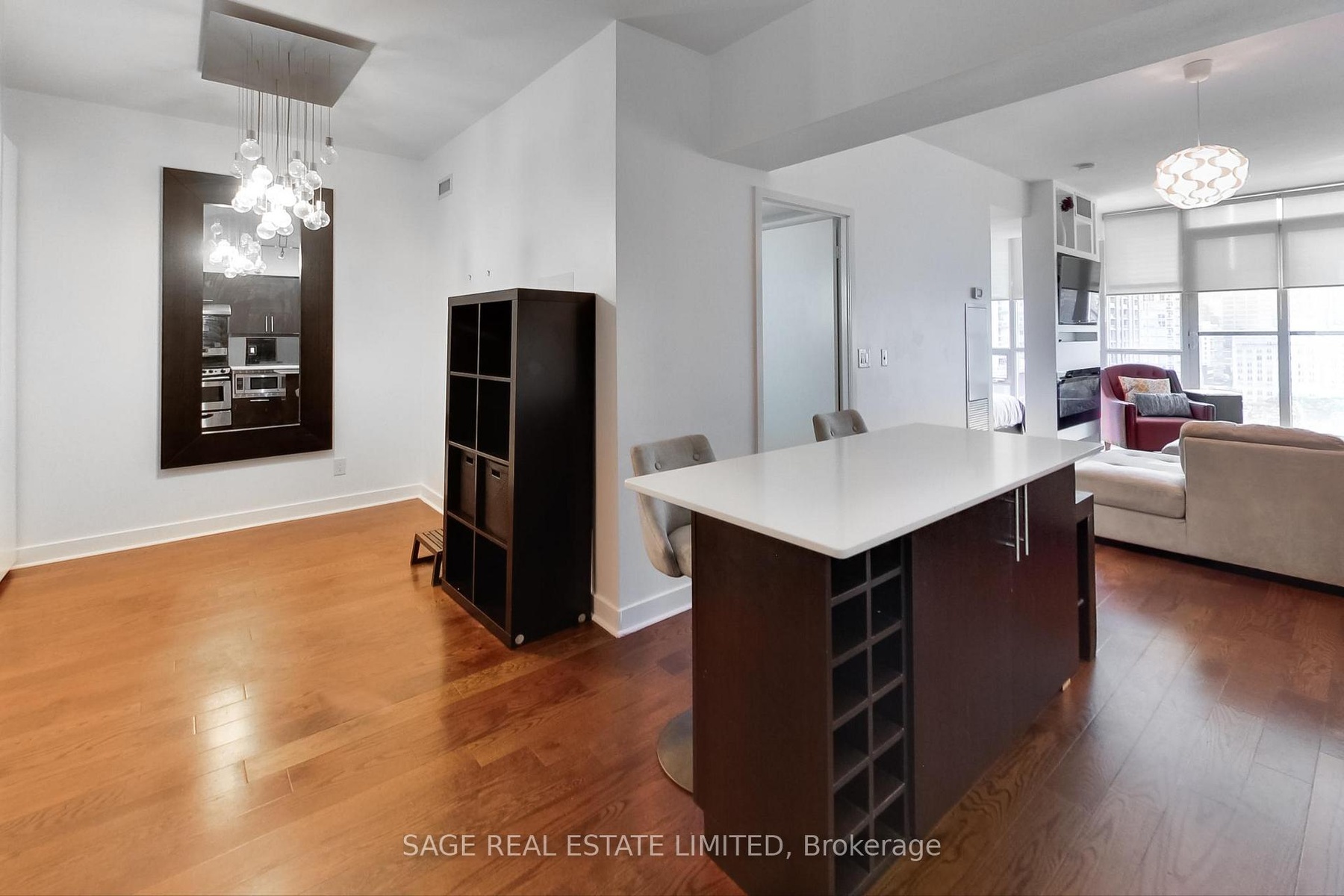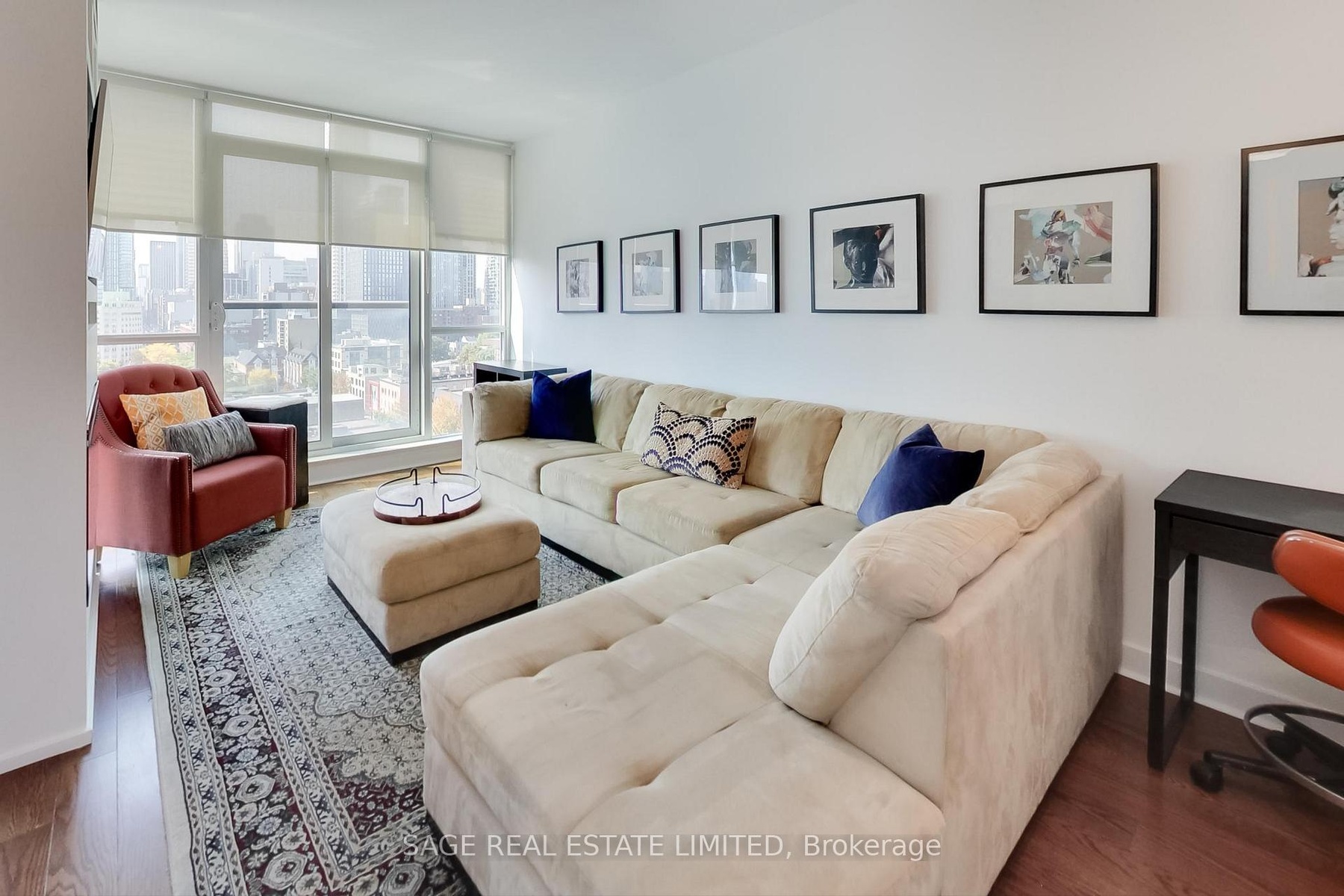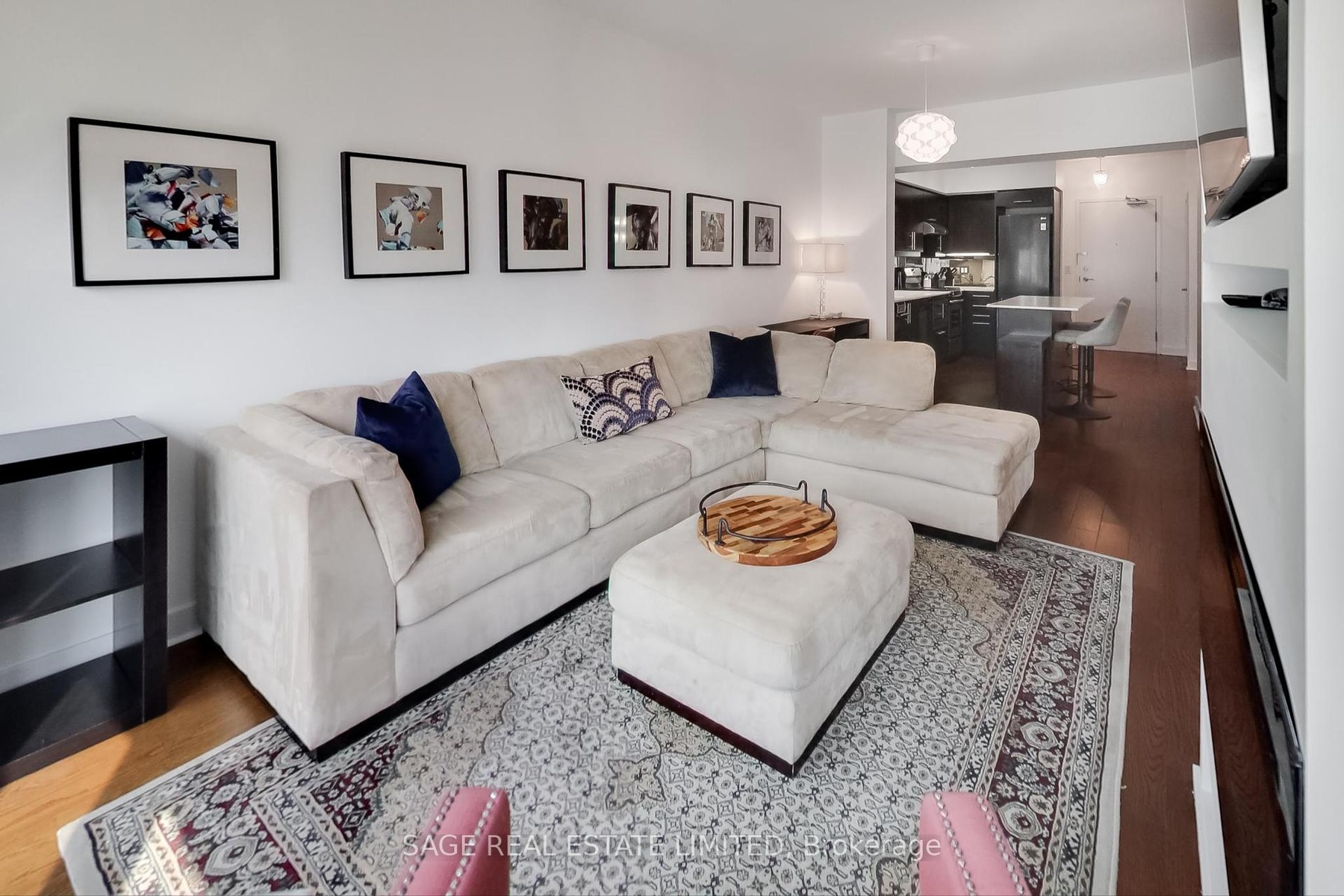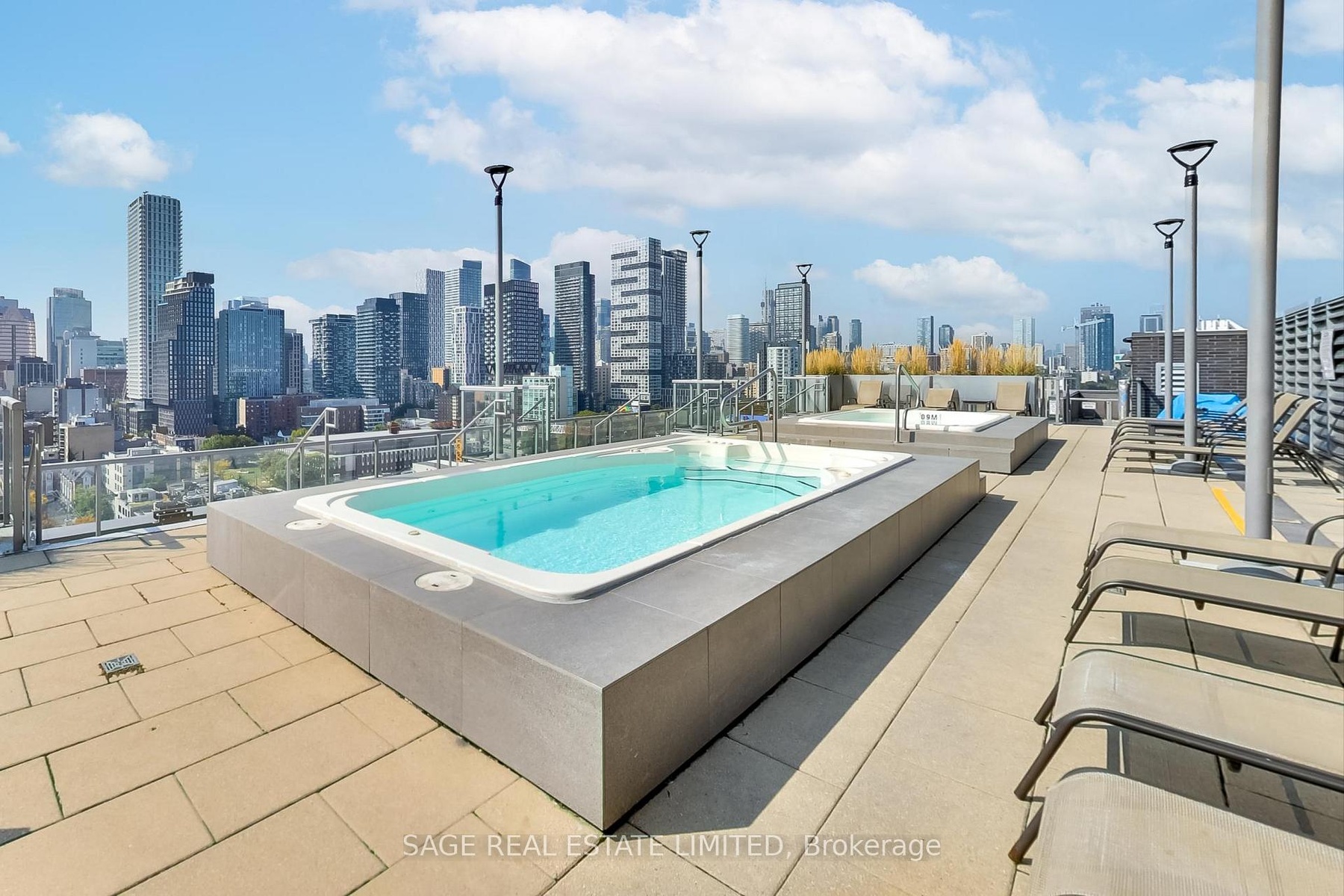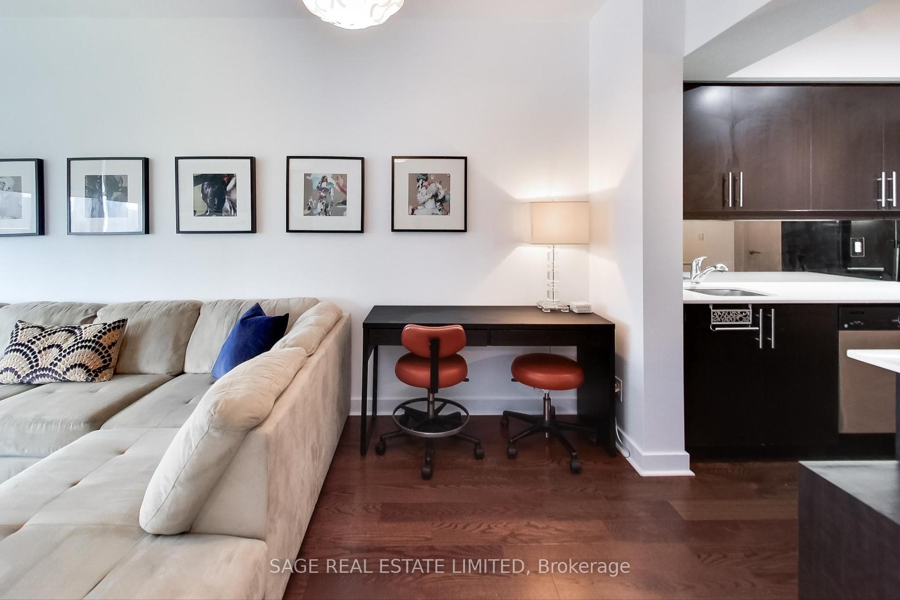Welcome to The Modern at 320 Richmond St E - where contemporary design meets the vibrant pulse of downtown living. This fully furnished 1+1 bedroom suite is framed by floor-to-ceiling windows, filling the space with natural light and west-facing city views. The open-concept layout feels both functional and inviting, with a rare built-in fireplace feature creating a stylish focal point between the living and sleeping areas. The kitchen is sleek and efficient, with stone countertops, stainless steel appliances, and a generous island that doubles as the perfect gathering spot. The den is enhanced by built-in storage, making it an ideal home office or creative workspace. Life here extends far beyond the suite itself. Step up to the rooftop and take in panoramic skyline views while lounging by the pool or hosting friends at the BBQ area. Recharge in the gym or sauna, and count on 24-hour concierge service, bike storage and visitor parking for everyday convenience. At your doorstep lies the best of the city: King Streets restaurants and nightlife, the historic St. Lawrence Market, George Brown College, the Distillery District, and effortless TTC access to anywhere you need to be. This is downtown living at its finest - where style, function, and location come together seamlessly.