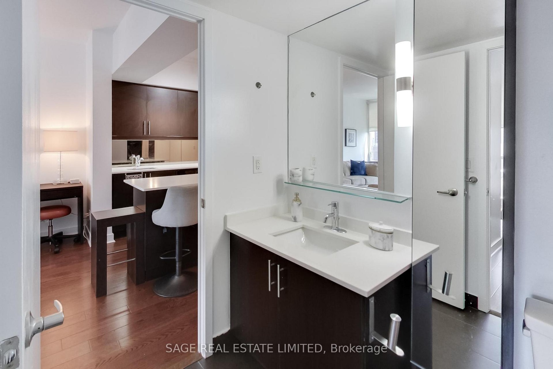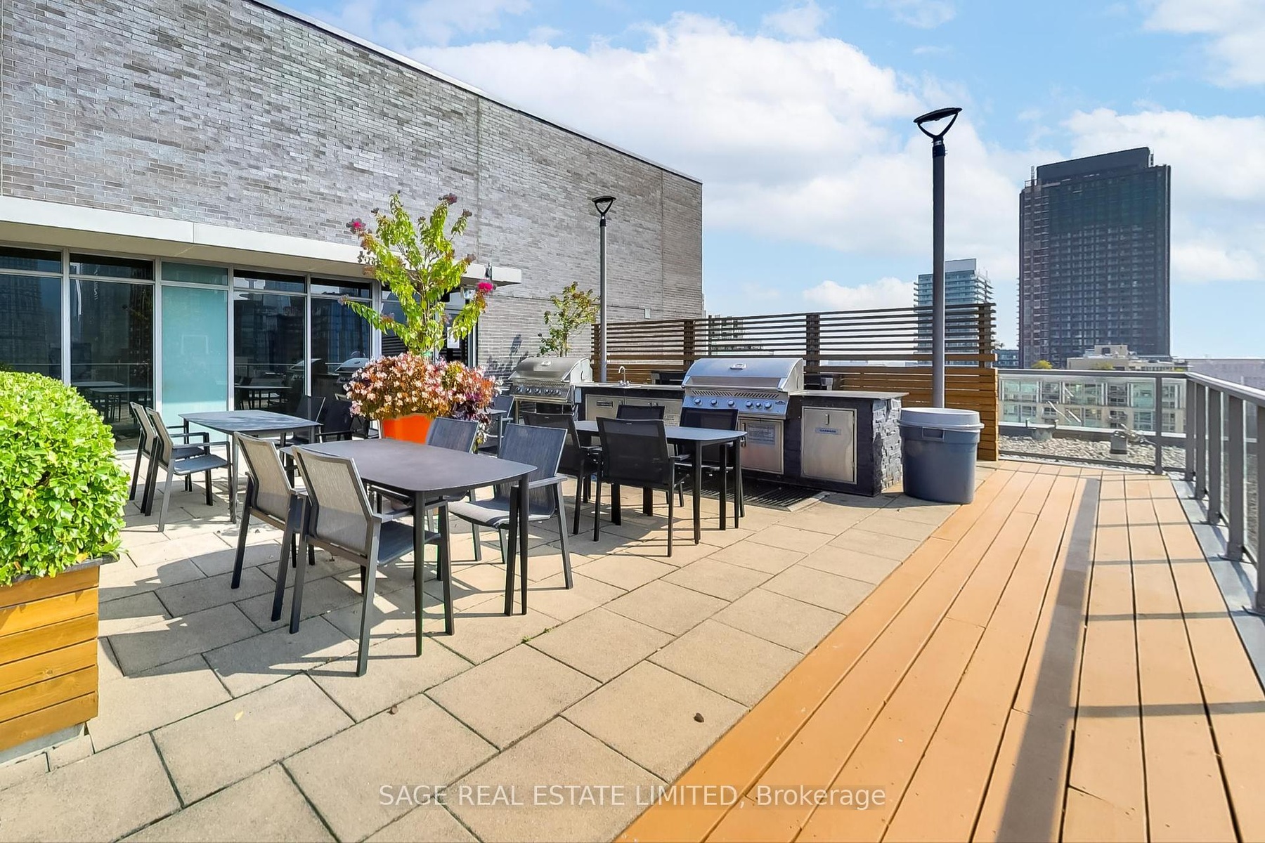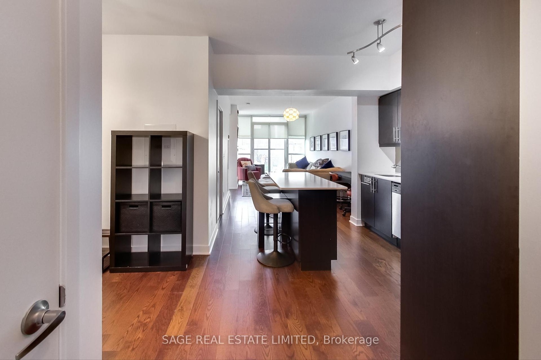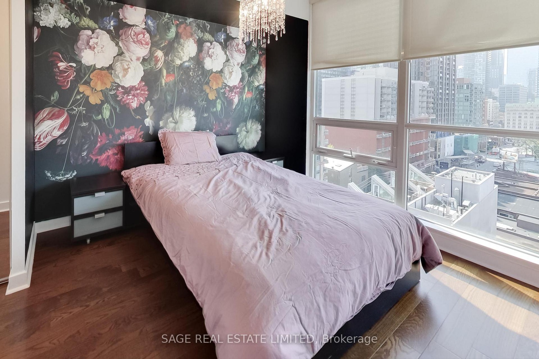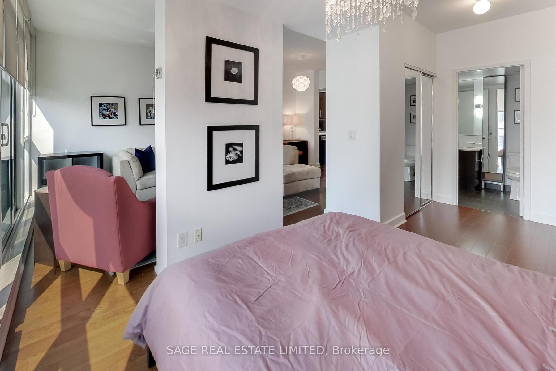 Welcome to The Modern at 320 Richmond St E - where contemporary design meets the vibrant pulse of downtown living. This fully furnished 1+1 bedroom suite is framed by floor-to-ceiling windows, filling the space with natural light and west-facing city views. The open-concept layout feels both functional and inviting, with a rare built-in fireplace feature creating a stylish focal point between the living and sleeping areas. The kitchen is sleek and efficient, with stone countertops, stainless steel appliances, and a generous island that doubles as the perfect gathering spot. The den is enhanced by built-in storage, making it an ideal home office or creative workspace. Life here extends far beyond the suite itself. Step up to the rooftop and take in panoramic skyline views while lounging by the pool or hosting friends at the BBQ area. Recharge in the gym or sauna, and count on 24-hour concierge service, bike storage and visitor parking for everyday convenience. At your doorstep lies the best of the city: King Streets restaurants and nightlife, the historic St. Lawrence Market, George Brown College, the Distillery District, and effortless TTC access to anywhere you need to be. This is downtown living at its finest - where style, function, and location come together seamlessly.
