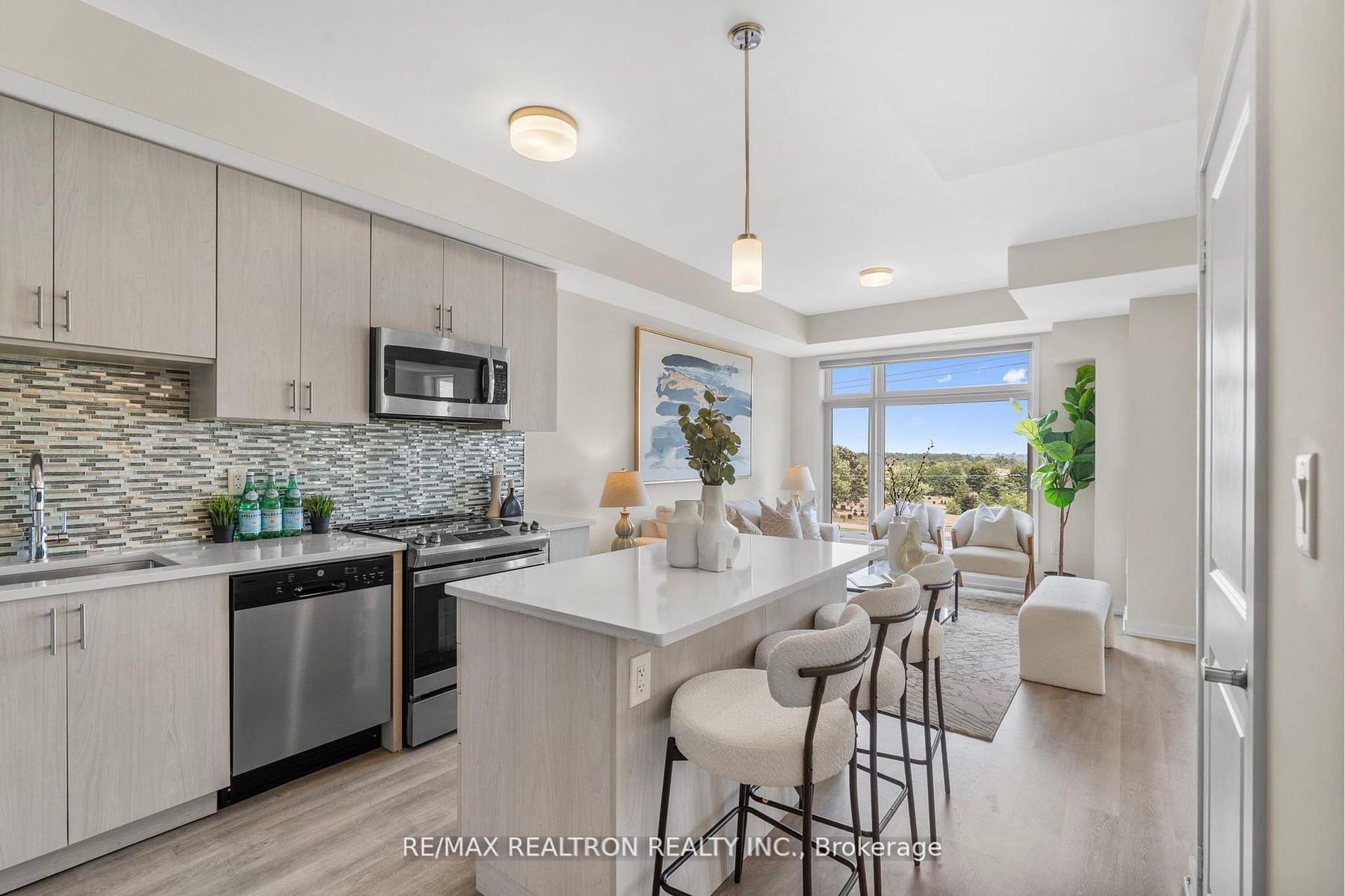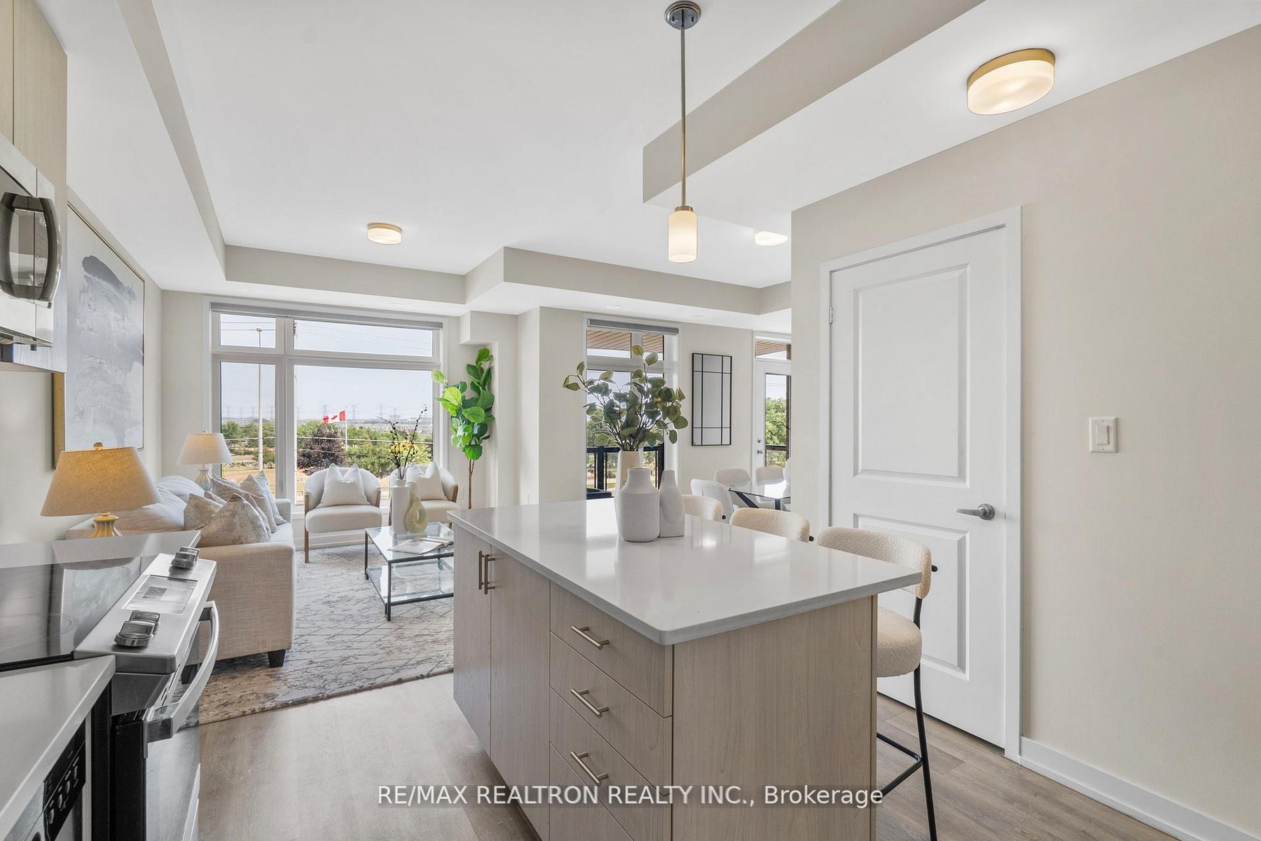 DescriptionStep into stylish, low-maintenance living with this modern end-unit townhome in the highly desirable Duffin Heights community of North Pickering. Perfectly suited for first-time buyers and growing families. Built in 2021 and meticulously maintained by its original owners, this home features laminate flooring throughout, two parking spots (private driveway + attached garage), with direct garage access for added convenience. The bright, open-concept main floor boasts oversized windows, tall ceilings, and a sleek kitchen with stainless steel appliances, quartz counters, ample cabinetry, and a built-in island, ideal for meal prep or casual dining. Entertain in the dedicated dining area or step out onto the large private terrace, perfect for morning coffee or evening unwinding. A convenient powder room completes the main level. Upstairs, enjoy a spacious primary suite with soaring ceilings, a walk-in closet, and a private ensuite, plus a second bedroom and full bath, no sharing required. With laundry just steps from the bedrooms and fresh paint throughout, this move-in-ready gem is minutes from schools, dining, Tim Hortons, and the scenic trails of Greenwood Conservation Area. A rare blend of comfort, style, and location this is the one to call home.Virtual Tour: https://tenzi-homes.aryeo.com/sites/enjzeme/unbrandedAmenities- Carpet Free