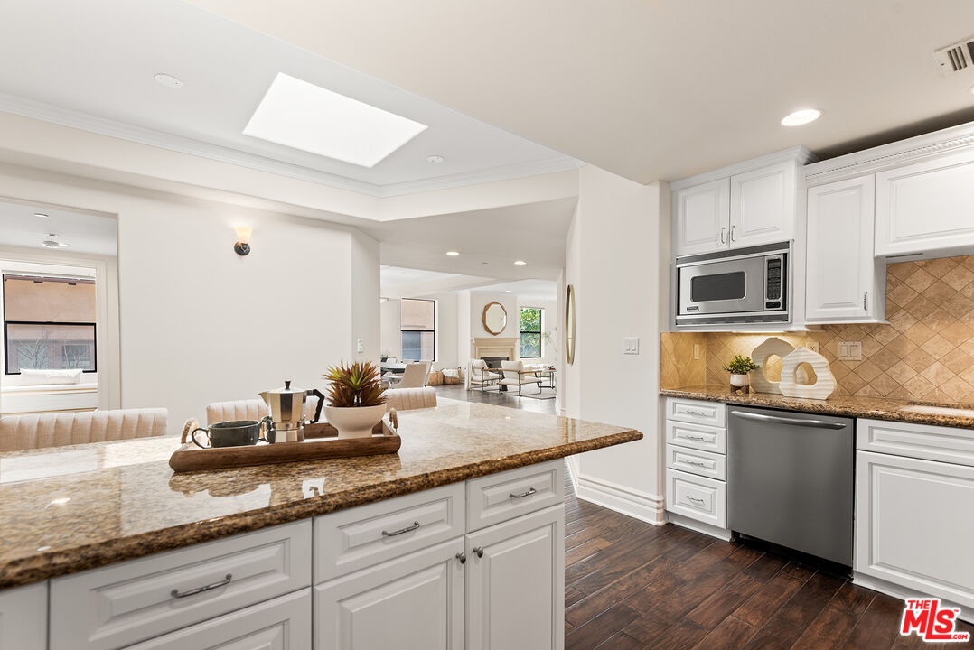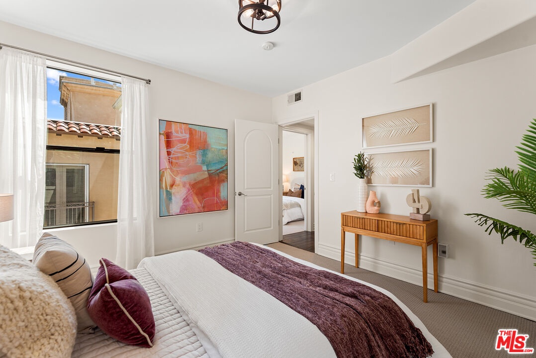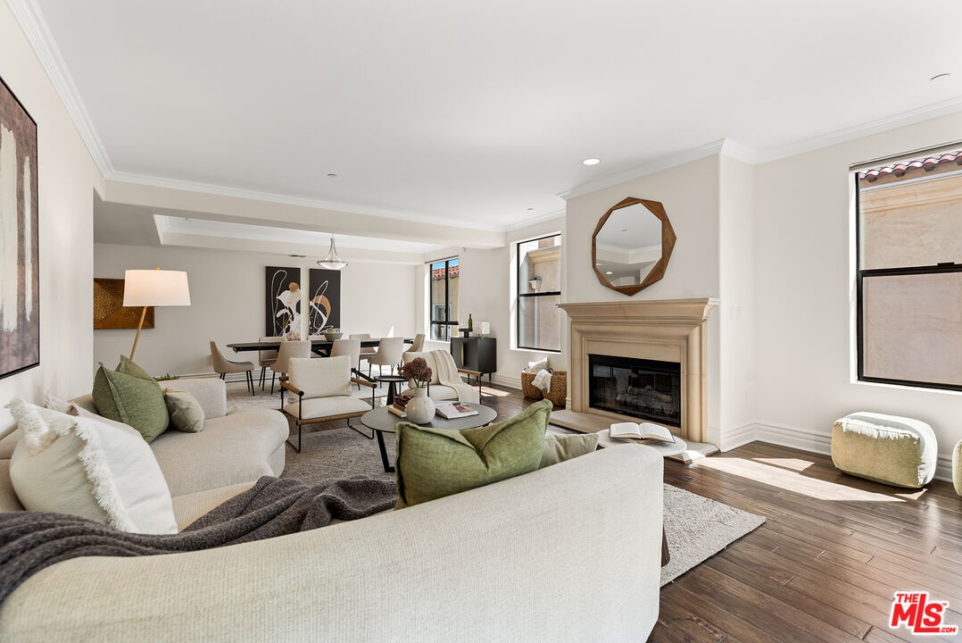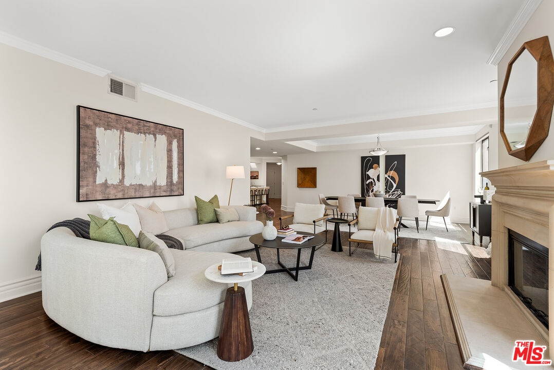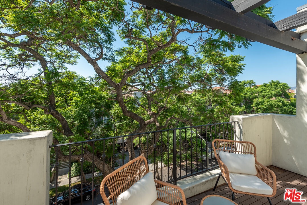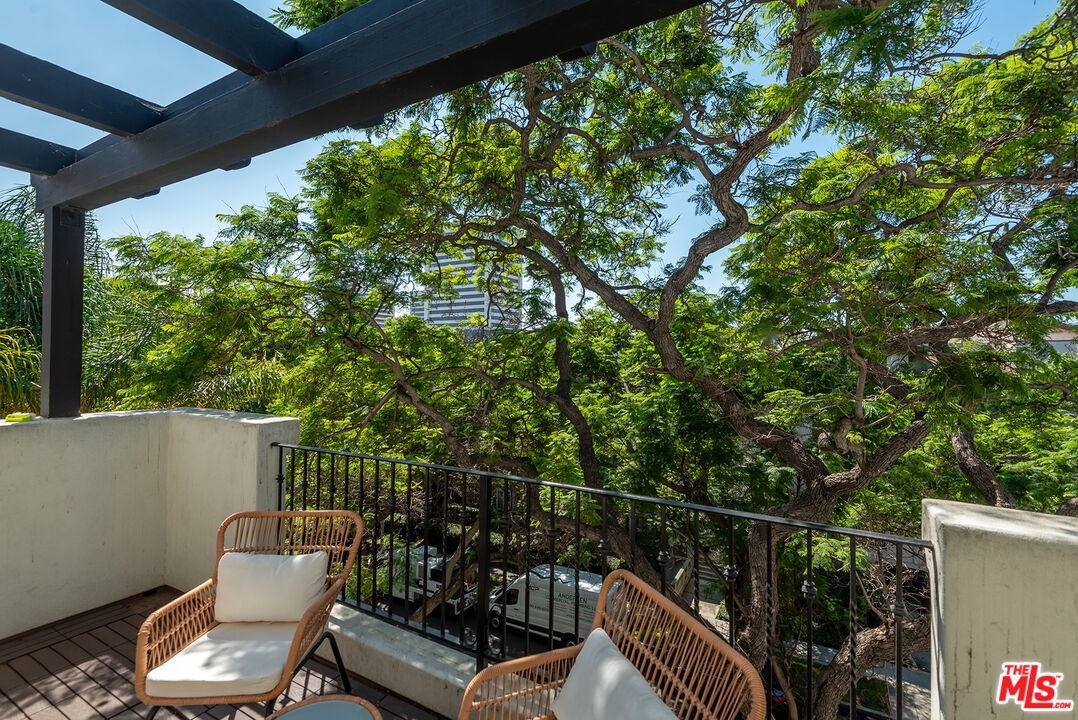This beautifully updated, West-facing Penthouse corner unit blends elevated design with a warm, inviting ambiance. With 3 bedrooms and 2.5 bathrooms across a bright, thoughtfully designed floorplan, it offers the perfect balance of comfort, privacy, and style. Rich wood flooring flows through the main living spaces, while plush new carpeting adds a touch of softness to the bedrooms. The chef's kitchen is a true centerpiece, showcasing sleek white cabinetry, granite countertops, premium stainless-steel appliances including a Viking range, and an expansive breakfast bar ideal for both casual mornings or lively gatherings. Just beyond the kitchen is the dining area that provides an intimate yet sophisticated setting for everything from family dinners to large celebratory gatherings. The spacious sundrenched living room features a cozy fireplace and opens seamlessly to a private balcony with tranquil treetop views -- the perfect spot to savor morning coffee or relax at sunset. Retreat to the oversized primary suite, complete with a Juliet balcony, custom built walk-in closet, and spa-inspired bath featuring dual vanities, a soaking tub, and a glass-enclosed shower. Two additional bedrooms on a private wing of the home offer both space and serenity. Additional features of the home include nearly 9-foot ceilings, a spacious laundry room with abundant storage, central air and heat, large powder room, and side-by-side parking with two EV chargers for modern convenience. HOA fees include water, trash and earthquake insurance. Tucked along a picturesque, tree-lined street, this Penthouse offers everything West LA has to offer. Just moments away from Westwood Village, boutique shopping, acclaimed dining, historic museums and movie theaters, coffee shops, parks and so much more, from the cultural heartbeat of UCLA and world-class medical facilities, to weekly farmers markets, top-rated schools, and easy access to Century City and Beverly Hills. Westwood combines convenience with a vibrant community feel.