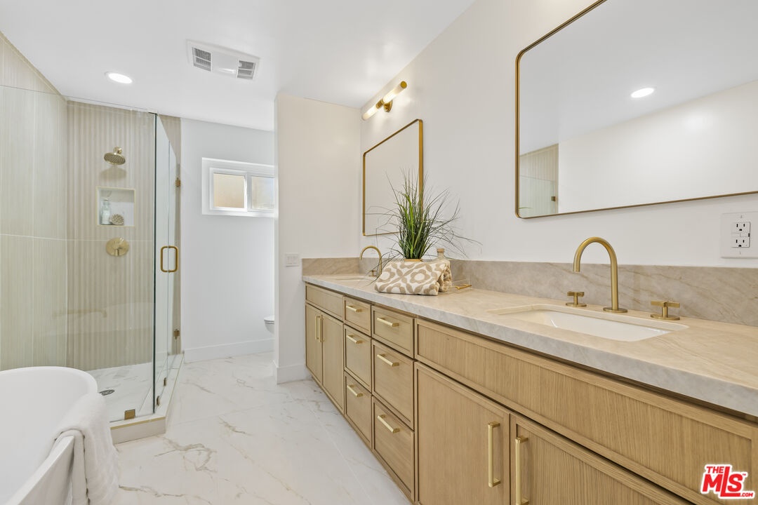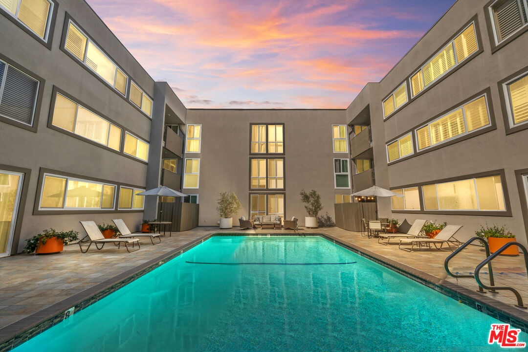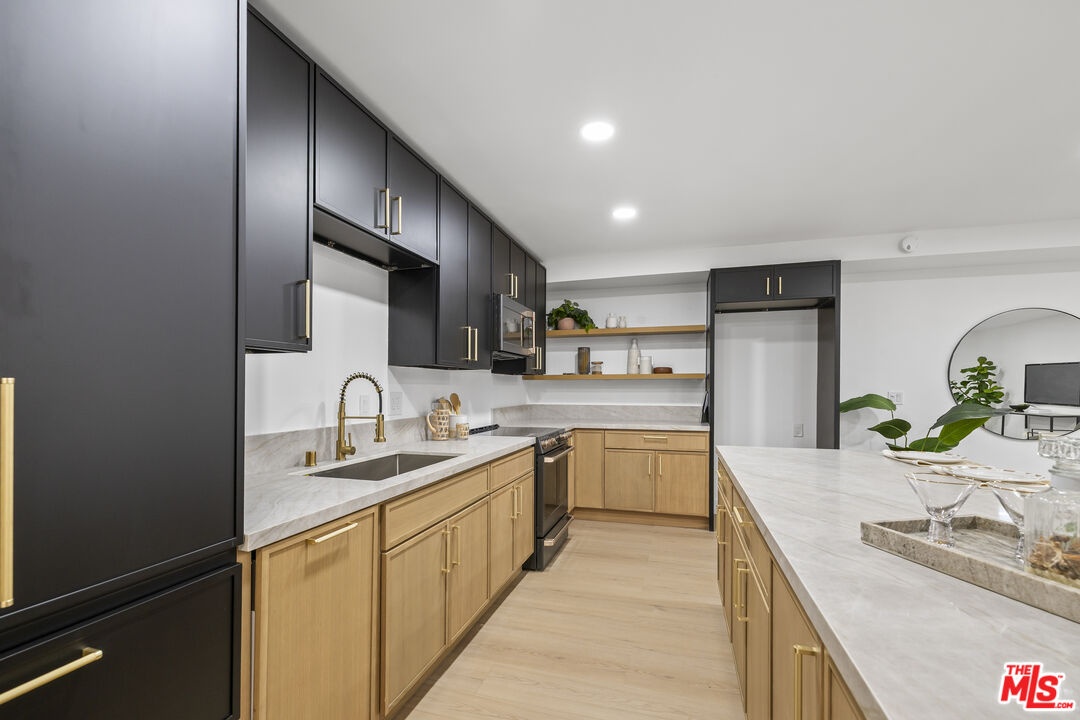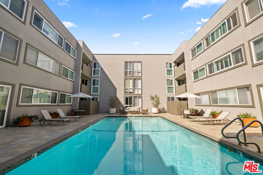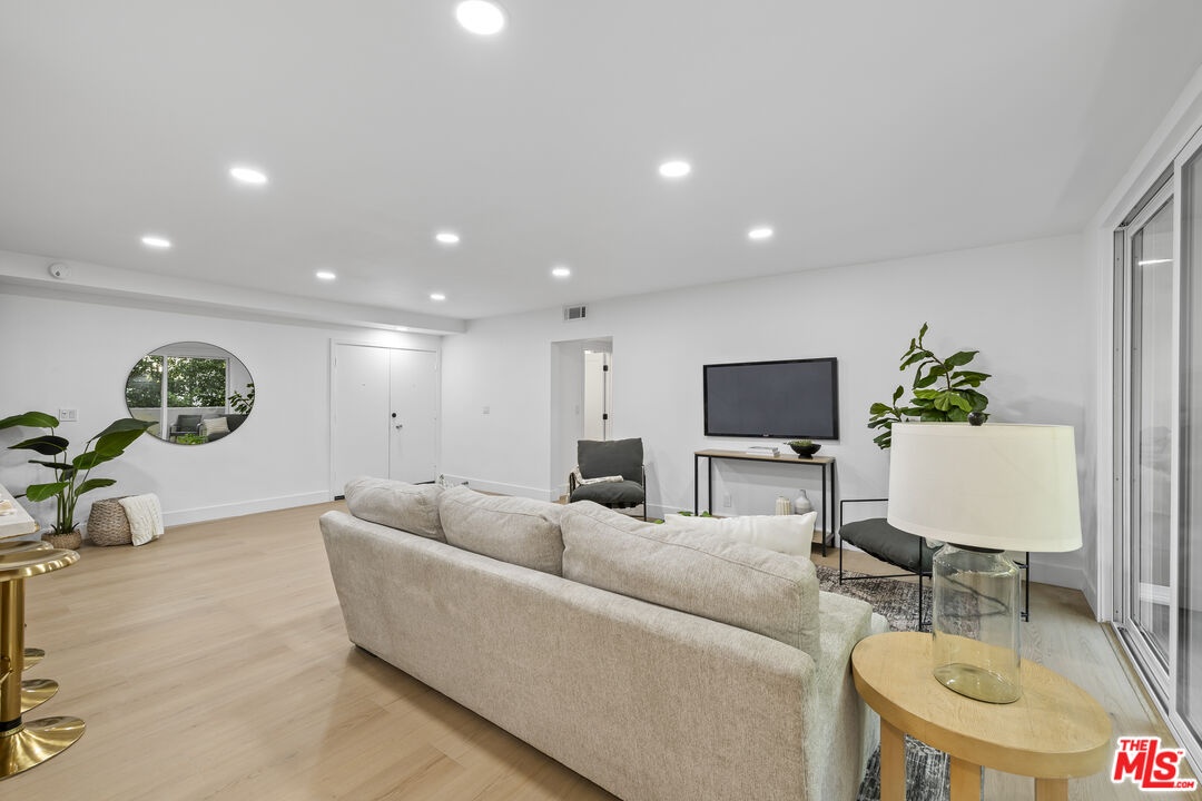 Step into this brand-new designer remodel a 2 bed, 2 bath corner unit offering exceptional privacy, modern luxury, and elevated comfort. The open-concept floor plan flows effortlessly from the living room to the dining area and into a show piece kitchen. Outfitted with Cafe appliances, Taj Mahal quartz countertops, sleek black cabinetry, warm wood accents, and a large island with seating, the kitchen is both stylish and functional perfect for entertaining. Expansive new Milgard Tuscany white windows and sliding glass doors flood the space with natural light and connect to a private balcony surrounded by greenery. Wide-plank French White Oak floors run throughout, creating a seamless modern aesthetic. The bathrooms have been fully reimagined with Taj Mahal quartz counters, custom wood vanities, large-format tiled floors, and brushed gold fixtures. The primary suite includes dual vanities and a walk-in shower, blending luxury with everyday convenience. This home also offers in-unit laundry hookups, with a shared laundry room in the garage for oversized items. Community amenities include a beautifully maintained lobby, sparkling pool, visitor parking, and rentable storage bins in two garage storage areas. Two gated garage parking spaces complete this home. Located on tree-lined Kings Road, just steps to Santa Monica Blvd and the Sunset Strip, this residence delivers timeless design and prime West Hollywood living.