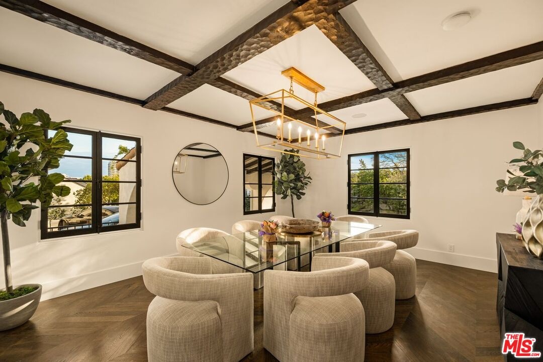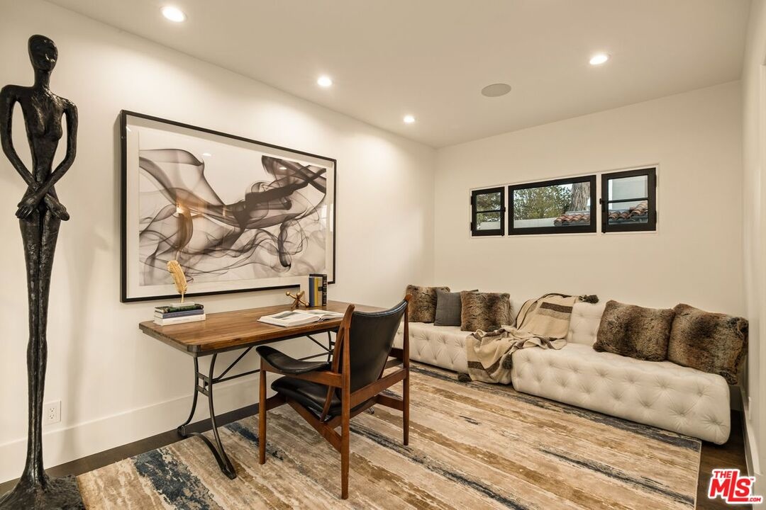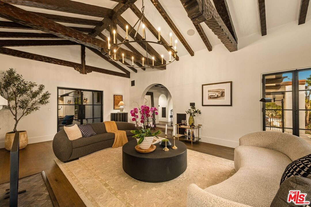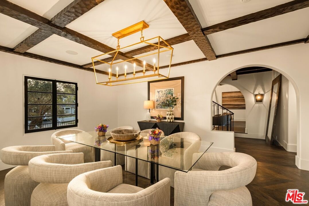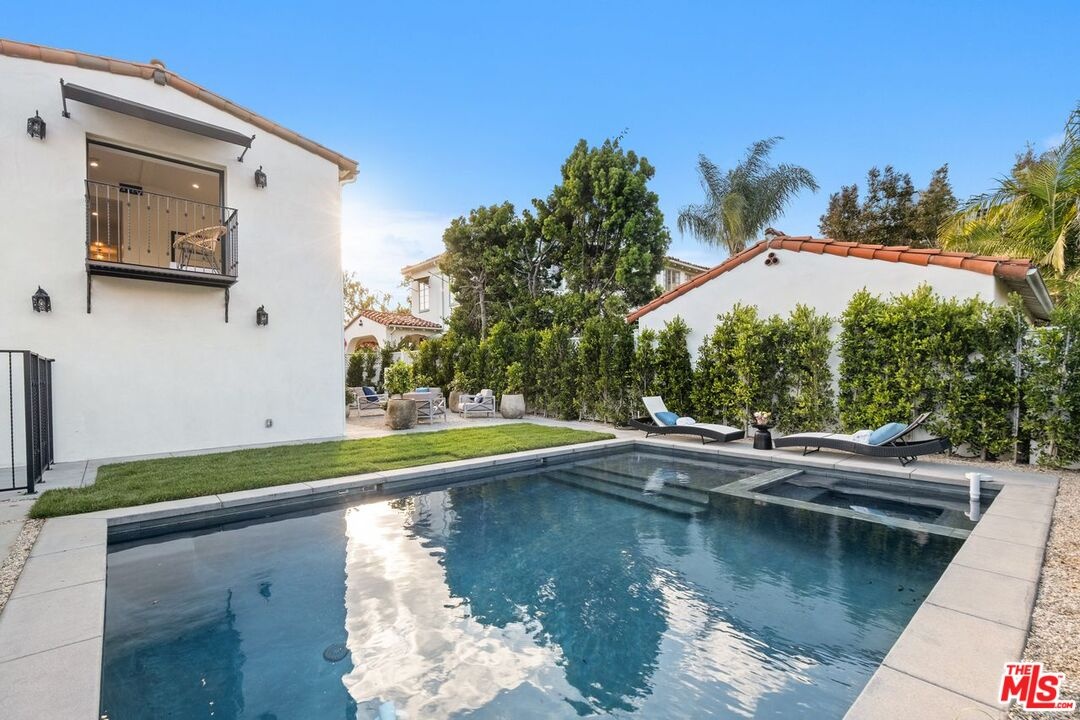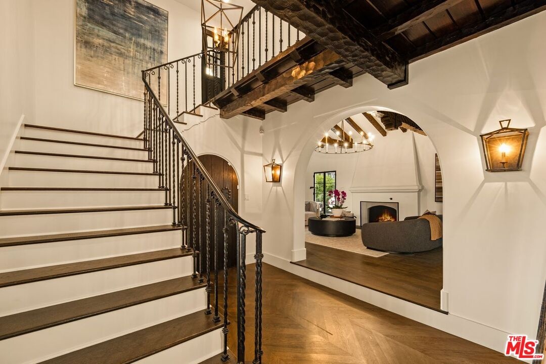DescriptionA Restored Spanish Romance in Little Holmby! Featured in The Week Magazine as The Well preserved homes built in 1930s! Set behind a grove of mature olive trees, this majestic Spanish revival sits elevated and elegantly framed by magnificent landscaping. Painstakingly restored with warmth and intention, the home blends timeless architectural beauty arched iron doors, beamed ceilings, paneled walls with fresh, modern touches. Crisp white walls contrast dark wood floors, while custom lighting creates a soft, romantic glow from day to night.The grand living room, with its soaring ceilings and fireplace, opens to lush outdoor spaces. A formal dining room with herringbone floors flows into a charming breakfast nook and a thoughtfully designed chef's kitchen with top of the line appliances and seamless connection to the cozy family room and backyard. Five ensuite bedrooms include a dreamy upstairs primary suite with a Juliet balcony and scenic neighborhood views. Outside, a sparkling pool and spa, a gentle fountain, and multiple patios invite year-round relaxation and entertaining. The flat, expansive yard offers room to play, dine, and dream under the stars. Complete with a two-car garage, porte cochere , and ample parking, this is a rare, soulful retreat in one of West LA's most desirable enclaves just moments from UCLA, Westwood Village, and top-rated Warner Avenue Elementary.Amenities- Balcony