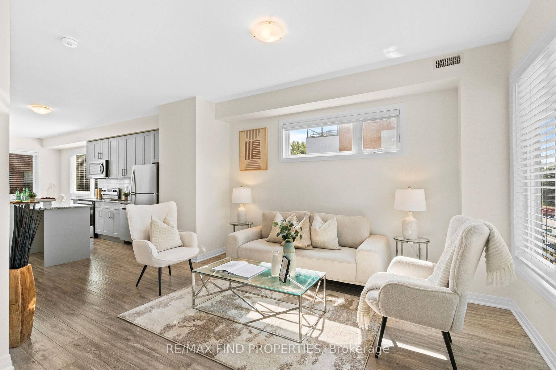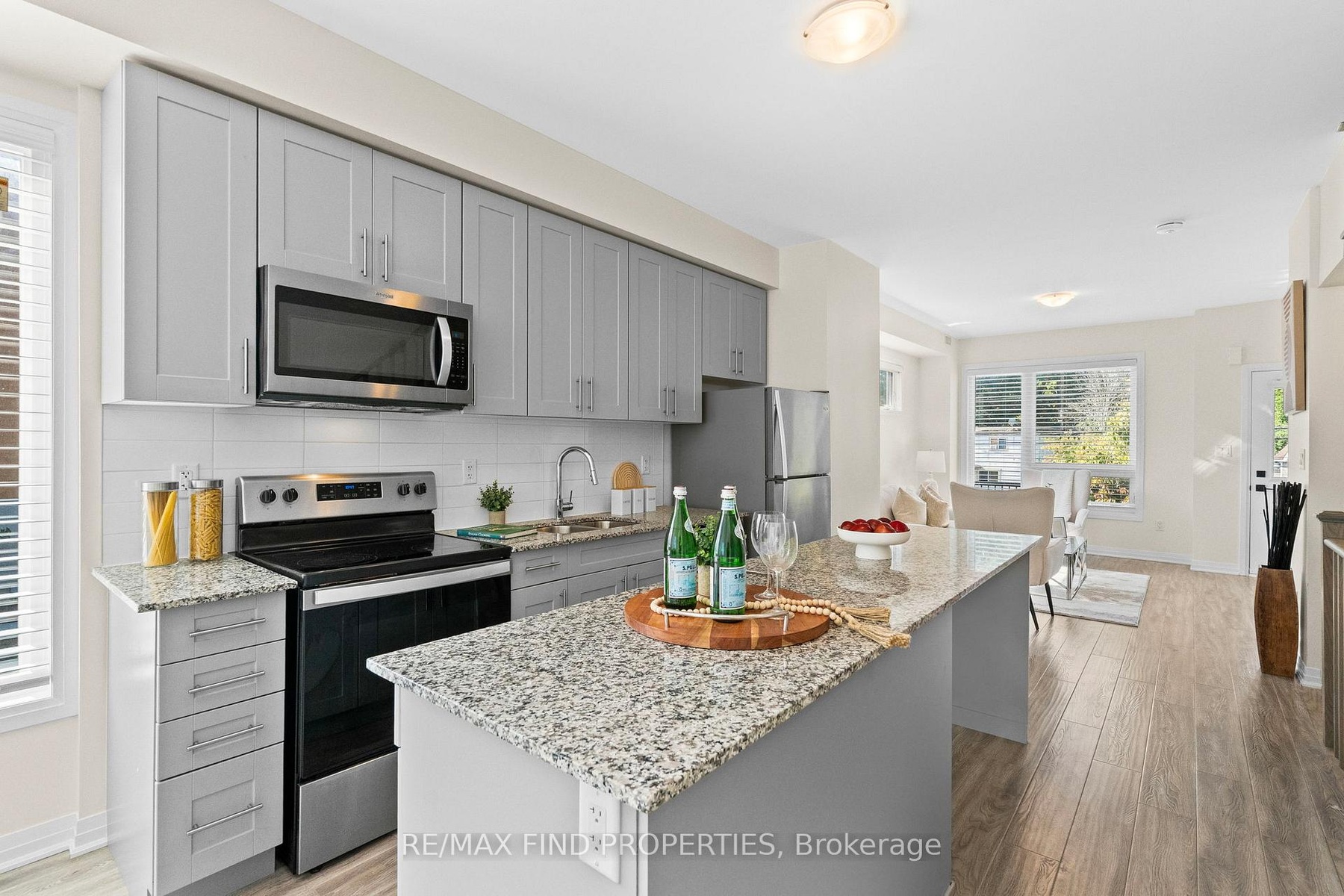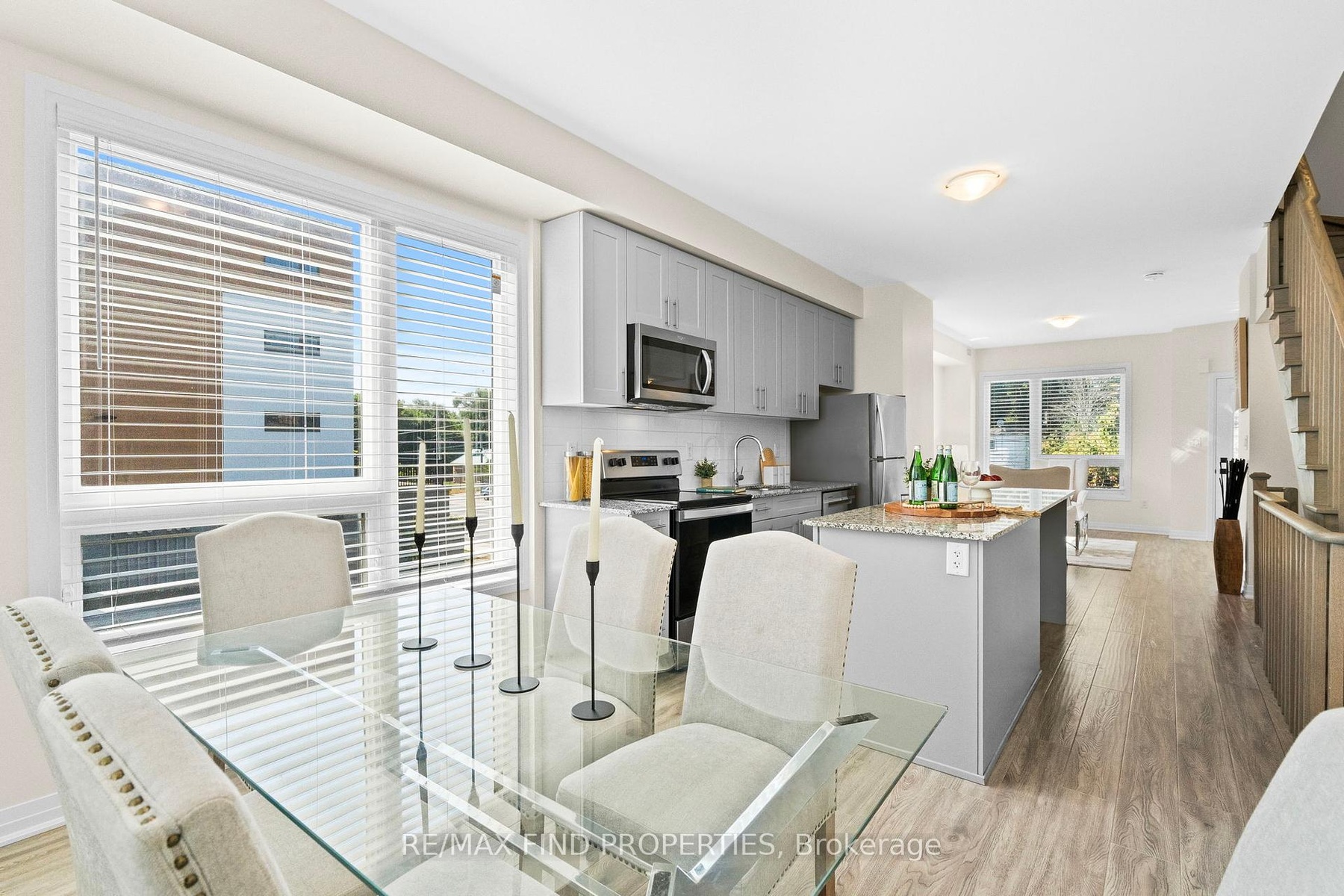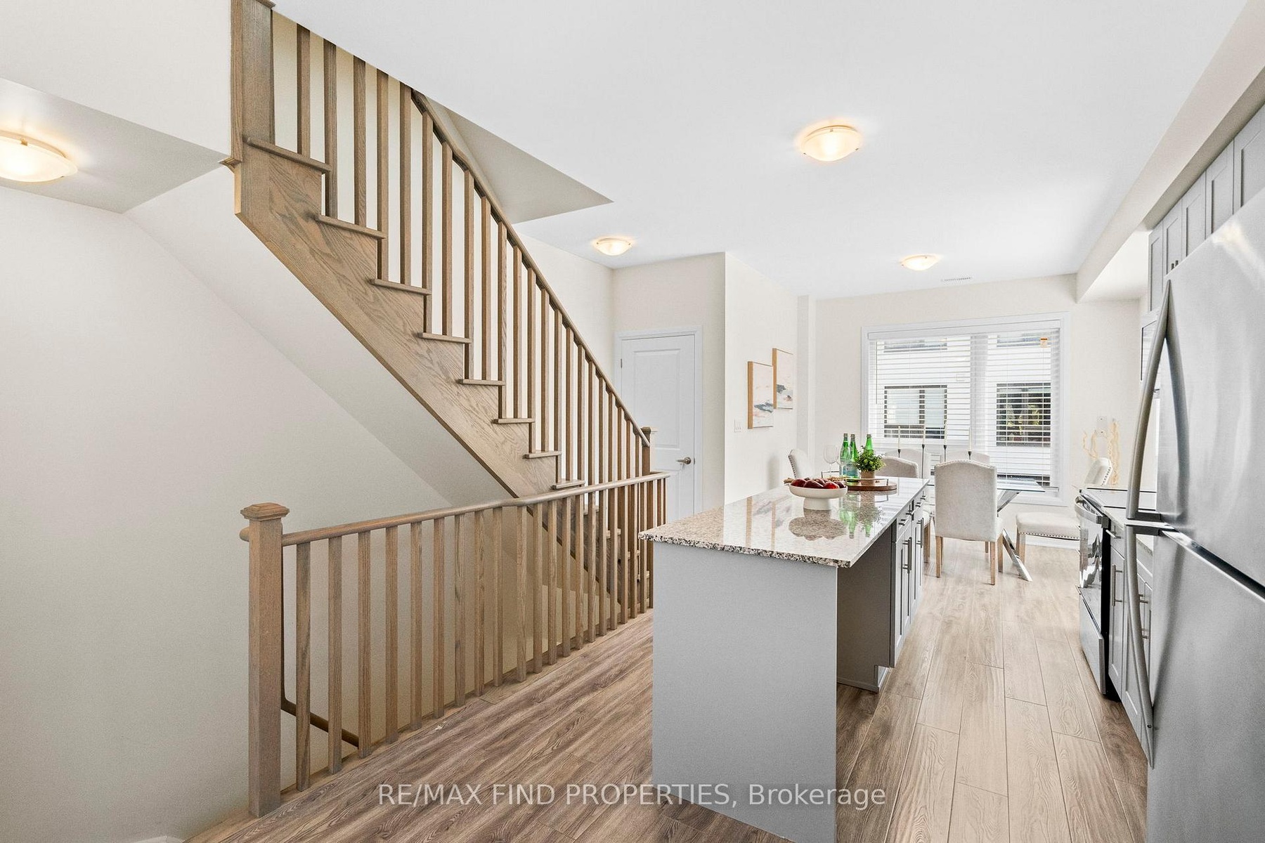 DescriptionWelcome to this beautifully designed 3-bedroom, 3-bathroom freehold end unit townhome in sought-after North Oshawa, offering the space and feel of a semi-detached home! Spanning 1,585 sq. ft., this bright and modern home is filled with natural light thanks to the extra windows an end unit provides. The main floor features 9ft ceilings, laminate flooring, and a functional open layout with separate living and dining rooms. The contemporary kitchen boasts stainless steel appliances, a ceramic backsplash, granite countertops, a large centre island, with ample storage, perfect for entertaining and family living. Upstairs, you will find 2 generously sized bedrooms, a 4-piece bathroom, and convenient second-floor laundry. The entire 3rd floor is dedicated to your luxurious primary retreat, complete with a large walk-in closet, a 5-piece ensuite, and a walkout to a private 171 sq. ft. rooftop terrace, your own serene outdoor space. Located minutes from Highway 407, Ontario Tech University, Durham College, Costco, grocery stores, shopping, restaurants, parks, public transit, and more, everything you need is at your fingertips. Don't miss your chance to call this North Oshawa gem home! Tenant pays all utilitiesAmenities- Patio