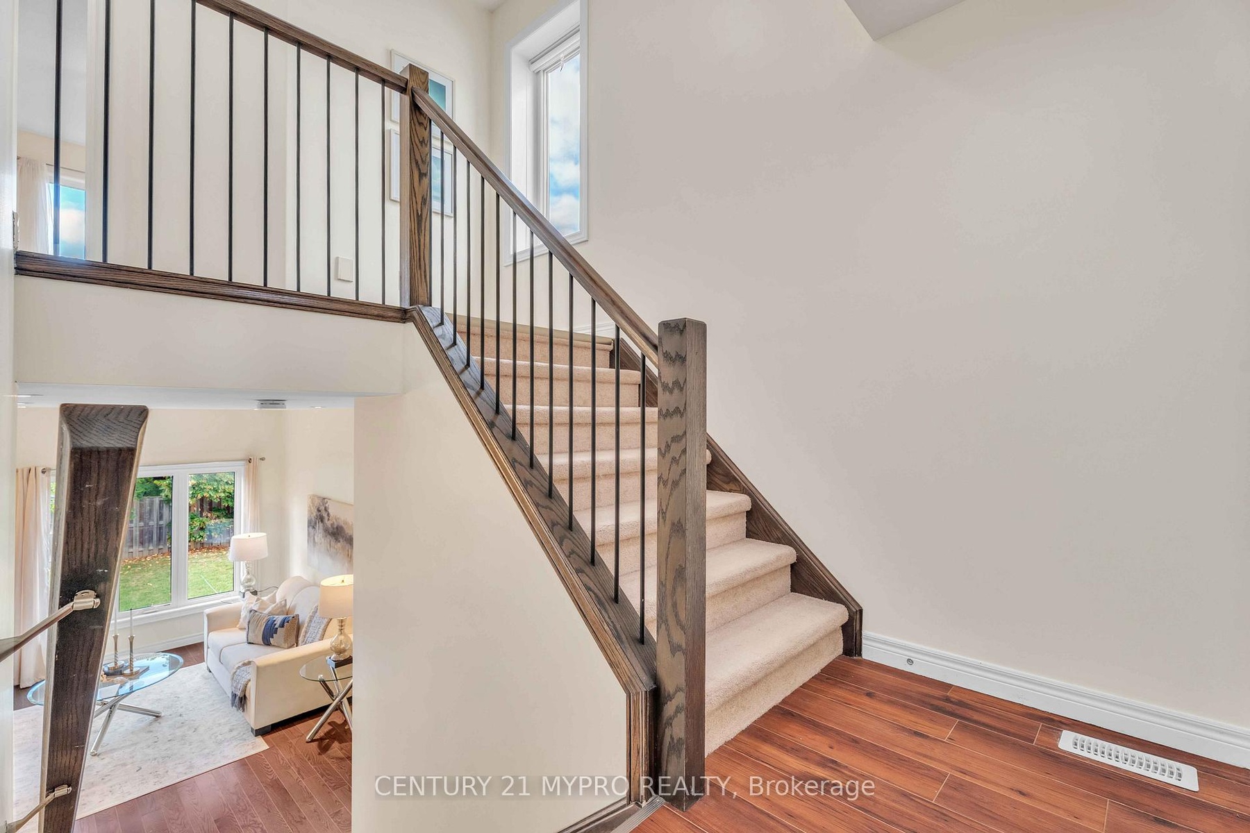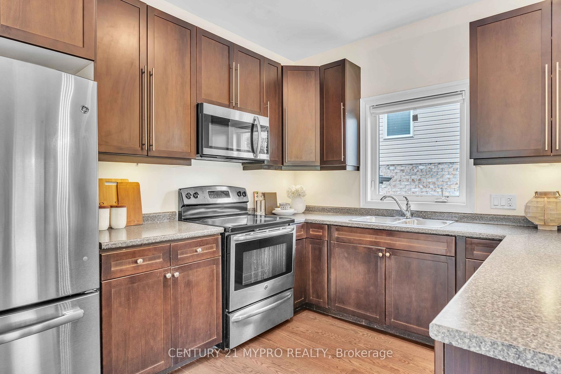 Beautiful Ironstone-built multi-level home in the desirable Oakridge Crossing neighborhood - identical to the original model home! This 3 beds 4 baths stylish and functional layout offers generous living space, abundant natural light, and thoughtful design throughout. Modern open-concept kitchen and dining area, spacious and bright living room opens to a patio door leading to an enclosed private deck overlooking fully fenced yard. Large master bedroom with 4 piece ensuite and walk in closet. 3rd floor laundry adds ease to daily living. Well appointed upper bedrooms create the perfect inviting flow for family living and entertaining. Fully finished lower level offers a rec room and additional full 4 piece bathroom with all windows above grade. Upgrades include: new flooring & neutral paint(2017), Blade X (Midea) ultra-quiet air conditioners(2024), modern lighting fixtures throughout the house(2024), modern Wayne Garage Door-Dalton model(2024), new over-the-range microwave(2025), freshly stained deck with premium transparent oil(2025). Prime Oakcrossing location close to schools, shopping, parks and trails. Move-in ready with model-home finishes and exceptional craftsmanship.