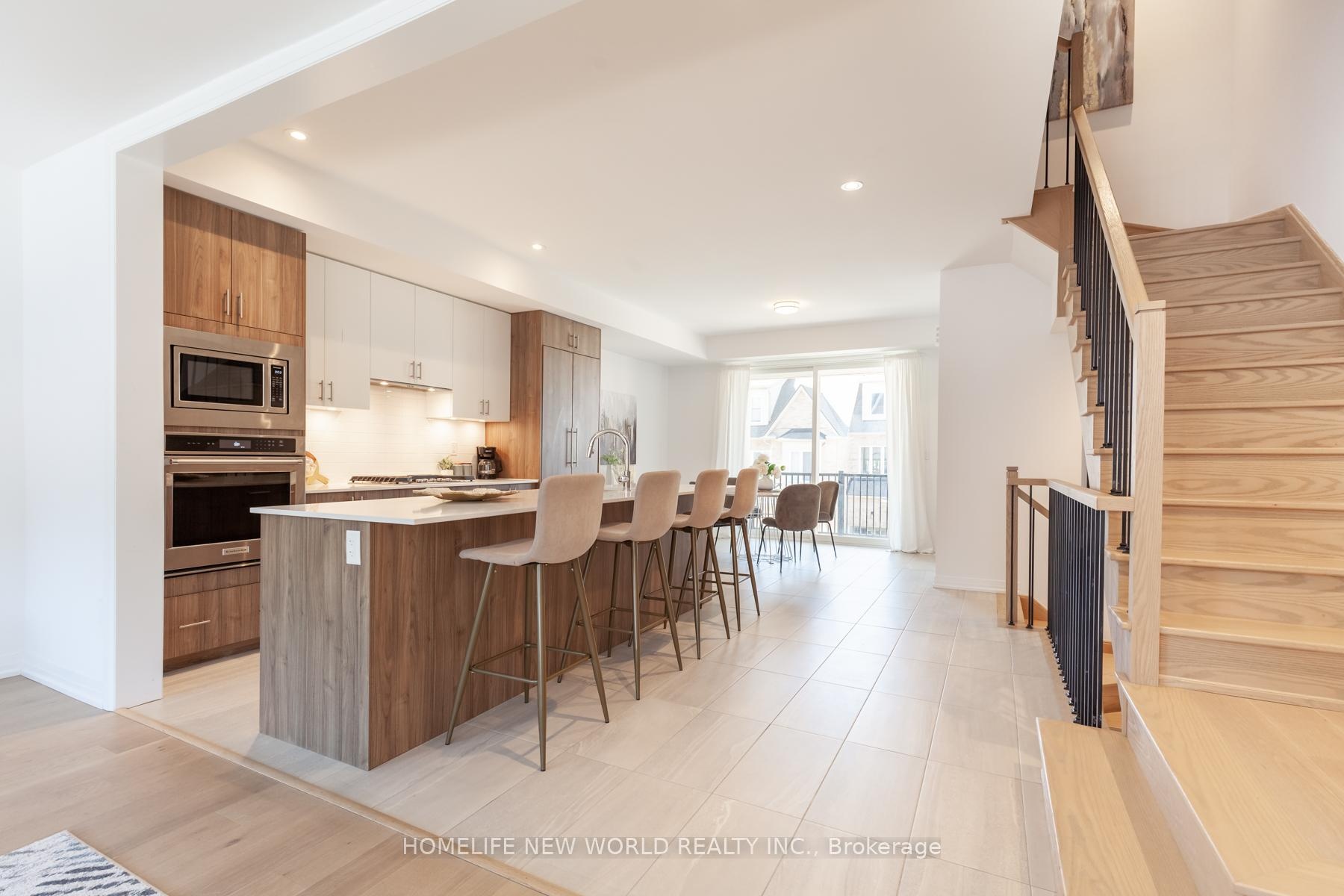 Exquisite Modern Townhome in the Highly Desirable Buttonville, Markham. This Designer Gem Features Top-Tier, Luxury Finishes and Impeccable Craftsmanship. The Spacious Open-Concept Design Offers 3 Well-Appointed Bedrooms, 3 Elegant Bathrooms, 1 Car Garage, and 9-Foot Ceilings Across All Levels, with Smooth Ceilings Throughout. Natural Light Floods the Home Through Expansive Windows, Offering Beautiful Views.The Gourmet Kitchen is Perfect for Entertaining, Featuring a Center Island, Breakfast Bar, Pendant Lighting, Custom Floor-to-Ceiling Cabinetry, Quartz Countertops, and High-End Stainless Steel Appliances. The Breakfast Area Leads Out to a Balcony. A Stunning Custom Staircase with Wrought Iron Pickets Adds to the Charm.Upstairs, the Private Primary Bedroom is a Peaceful Oasis with a Walk-In Closet and a Luxurious 4-Piece Ensuite, Featuring a Quartz Vanity, Undermount Sink, Deep Soaker Tub, and Seamless Glass Shower. The Spacious Second Bathroom is Elegantly Designed. Ideally Located in Top-Rated School Districts, Including St. Augustine Catholic High School, St. Justin Martyr Catholic Elementary, Unionville High School, and Buttonville Public School. Walking Distance to T&T Supermarket, Public Transit, Shopping, Dining, Parks, and Trails. Close to Rouge River Ravine System and Convenient Access to Hwy 7/404/407.This Home is Ideal for Families, Nestled in a Vibrant, Family-Friendly Neighbourhood with Parks, Playgrounds, and Community Centers. Shopping and Entertainment Are Just Steps Away. Additional Highlights Include Direct Garage Access and a Rough-In Basement for Future Customization.This Modern Townhome Perfectly Balances Luxury and Practicality.