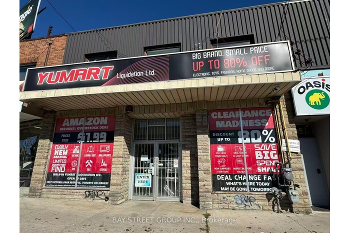 Prime commercial unit for lease, South West corner of St. Clair and Victoria Park. Suitable for many uses including but not limited to retail, restaurant, medical, education, office, wellness centre and more. TMI is estimated at $7.27/sf and does not include utilities (Tenant pays its own utilities and has separate metres); TMI to be adjusted to the Landlord's actual cost after year end.