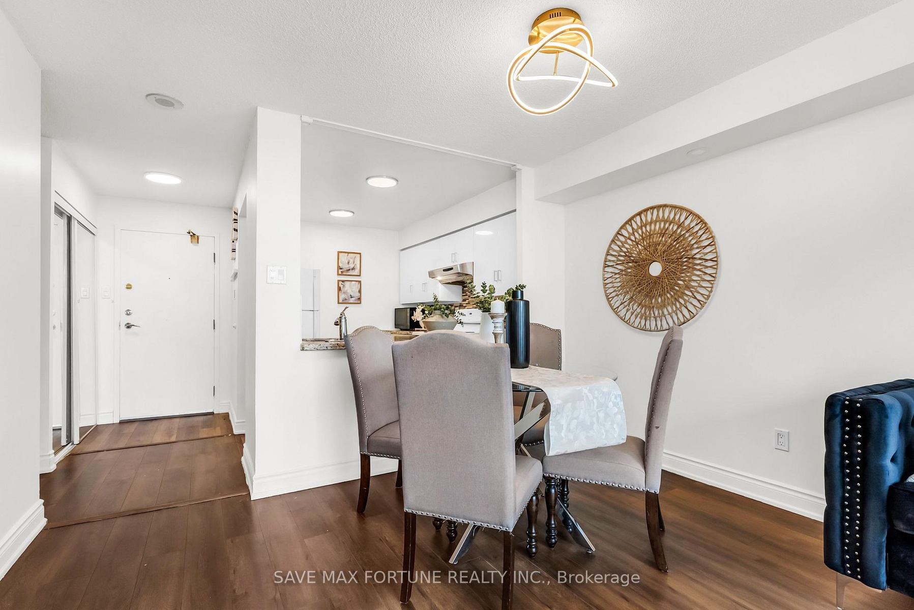 Welcome to a spacious 988 sq. ft. condo in the heart of Mississaugas City Centre! This bright, move-in-ready home features two bedrooms plus a versatile solarium/denperfect for a home office, playroom, or guest space. Enjoy an open-concept living and dining area filled with natural light, a modern eat-in kitchen with granite countertops, and a large primary bedroom with walk-in closet and balcony access. The second bedroom offers ample storage and connects to the sun-filled solarium, ideal for flexible living. Benefit from in-suite laundry, central air, and owned underground parking. The building boasts top amenities: 24/7 concierge, indoor pool, hot tub, gym, sauna, basketball, squash and tennis courts, and a recreation room. MAINTENANCE FEES INCLUDE ALL UTILITIES & INTERNET FOR STRESS-FREE LIVING. Step outside to Square One Shopping Centre, Celebration Square, top schools, parks, restaurants, and major transit. This is a fantastic opportunity for young families or first-time buyers to enjoy comfort, style, and unbeatable convenience in a vibrant, amenity-rich neighbourhood. Flexible closing available!