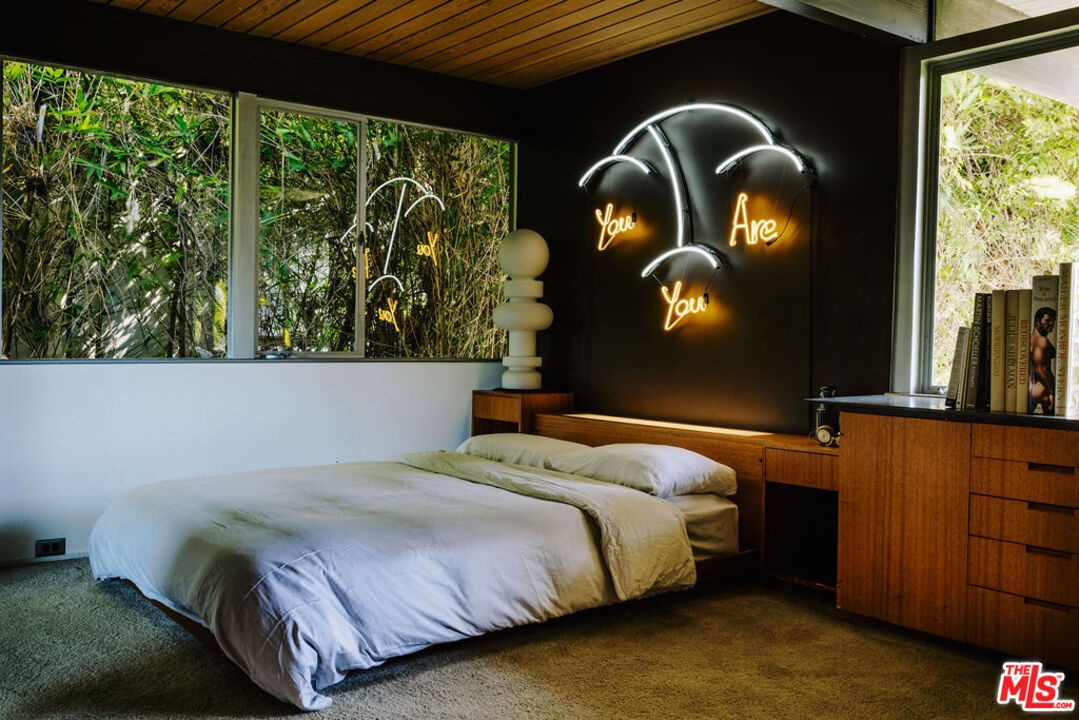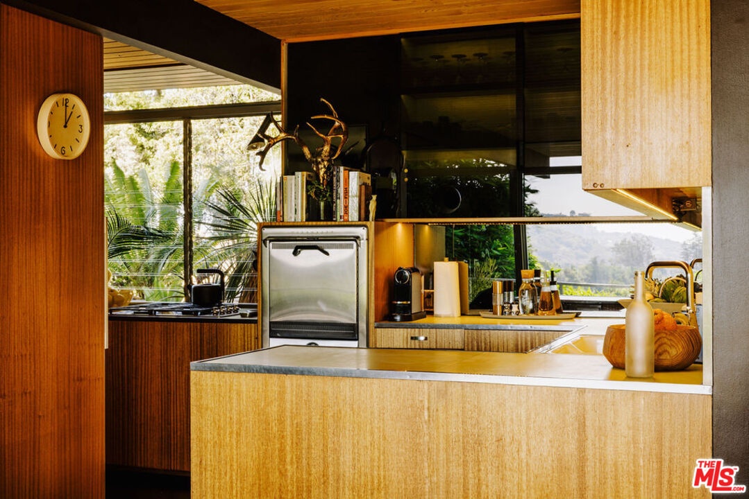 Perched in the East Hollywood Hills, the Jason Hailey House is a Richard Neutra masterpiece, restored with reverence and creativity. Originally completed in 1959, the residence remains remarkably intact, thanks to a succession of owners who resisted the urge to alter its modernist bones. Guided by archival research, renovation project manager Barbara Lamprecht - architectural historian and author of Neutra: Complete Works (Taschen), in which the home is featured - led a careful restoration together with Los Angeles-based artist and interior decorator Anthony Barsoumian and the team at Andrew Gray Studio. Their meticulous work preserved Neutra's original vision while making thoughtful updates for contemporary living. Every Philippine mahogany panel and redwood detail was revived, while discreet enhancements - glass balcony railings, refreshed kitchen and baths, and a warm, neutral palette - bring light and clarity to the interiors. Flexible walls allow spaces to adapt, and floor-to-ceiling glass frames sweeping views, seamlessly connecting indoors with the surrounding landscape. Modern comforts such as Miele appliances, central air conditioning, and a wired sound system are thoughtfully incorporated. The home balances mid-century character-from vintage built-ins to cinematic influences-with modern sophistication, creating a space that is both inviting and elegant. Designed for entertaining, it stands as a true expression of California modernism: efficient, graceful, and timeless. Beyond the interiors, the gardens, designed by Studio John Sharp, deepen the home's connection to nature. Known for his meditative, sustainability - driven landscapes, Sharp created a series of outdoor spaces that extend the modernist ethos into the surrounding terrain. Sculptural botanical statements - often paired with architectural-style pottery - define the front garden, leading to shaded back terraces conceived as an oasis for both entertaining and retreat. Outdoor dining, a fire pit and sunken hot tub, and even a small outdoor theater transform the terraces into flexible gathering spaces, while more secluded corners invite quiet reflection. Downstairs there is a bonus room, along with a spacious storage area which previously served as a creative space.
