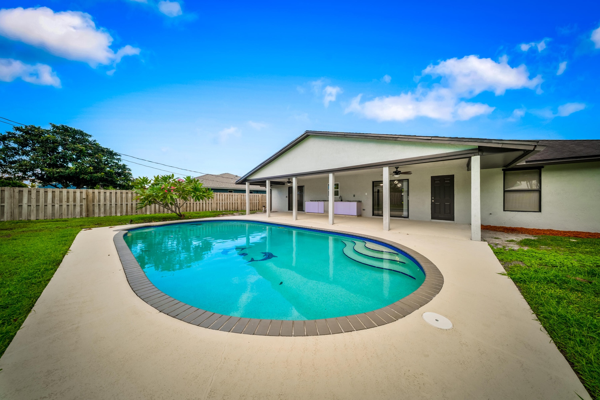 Stunningly remodeled 3BR/2BA 2 car garage pool home in Port St. Lucie! This move-in ready property offers fresh interior & exterior paint, brand new tile flooring throughout, and a spacious open-concept kitchen with quartz counters, sleek cabinetry, and new stainless-steel appliances. Both bathrooms have been stylishly remodeled with modern finishes and quartz countertops. Major upgrades include a new A/C with handler & ductwork, new hot water heater, and epoxied garage floor. The backyard is a true retreat with a sparkling, clean pool, freshly painted deck & patio, and a brand-new outdoor kitchen- perfect for entertaining year-round! Schedule your showing today!