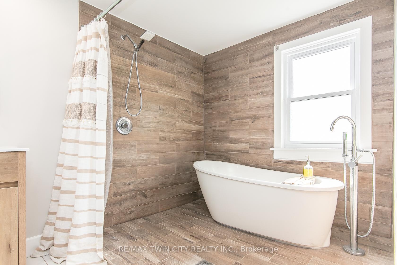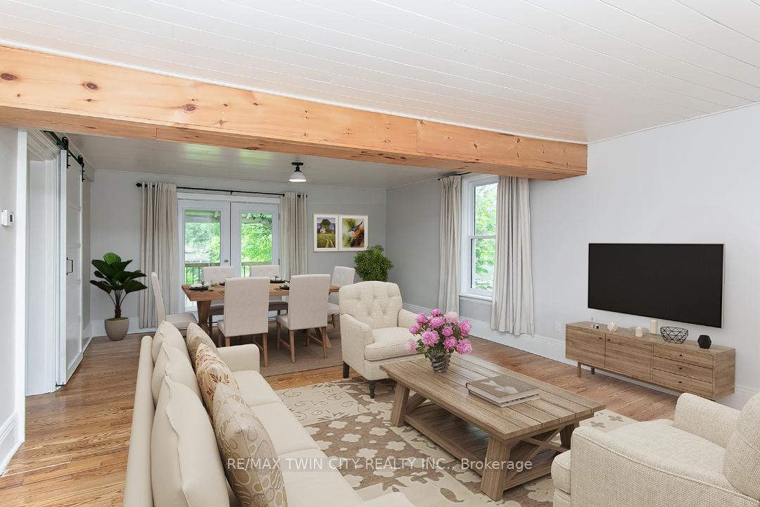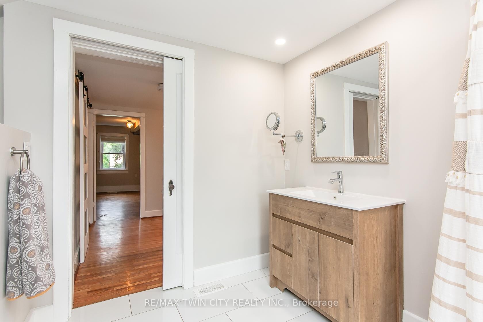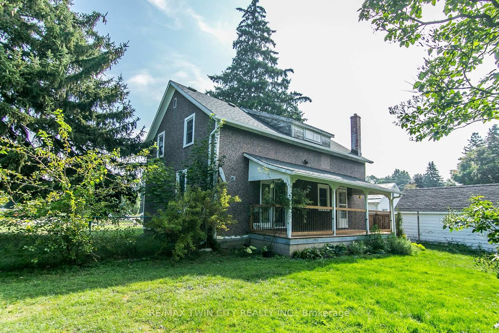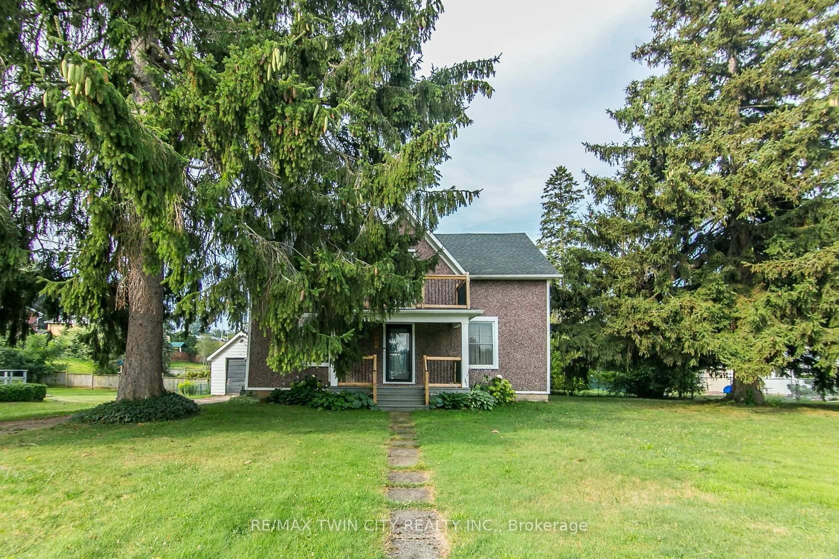 This beautifully restored Farmhouse seamlessly blends timeless character with modern upgrades. Set well off the road, on a generous 2/3 acre lot, the property offers privacy, space & incredible potential - all just minutes from amenities & 401 highway access. The heart of the home is the skillfully renovated kitchen, showcasing rich indigo cabinetry, maple counter tops, new SS appliances, floating shelves, and breakfast bar. With a raised sink and vintage tile, the spacious main floor powder room complements the farmhouse feel. The main living & dining areas showcase classic trim work, large new windows & garden doors that lead to the remodeled covered porch perfect for enjoying tranquil views of mature trees, lilacs, raspberry & mulberry bushes alongside frequent visits from birds & local wildlife. Upstairs, the expansive primary suite offers flexibility keep it as an impressive retreat, add a nursery or creative space, or easily convert the home back into a 3 bedroom layout. The breathtaking, spa-inspired bathroom features a freestanding soaker tub, large open walk-in shower, private water closet & ample storage. A conveniently located second floor laundry room comes complete with new appliances (a 2nd set in bsmt!) & a tub/shower combo for everyday conveniences. Step out onto the upper balcony to enjoy views of the park & nearby trails. Hardwood floors throughout and lighting fixtures thoughtfully chosen to complement the rustic charm. Freshly painted from trim to ceiling, this home is move-in ready! The expansive lot offers room to dream consider adding a pool, workshop, or exploring the possibility of a secondary dwelling unit, with ample parking for 4+ vehicles & a detached garage. Ideally located across from the community center (with pool!) and no back neighbours! This is more than a home its a lifestyle! Come experience the perfect blend of City conveniences and country charm. Dont miss the chance to make it yours!