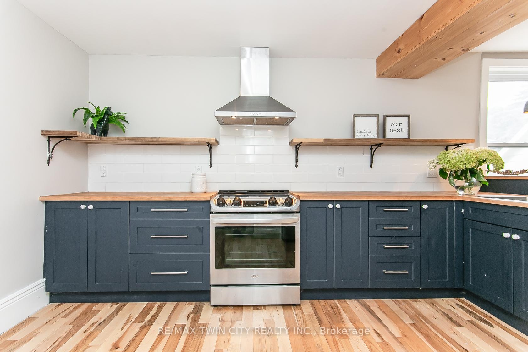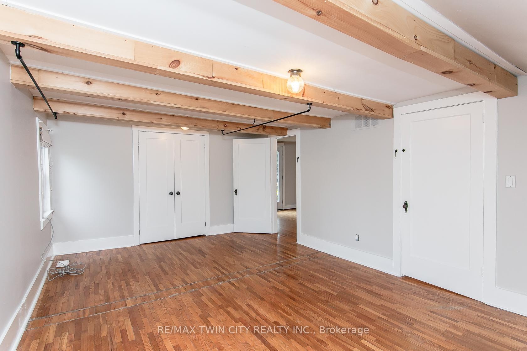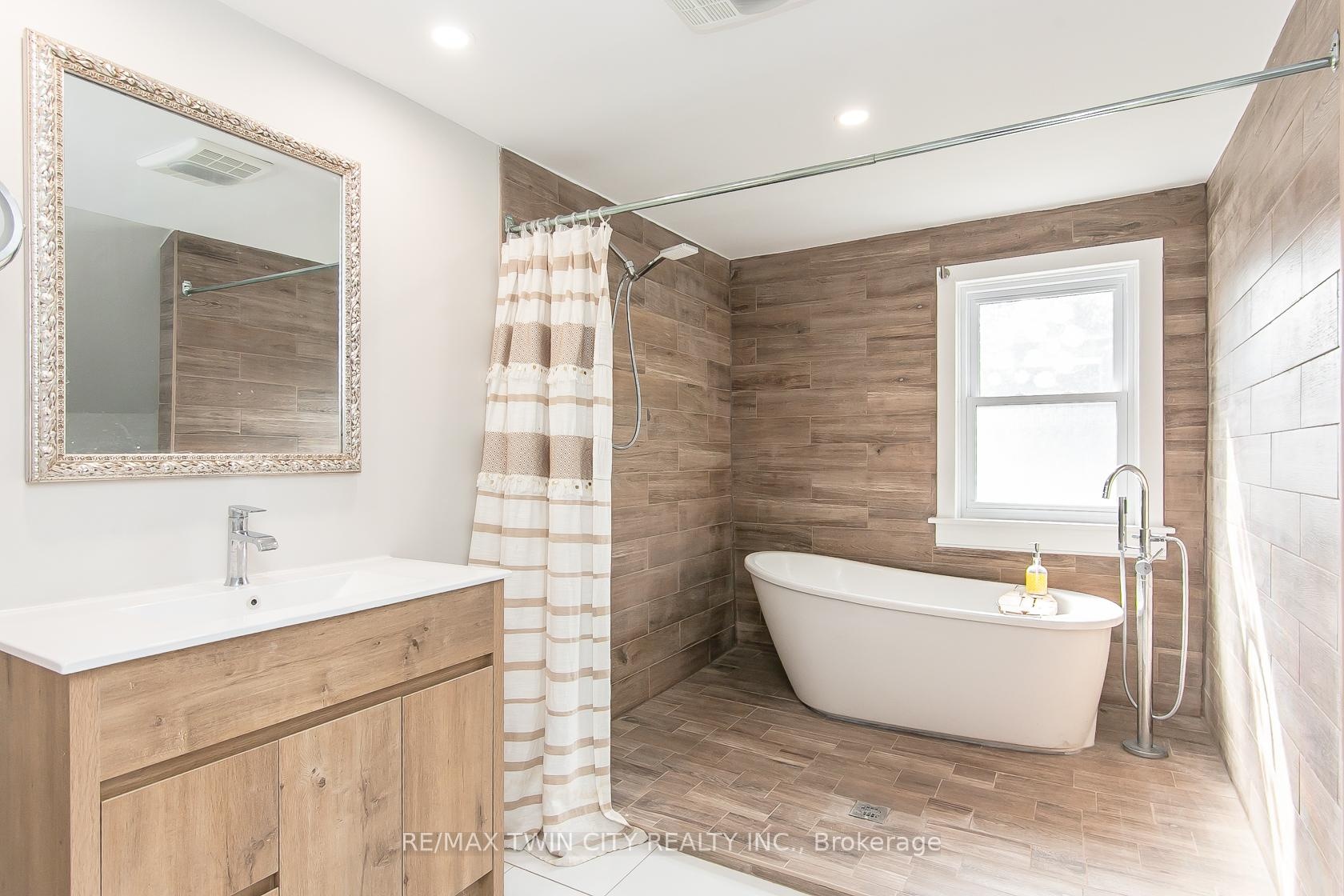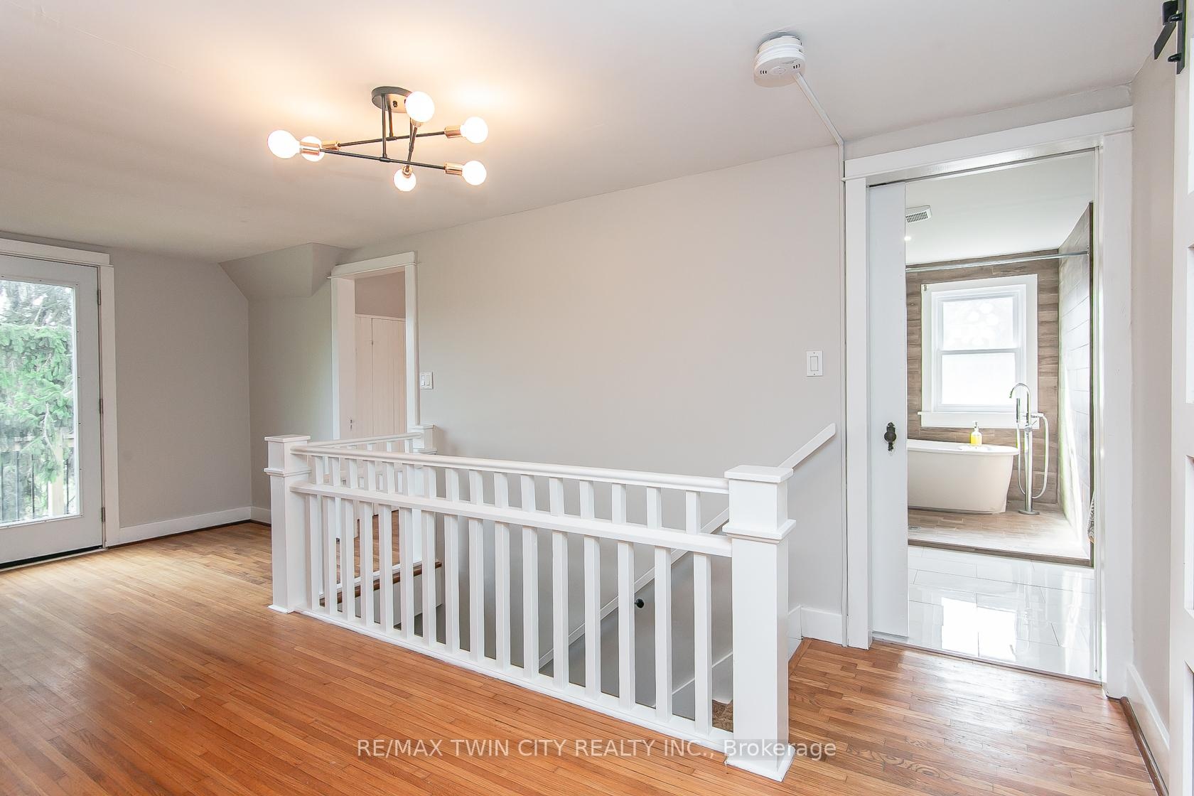 This beautifully restored Farmhouse seamlessly blends timeless character with modern upgrades. Set well off the road, on a generous 2/3 acre lot, the property offers privacy, space & incredible potential - all just minutes from amenities & 401 highway access. The heart of the home is the skillfully renovated kitchen, showcasing rich indigo cabinetry, maple counter tops, new SS appliances, floating shelves, and breakfast bar. With a raised sink and vintage tile, the spacious main floor powder room complements the farmhouse feel. The main living & dining areas showcase classic trim work, large new windows & garden doors that lead to the remodeled covered porch perfect for enjoying tranquil views of mature trees, lilacs, raspberry & mulberry bushes alongside frequent visits from birds & local wildlife. Upstairs, the expansive primary suite offers flexibility keep it as an impressive retreat, add a nursery or creative space, or easily convert the home back into a 3 bedroom layout. The breathtaking, spa-inspired bathroom features a freestanding soaker tub, large open walk-in shower, private water closet & ample storage. A conveniently located second floor laundry room comes complete with new appliances (a 2nd set in bsmt!) & a tub/shower combo for everyday conveniences. Step out onto the upper balcony to enjoy views of the park & nearby trails. Hardwood floors throughout and lighting fixtures thoughtfully chosen to complement the rustic charm. Freshly painted from trim to ceiling, this home is move-in ready! The expansive lot offers room to dream consider adding a pool, workshop, or exploring the possibility of a secondary dwelling unit, with ample parking for 4+ vehicles & a detached garage. Ideally located across from the community center (with pool!) and no back neighbours! This is more than a home its a lifestyle! Come experience the perfect blend of City conveniences and country charm. Dont miss the chance to make it yours!