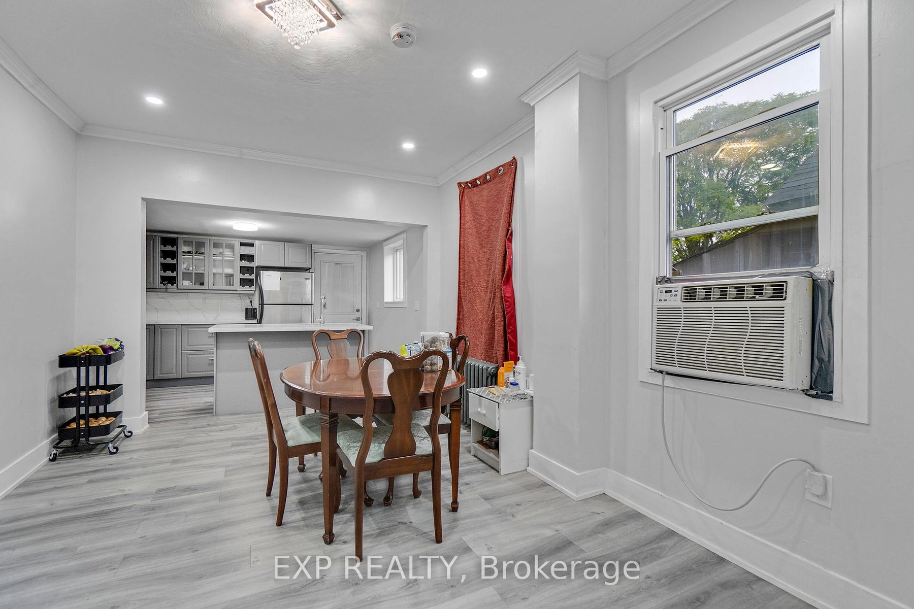 Rare Opportunity in Crown Point North! Step into this expansive 2349 sq ft home with the rare advantage of M6 zoning, opening the door to multi-generational living, home business opportunities, or strong rental income. Impeccably maintained, the property showcases 5+2 bedrooms, 3+1 bathrooms plus an additional bath in the garage, and dual kitchens, making it ideal for families of all sizes or savvy investors. The inviting main floor highlights a modernized kitchen, convenient laundry area, and a bright front office, perfect for those who work from home. The finished basement adds even more flexibility, complete with 2 bedrooms, an eat-in kitchen, a 3-pc bath, and a separate walk-up to the backyard offering prime in-law or rental potential. A true highlight is the 534 sq ft detached garage, fully heated and equipped with a 2-pc bathroom, gas rough-in, and heat pump for heating and cooling. Perfectly suited as a workshop, studio, or light industrial space, it also includes an unfinished loft currently used for storage. The exterior offers practical perks with a triple-wide driveway accommodating 7 vehicles, a low-maintenance backyard finished with a concrete patio, and two oversized sheds for extra storage. Perfectly situated close to shopping, schools, public transit, and amenities, this property delivers endless possibilities for living, working, or investing.
