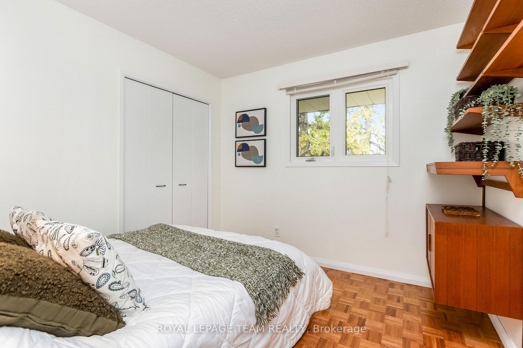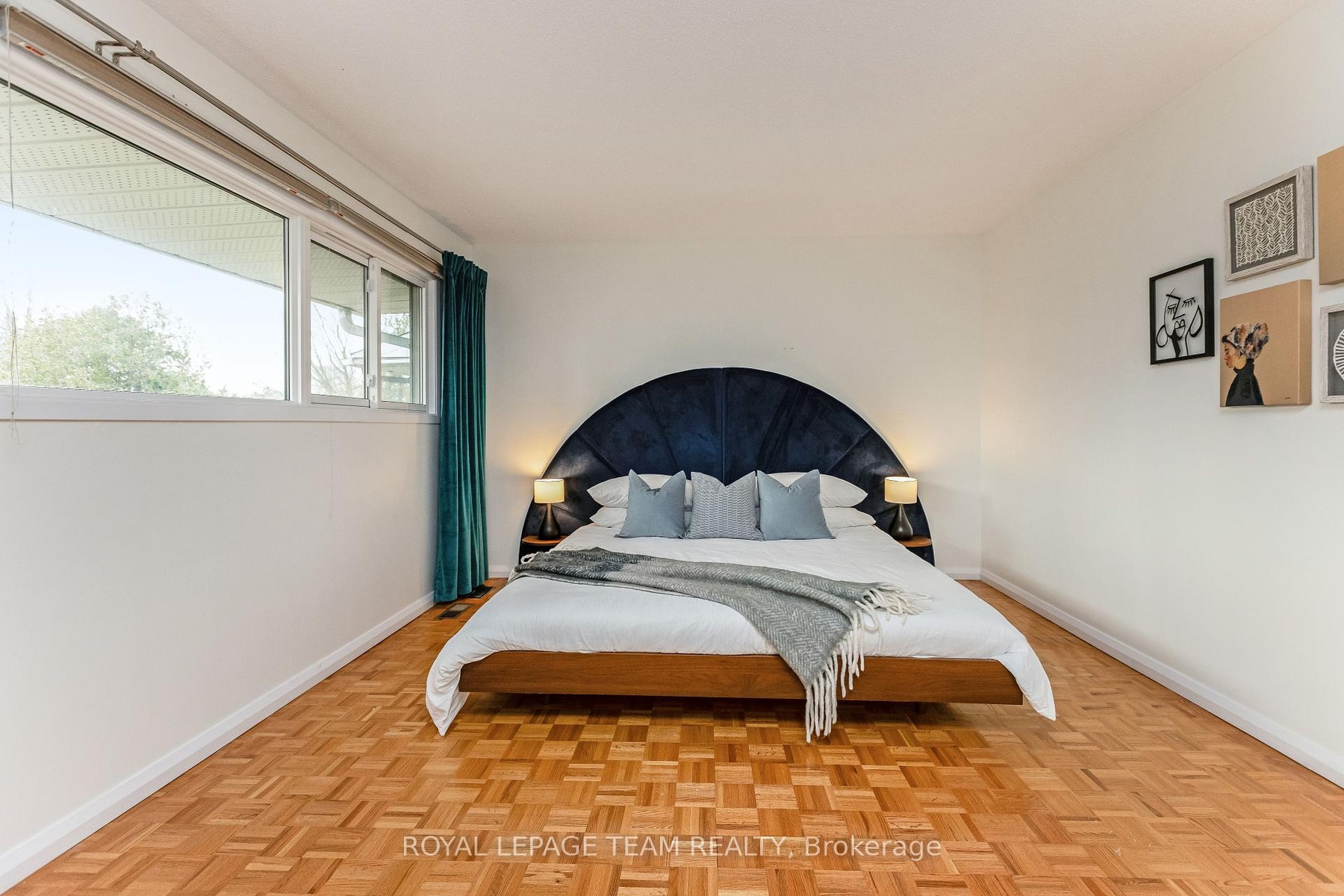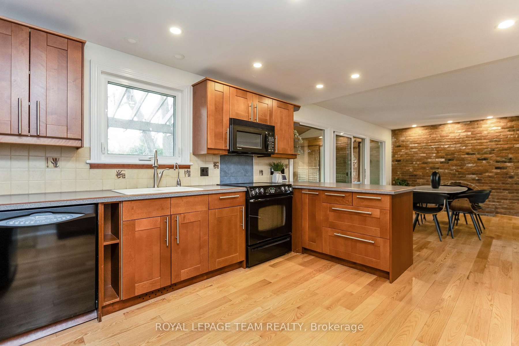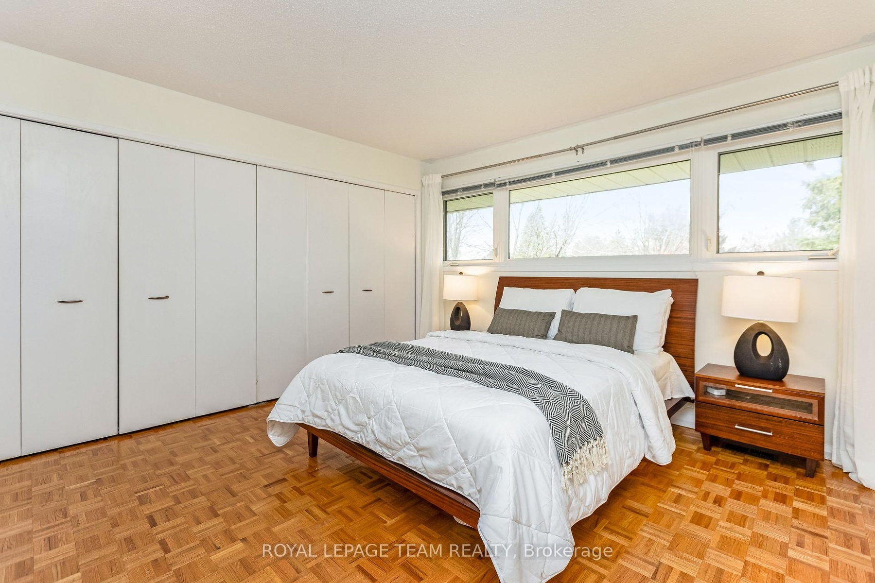 No rear neighbors! This striking mid-century modern 4-bed, 3-bath home sits on a quiet street in prestigious Beaverbrook, with an oversized lot that feels like your own private retreat. Extensively renovated throughout including flush beam installed creating open concept main floor living, it blends timeless design with contemporary updates. The open-concept main floor features clean lines, oversized windows, and a striking brick feature wall with a cozy wood-burning fireplace. A true highlight is the 4-season solarium with vaulted ceilings and skylights - perfect for soaking in views of the private backyard oasis year-round. A sunny flex room on the main level offers the ideal spot for a home office or dining room. Recent updates include the kitchen, three bathrooms, banister and iron railings, hardwood flooring, lighting, and wiring. Upstairs, the primary suite boasts a custom walk-through closet and sleek 3-pc ensuite. The finished basement extends the living space with a playroom and family room. Step outside to enjoy a spacious patio with pergola, hot tub, and mature landscaping - all with no rear neighbors. Close to parks, trails, and everyday amenities, this home offers the rare combination of privacy, style, and convenience. An iconically Canadian gem in the heart of Beaverbrook!