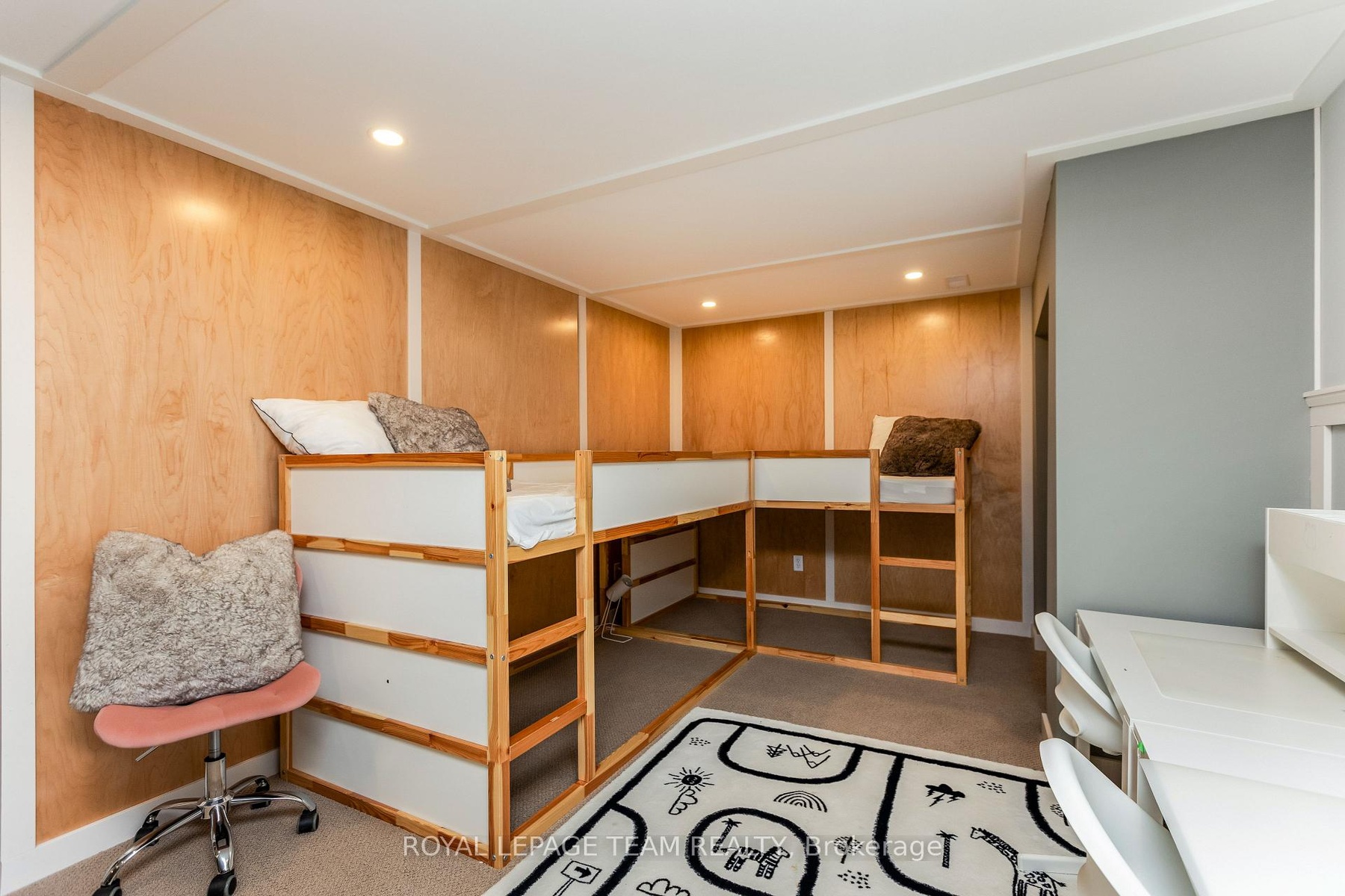 DescriptionNo rear neighbors! This striking mid-century modern 4-bed, 3-bath home sits on a quiet street in prestigious Beaverbrook, with an oversized lot that feels like your own private retreat. Extensively renovated throughout including flush beam installed creating open concept main floor living, it blends timeless design with contemporary updates. The open-concept main floor features clean lines, oversized windows, and a striking brick feature wall with a cozy wood-burning fireplace. A true highlight is the 4-season solarium with vaulted ceilings and skylights - perfect for soaking in views of the private backyard oasis year-round. A sunny flex room on the main level offers the ideal spot for a home office or dining room. Recent updates include the kitchen, three bathrooms, banister and iron railings, hardwood flooring, lighting, and wiring. Upstairs, the primary suite boasts a custom walk-through closet and sleek 3-pc ensuite. The finished basement extends the living space with a playroom and family room. Step outside to enjoy a spacious patio with pergola, hot tub, and mature landscaping - all with no rear neighbors. Close to parks, trails, and everyday amenities, this home offers the rare combination of privacy, style, and convenience. An iconically Canadian gem in the heart of Beaverbrook!Virtual Tour: https://youtube.com/shorts/hAs_xc0MxxgAmenities- Air Exchanger