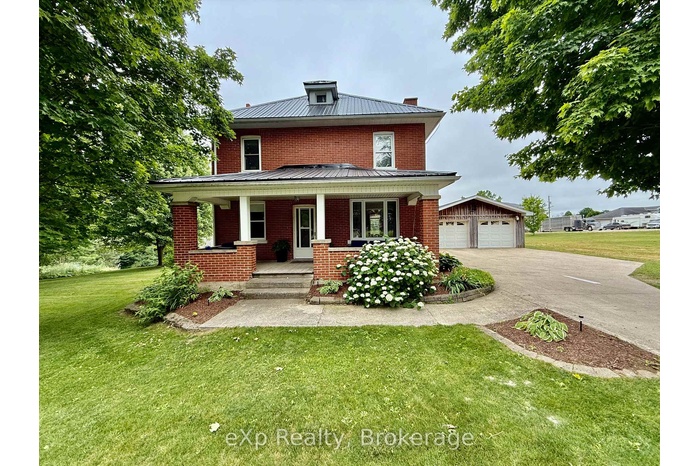 Welcome to 99 Concession 6 - Chepstow. This timeless two storey brick home sits on just the edge of town on a nice sized lot where you can enjoy the privacy of country living yet only minutes to town. This home has an inviting large mud room, traditional eat in kitchen and large living room on the main level. Top the main level off with laundry, a 2 piece bathroom and patio doors that lead to the private back yard and stamped concrete patio. Upstairs you will find 3 large bedrooms, a full bathroom and a quant little sitting nook at the top of the stairs. A beautiful covered generous front porch, new forced air propane furnace with central air and a large two bay detached garage as an added bonus. Check this beauty out.