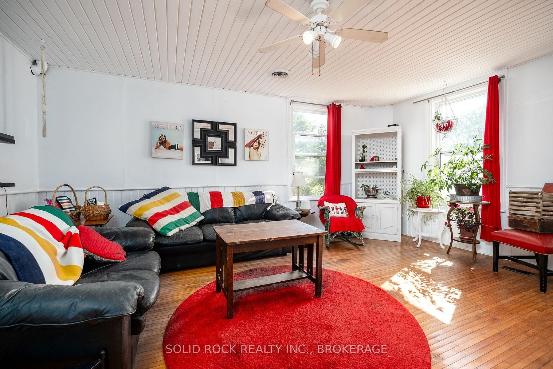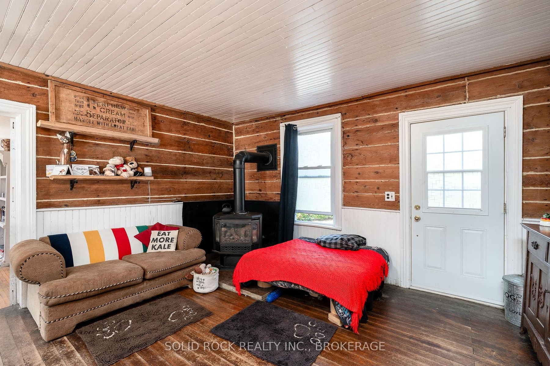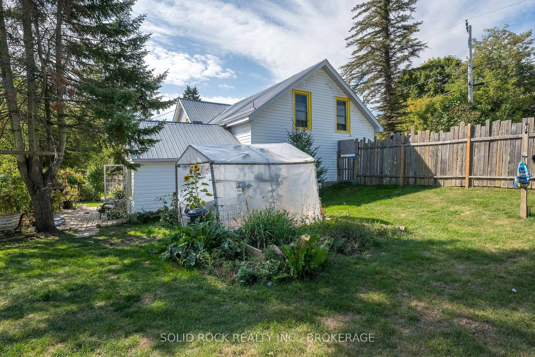 Welcome to this charming 2-storey farmhouse, nestled in the quiet village of Marlbank, just 15 minutes North of Napanee, and Highway 401. Set on a spacious corner lot, the property offers timeless rustic character and a true sense of small-town charm. Inside, the heart of the home is the expansive country kitchen, complete with a walk-in pantry and cozy propane fireplace perfect for family gatherings. The main level also features a versatile den, ideal as a home office or main-floor bedroom. Upstairs, you'll find three comfortable bedrooms plus a generous bonus room, providing space to host family and guests with ease. Outdoors, a large barn presents endless opportunities for storage, workshop use, or hobbies. Enjoy your morning coffee on the back deck, stroll through the mature trees, and relax to the sound of the babbling stream that winds through the property. If you've been dreaming of peaceful village living with space to grow, this is your sign book your private showing today!