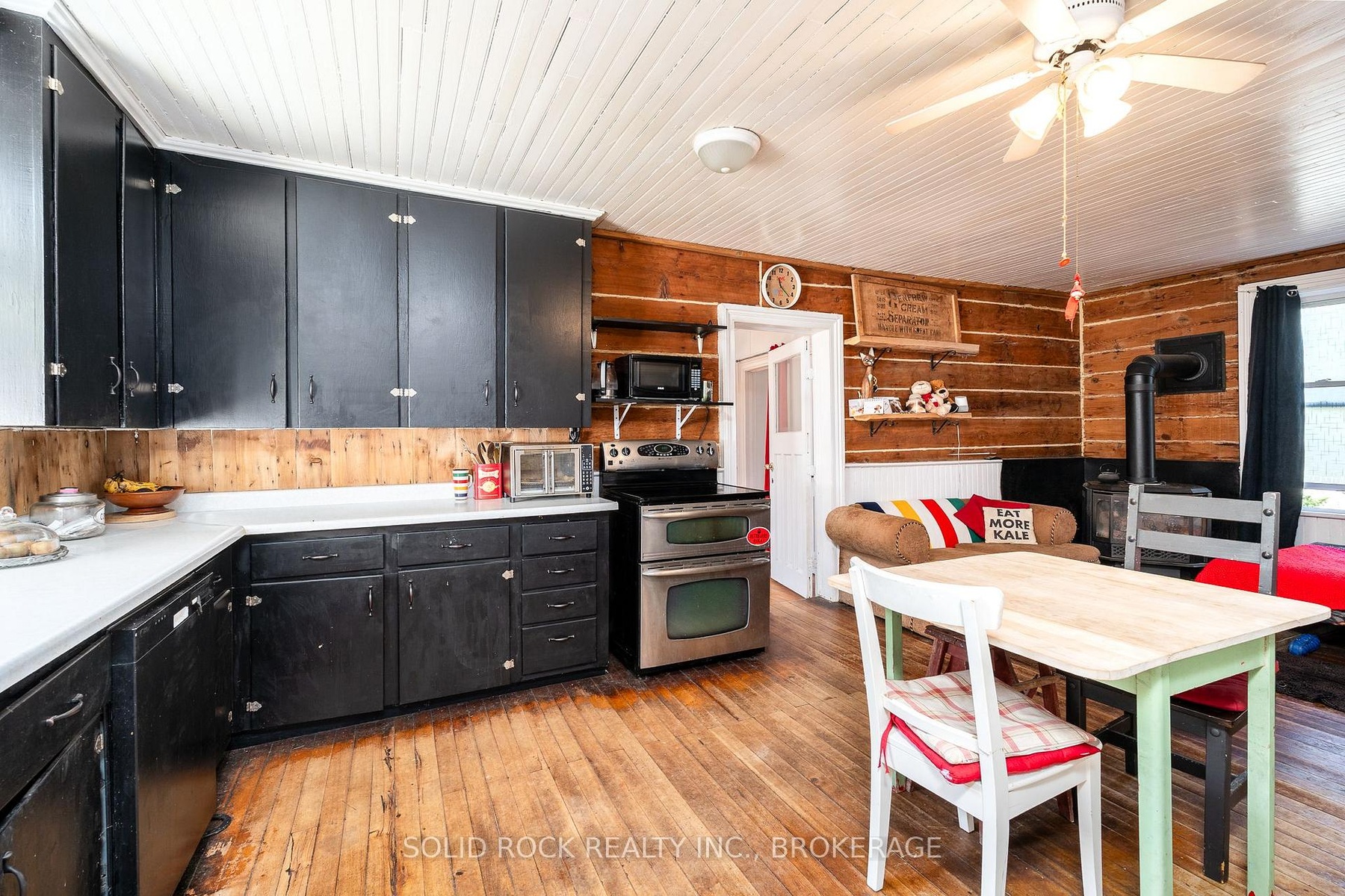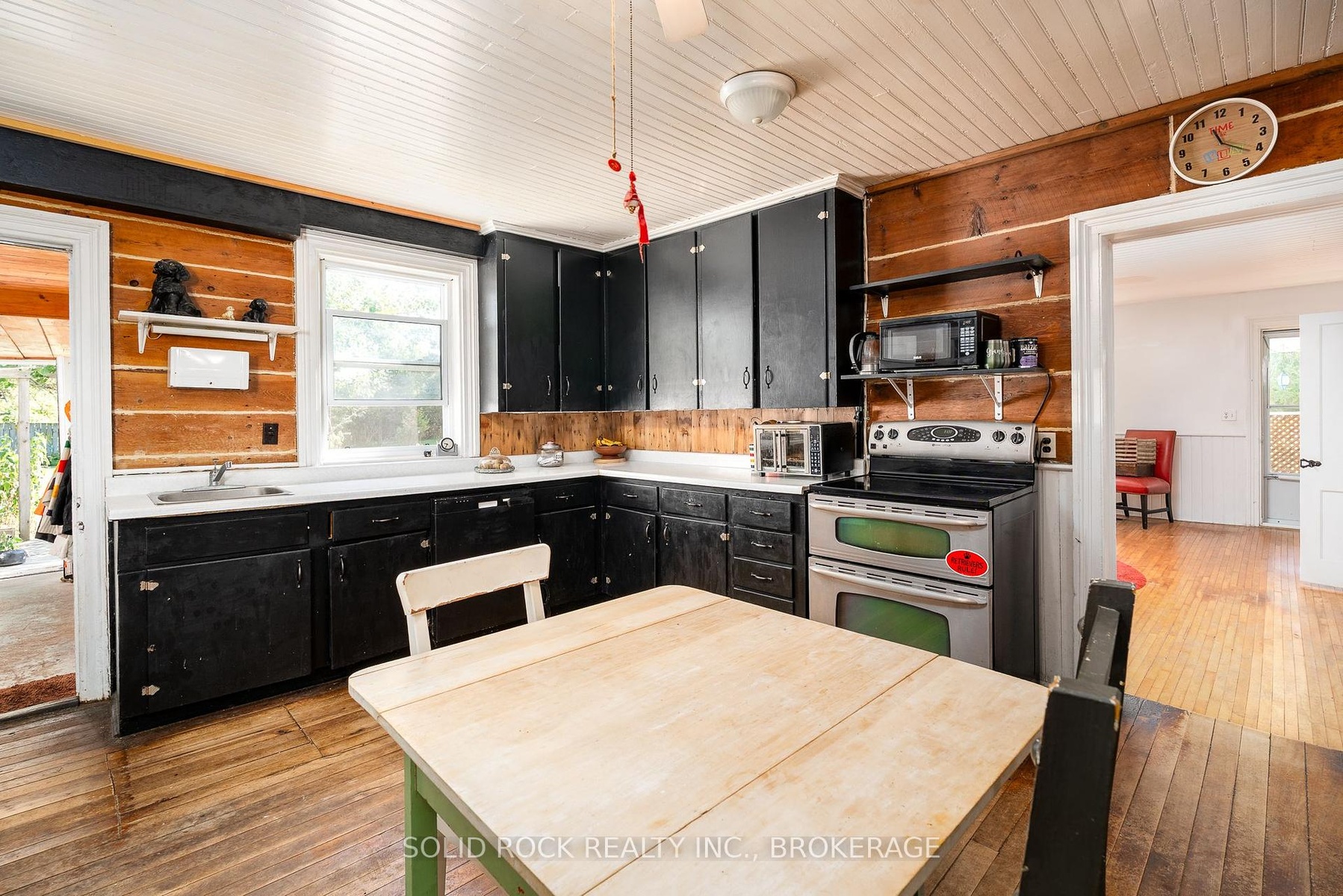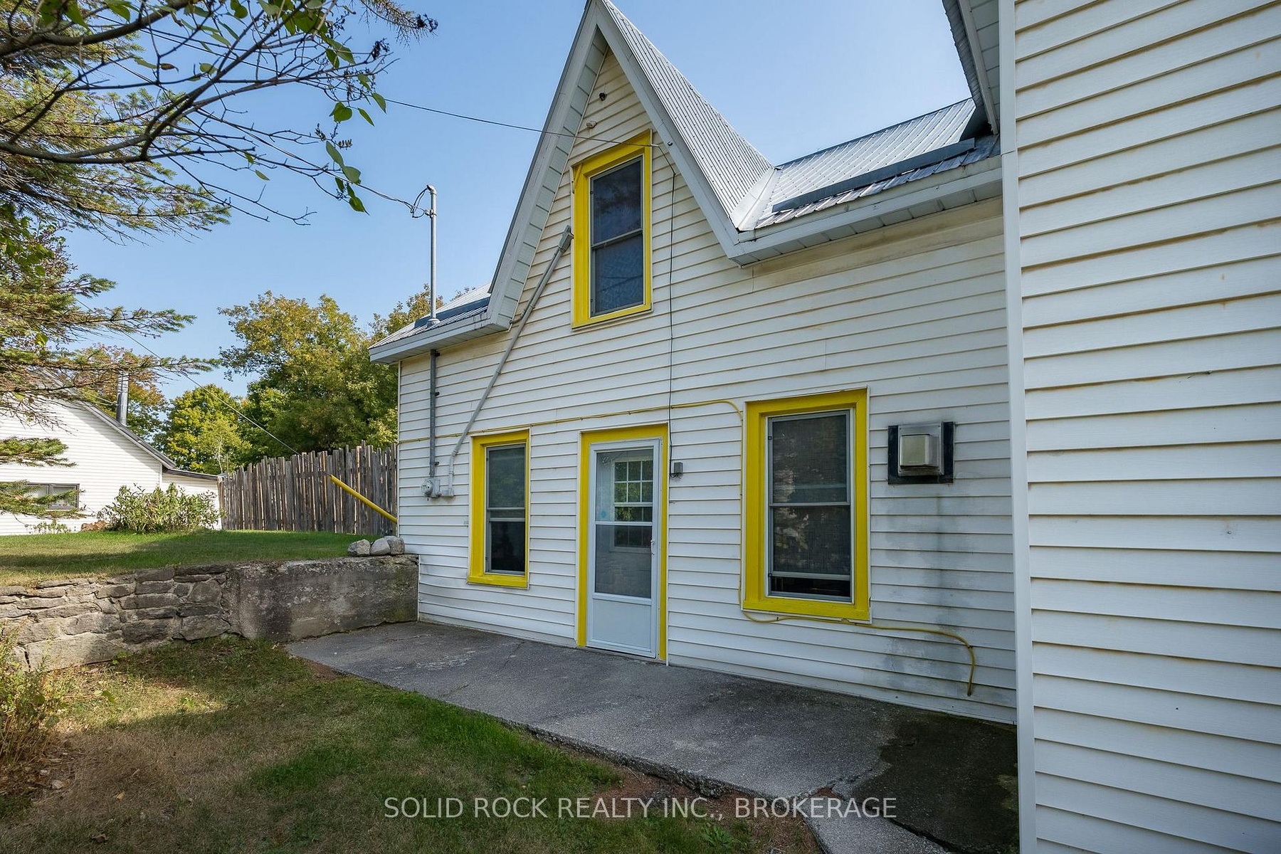 Welcome to this charming 2-storey farmhouse, nestled in the quiet village of Marlbank, just 15 minutes North of Napanee, and Highway 401. Set on a spacious corner lot, the property offers timeless rustic character and a true sense of small-town charm. Inside, the heart of the home is the expansive country kitchen, complete with a walk-in pantry and cozy propane fireplace perfect for family gatherings. The main level also features a versatile den, ideal as a home office or main-floor bedroom. Upstairs, you'll find three comfortable bedrooms plus a generous bonus room, providing space to host family and guests with ease. Outdoors, a large barn presents endless opportunities for storage, workshop use, or hobbies. Enjoy your morning coffee on the back deck, stroll through the mature trees, and relax to the sound of the babbling stream that winds through the property. If you've been dreaming of peaceful village living with space to grow, this is your sign book your private showing today!