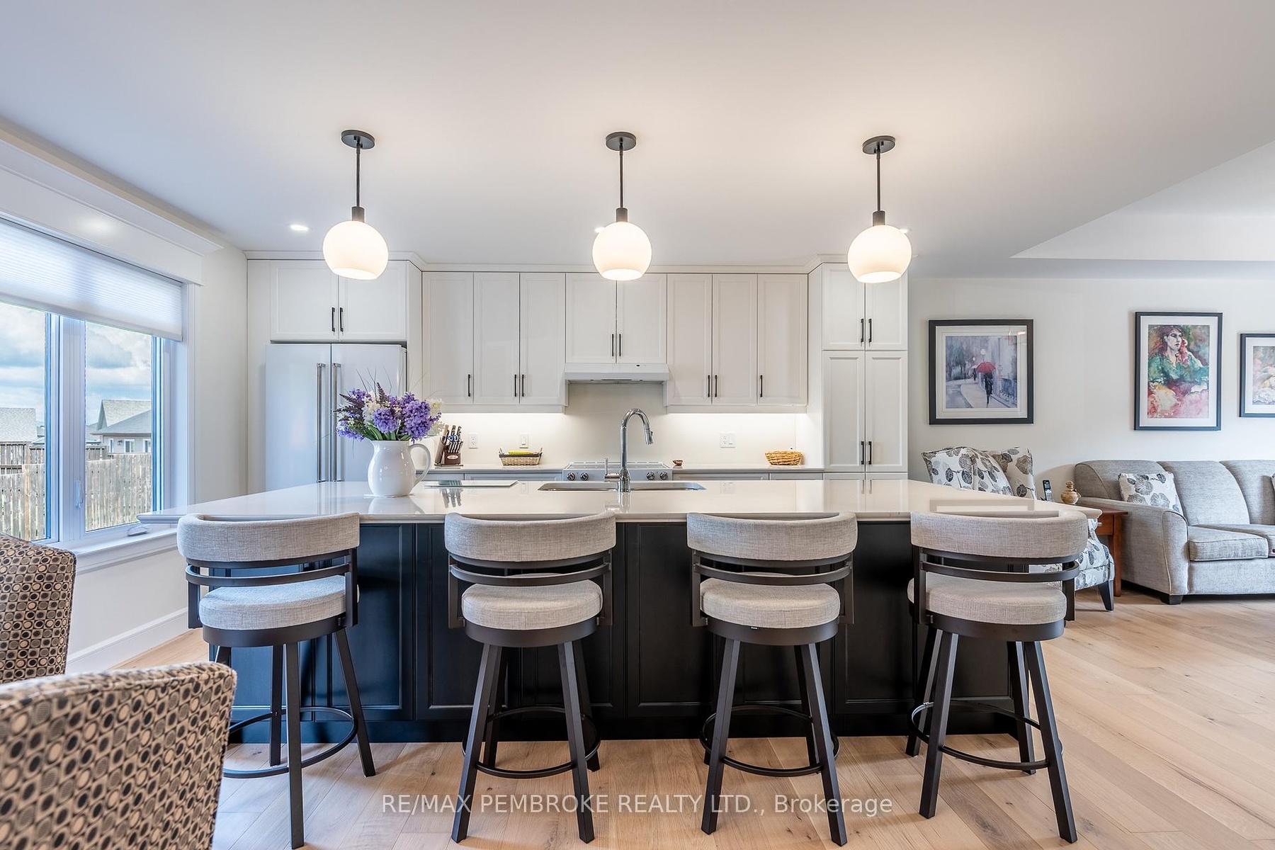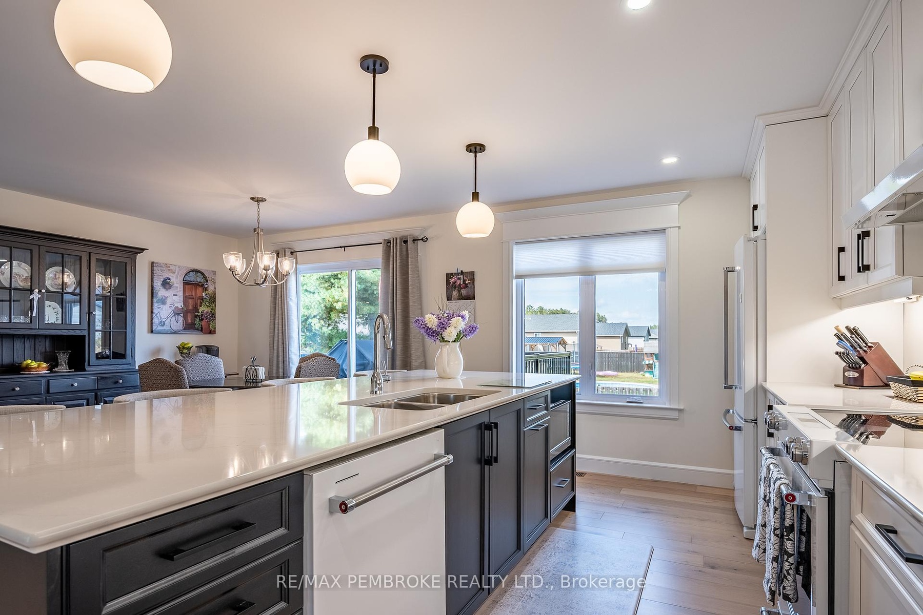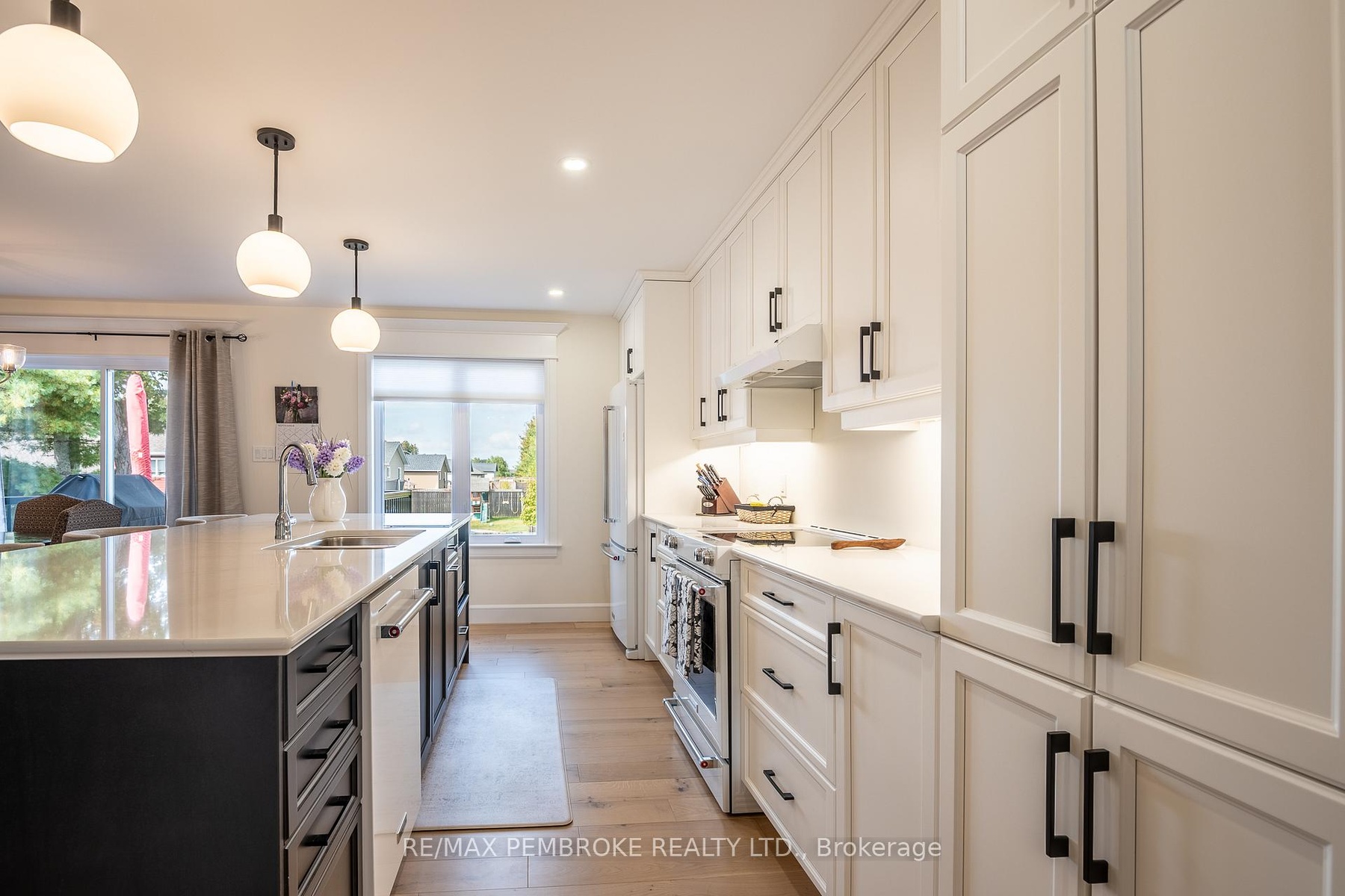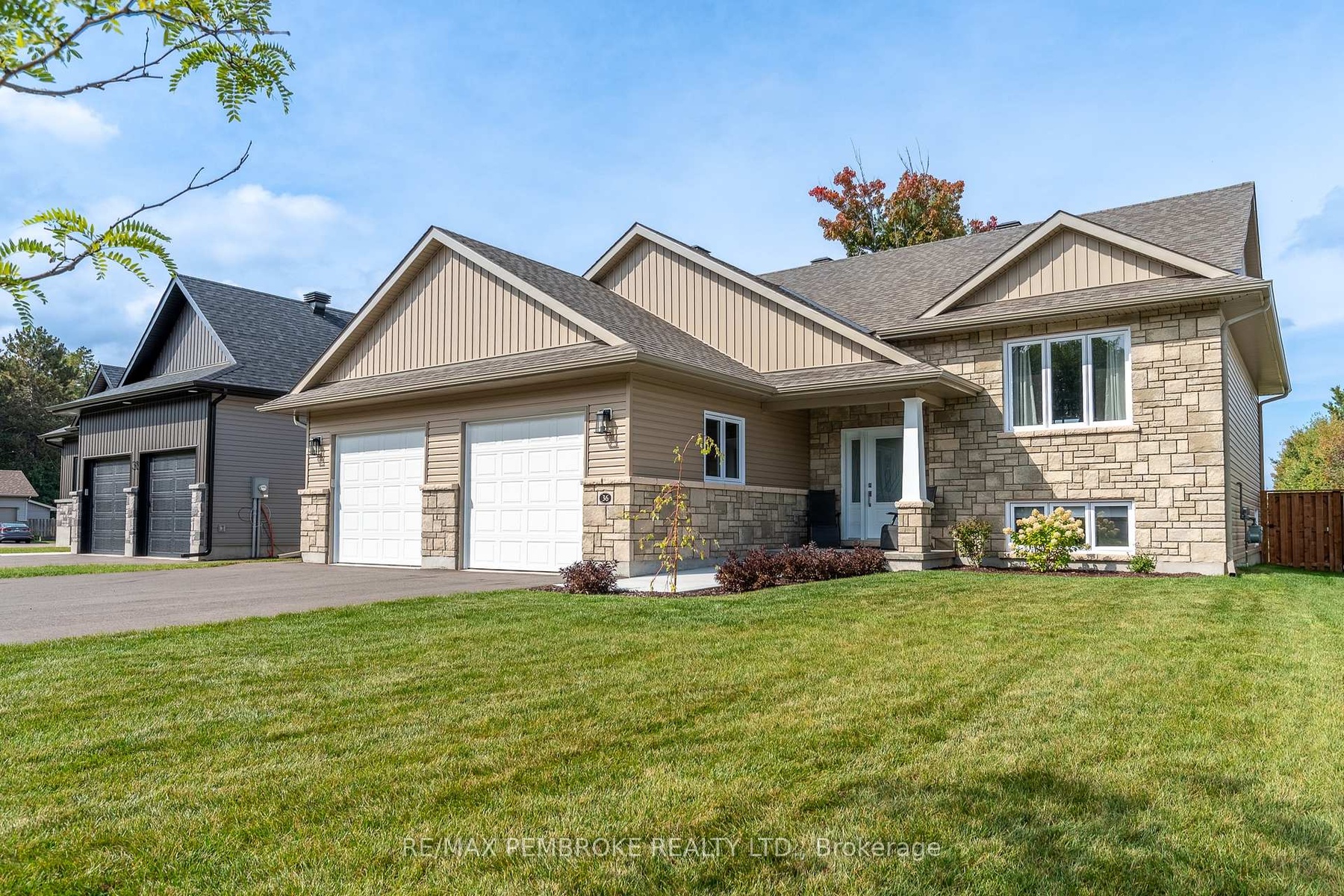 Welcome to this meticulously maintained, like-new home offering approximately 1,360 sq ft of beautifully designed living space plus a spacious 25 x 23 attached garage, perfect for extra storage, hobbies, and vehicles. Built in 2024, this property stands out with its unique layout, upscale finishes, and move-in ready condition. Step inside to discover an open-concept main level featuring warm french vanilla engineered hardwood flooring throughout the living spaces and bedrooms. The heart of the home is the chef-inspired kitchen, where ceiling-height cabinetry, quartz countertops, soft-close drawers, and an additional pantry tower offer both style and function. A large island with built-in trash/recycling drawer, additional storage, and seating for four makes this the perfect space for entertaining or casual meals.The spacious primary suite is a true retreat, complete with a 3-piece ensuite showcasing a custom tile shower with a built-in bench and niche, plus an exceptionally rare 14ft x 9ft connected dressing room/laundry room with French doors; an elegant and highly functional touch you will not find in most homes. Downstairs, plush carpeting leads you to a cozy family room with a natural gas fireplace, a third full bathroom, and two additional versatile rooms, one a large bedroom, and the other a bonus space behind frosted glass French doors ideal for a fourth bedroom, home office, or gym. You will also find both finished and unfinished storage areas to meet all your needs. Step outside to enjoy a fully fenced yard with a two-tier deck right off of the dining room, complete with natural gas hookup for a grill and an in-ground irrigation system to keep your lawn lush.This home combines high-end finishes with thoughtful functionality, offering a lifestyle of comfort, convenience, and quiet luxury. This is your chance to own a standout property in a desirable neighbourhood. 24 hour irrevocable required on any written offer.