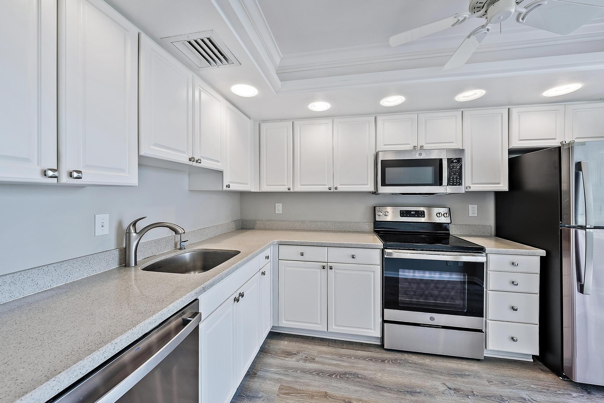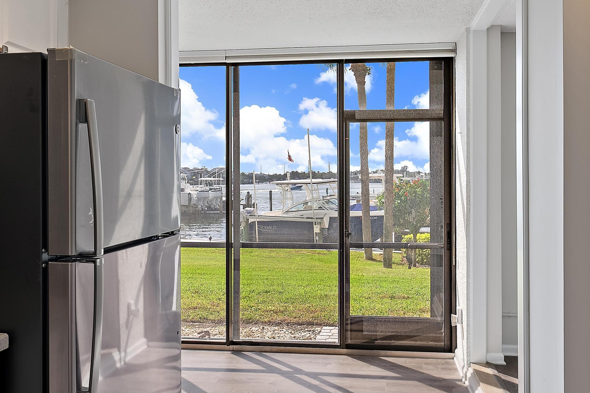 Enjoy amazing views of Jupiter Inlet and the Intracoastal from this gorgeous waterfront condo in Jupiter Cove. The ground floor unit is updated with coastal neutral colors, brand new appliances, luxury vinyl plank floors, New A/C and Water Heater (2022).Jupiter Cove offers boat slips up to 40' for rent or purchase when available. Tennis, pickleball, kayak storage, pool, clubhouse, onsite management and gated security. Grill out at the waterfront Tiki Bar with your own private beach perfect for wading out to the sandbar.Step out the back door to the marina, with easy access to the Atlantic Ocean, Intracoastal and Loxahatchee River. Pet friendly unit with no elevators needed.Jupiter Cove is close to Tequesta, the beach, world class golf, dining and shopping.