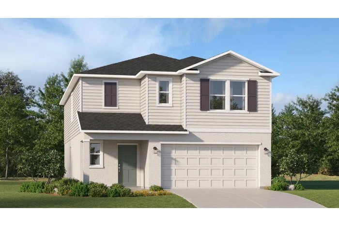 DescriptionThis new two-story home boasts a modern layout with an open-concept floorplan consisting of a stylish kitchen, dining room and family room on the first floor. A convenient bedroom is located toward the back of the home, perfect as a guest suite or home office. Five additional bedrooms can be found upstairs, including the luxurious owner's suite, surrounding a versatile loft space.Prices, dimensions and features may vary and are subject to change. Photos are for illustrative purposes only.