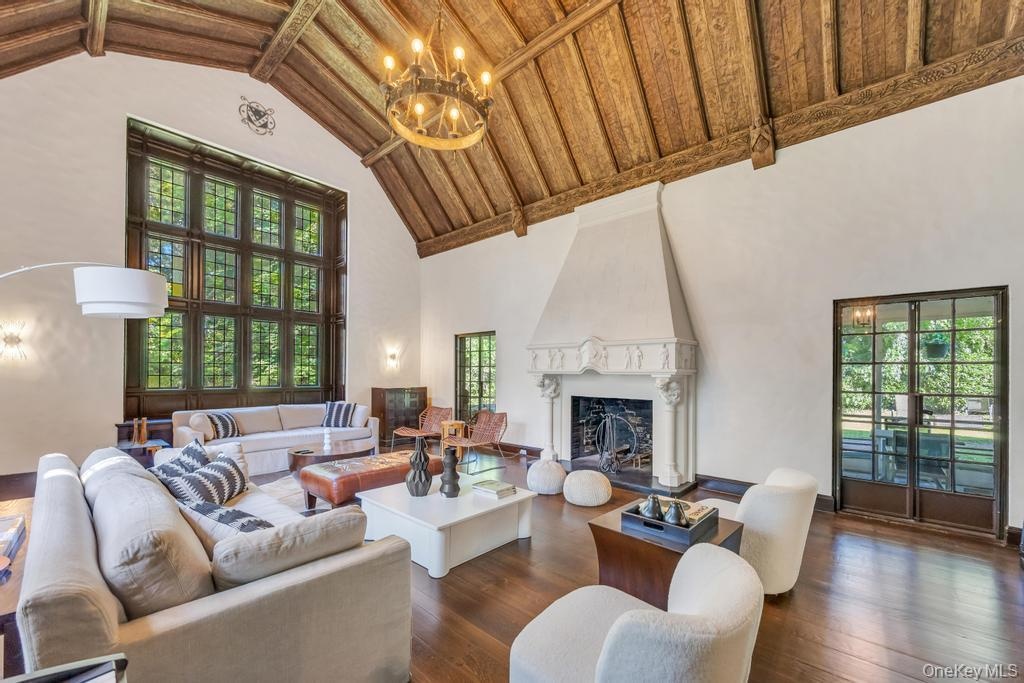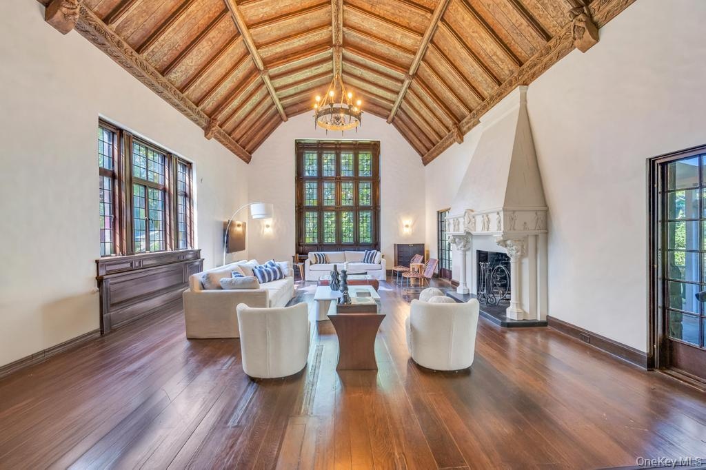 Located In Prestigious Great Neck Estates, This Impressive Colonial Exudes Historic Grandeur And Timeless Elegance. A Two-Story Circular Limestone Foyer With A Sweeping Wrought-Iron Staircase Opens Through Arched Doorways To A Grand Formal Living Room With Vaulted, Hand-Hewn Beamed Ceilings And A Sculpted Regal Fireplace. The Oversized Formal Dining Room Showcases Ornate Coffered Ceilings And Intricate Plasterwork, While Wide-Plank Hardwood Floors Throughout Balance Classic Craftsmanship With Modern Sophistication. A Fabulous Kitchen And Den Lead To A Year-Round Sunroom, Perfect For Everyday Living. The Home Offers Four Bedrooms Plus Finished Attic Stairs Leading To A Third Floor With Outstanding Potential For An Additional Bedroom, Home Office, Or Recreation Space. Exclusive Village Amenities Include A Waterfront Park, Tennis Courts, Pool Club, Summer Camp, And Private Police. Ideally Zoned For Choice Of Great Neck South Or North Middle School And Conveniently Located Near Town And The LIRR.