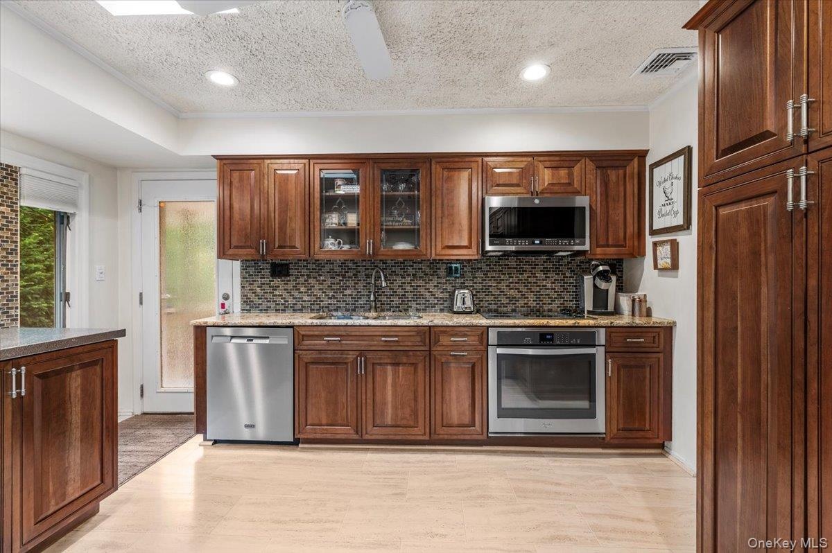 enjoy a cozy den with sliders leading to the backyard, perfect for indoor-outdoor living. Down one more level, the finished basement adds incredible flexibility with space for a gym, playroom, or anything you can vision, additional storage, laundry and mechanicals. New HW heater, gutters and newer AC. Move-In Ready & Filled with Natural Light This home has been thoughtfully updated and shines bright with natural light throughout. Located Within the highly sought-after Syosset School District the home is zoned for Baylis Elementary, Thompson Middle School, and Syosset High School, Close to parks, shopping, dining, and more. Don’t miss this one, homes like this don’t last long in today’s market!