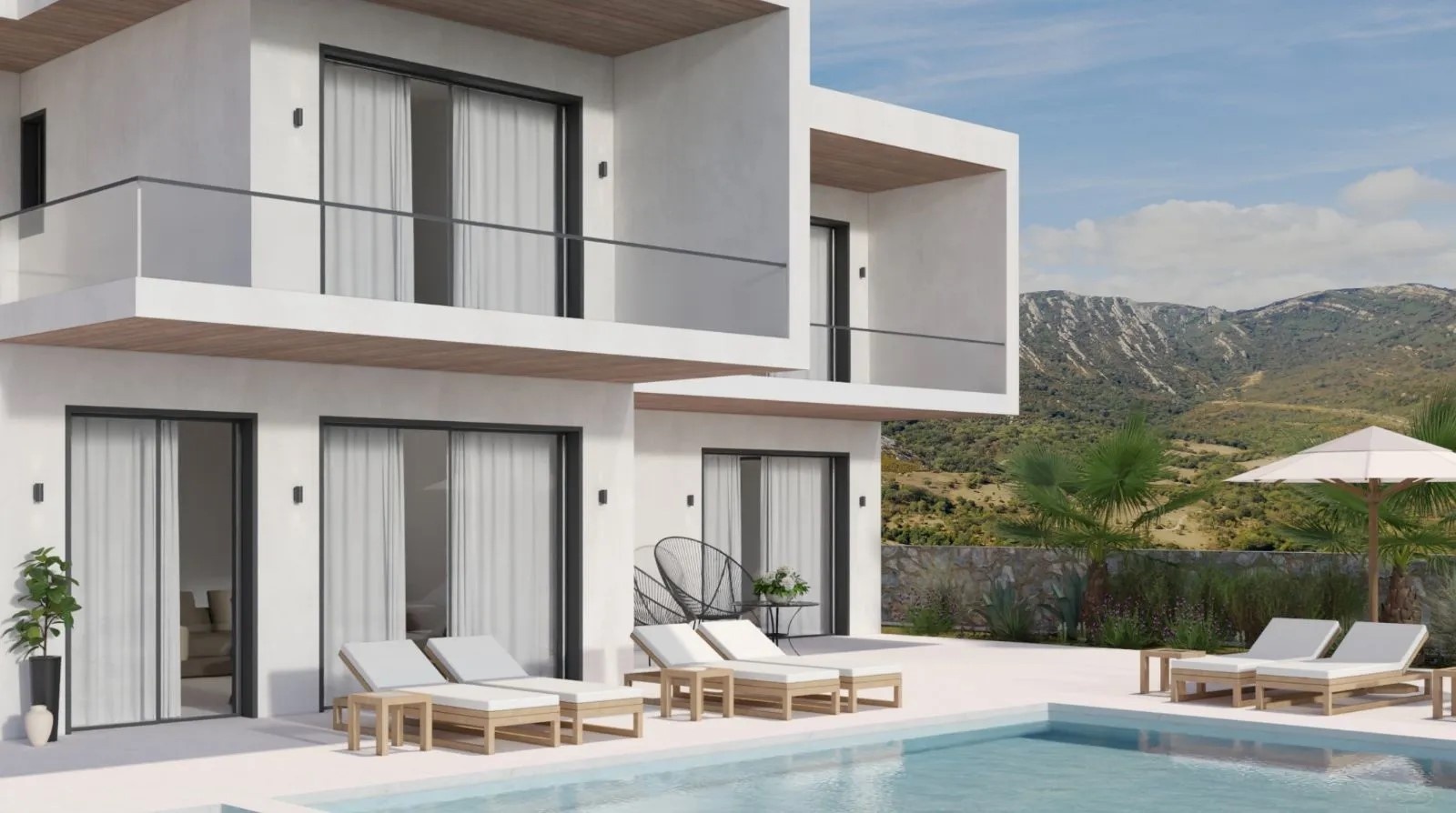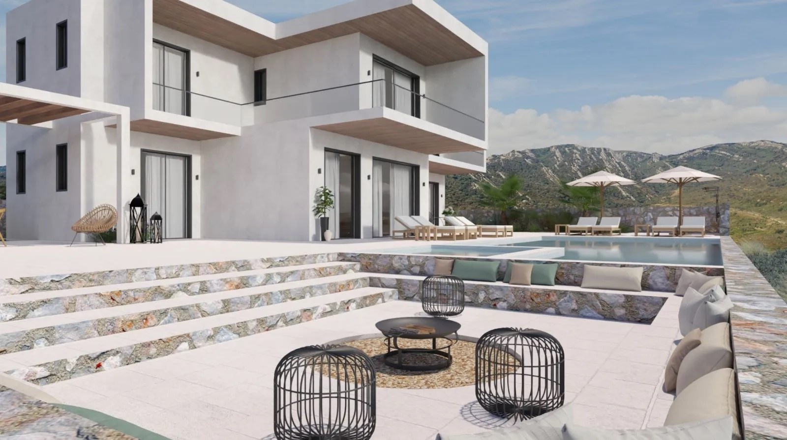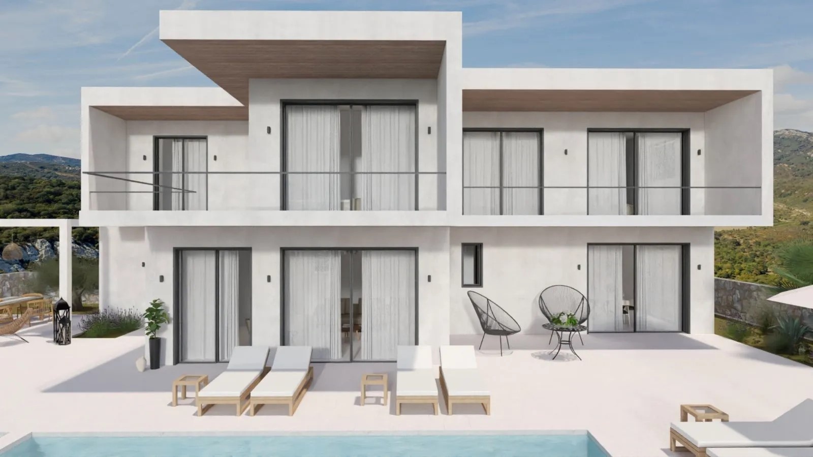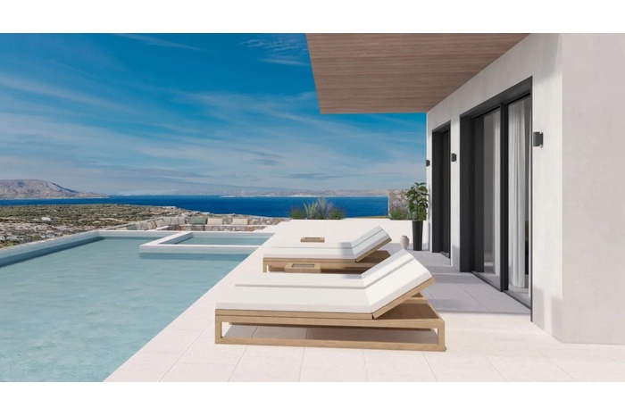 DescriptionLocated in the tranquil village of Kokkino Chorio, this newly designed villa offers a refined living experience with uninterrupted views of the sea and surrounding landscape.