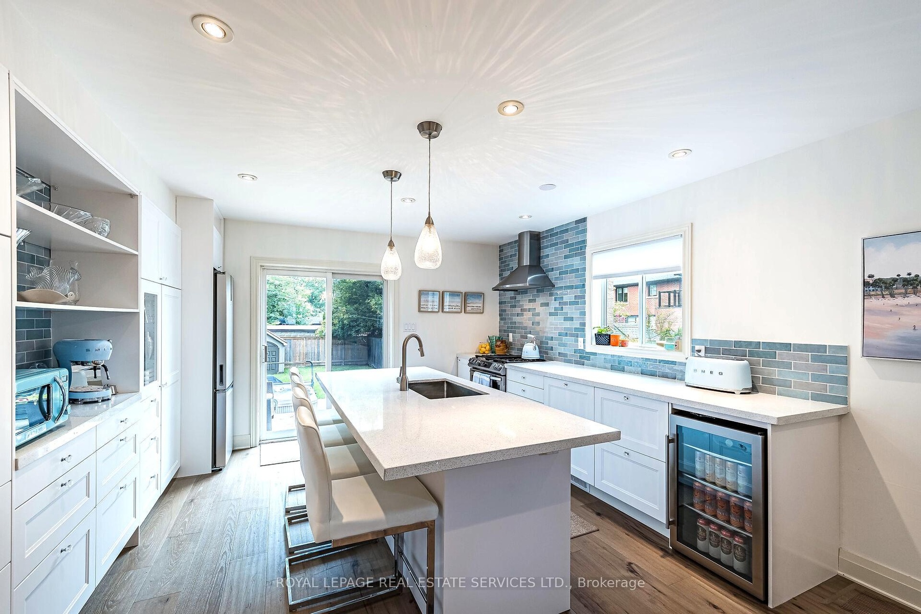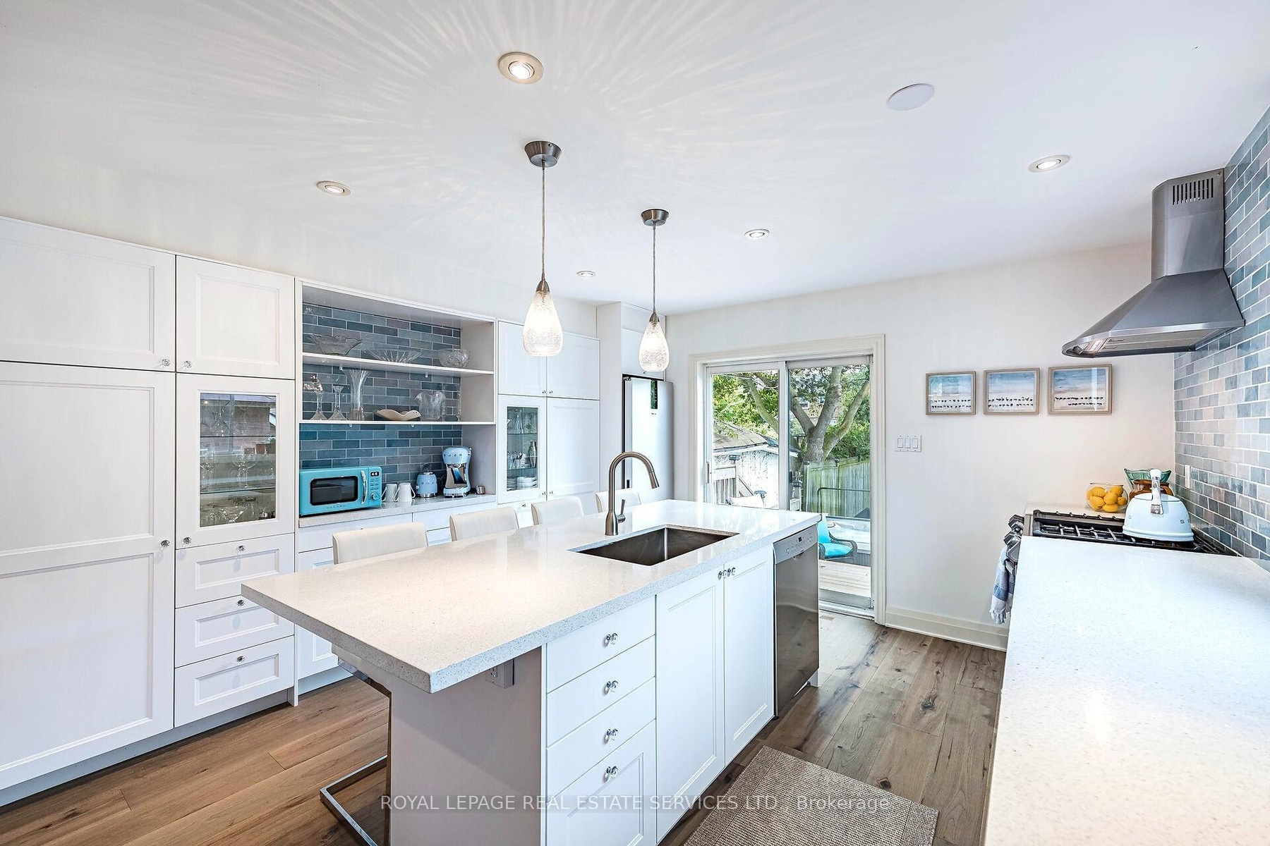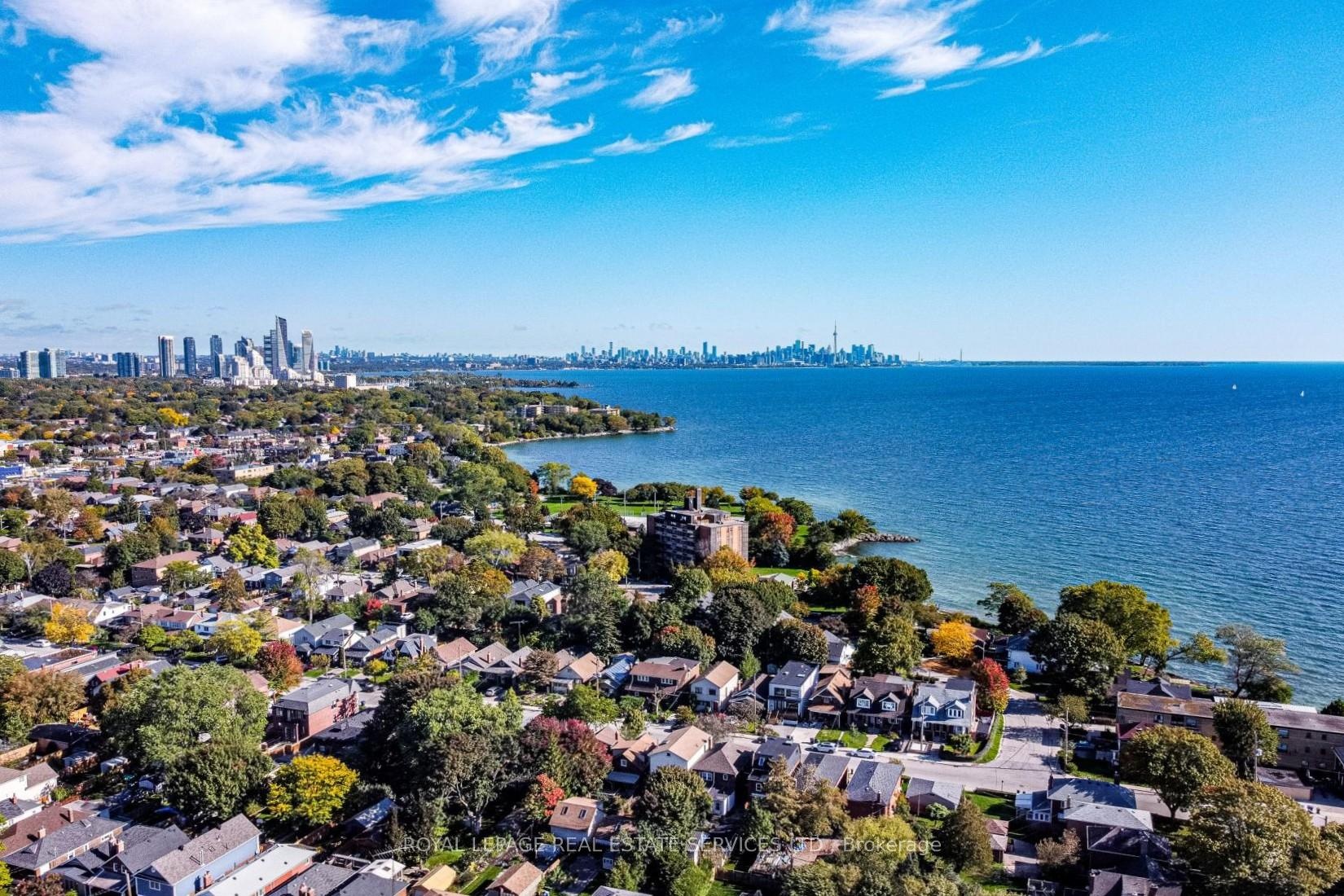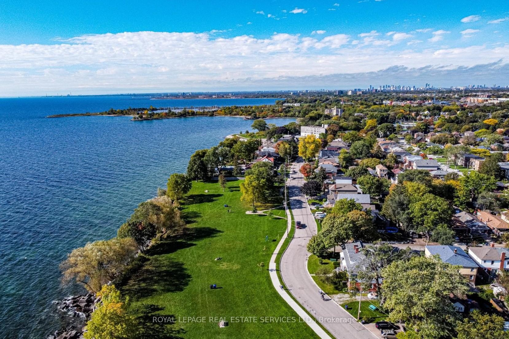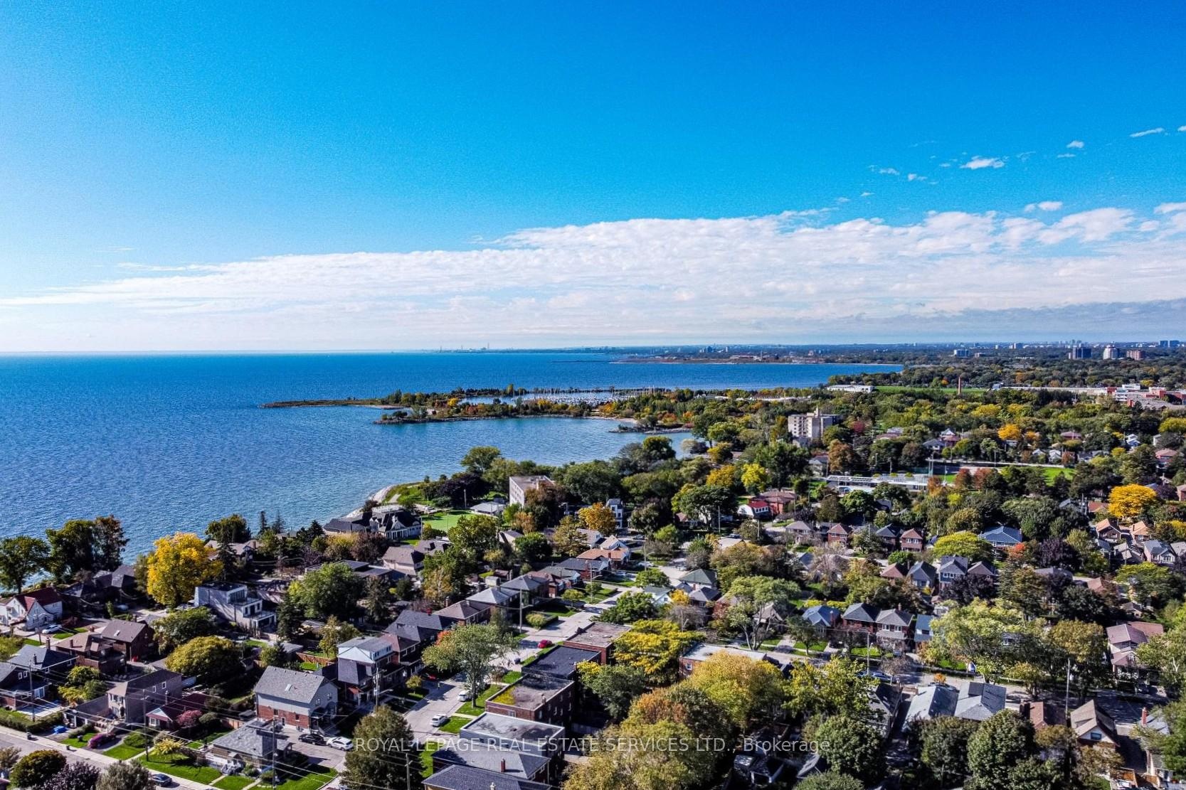 This simply-delightful, recently renovated home offers turn-key living, stylish updates & modern decor in a wonderful, near the Lake location! This captivating, 3-bedroom, 2-bathroom home is literally a stone's throw to the Lake. It is the 1st house from Lake Shore Dr, the Waterfront Trail, and lakeside Cliff Lumsden Park with spectacular sunrises and panoramic views of Toronto's skyline. Imagine the joy of walking the dog, feeding the ducks, skipping pebbles and seeing sailboats coasting by while strolling, cycling or jogging along the Waterfront Trail! The open concept main floor was renovated in 2022, is a bright, open-concept living space that is perfect for everyday family living and entertaining alike. The gorgeous, well-appointed, chefs kitchen offers an abundance of timeless shaker style cabinets, loads of counter space, a large island and a walk-out to a sunny, west facing backyard with an impressive, 2-level deck and Jacuzzi hot tub. It is a perfect place for BBQing with family and friends! The 2nd floor is freshly painted in Cloud White by Benjamin Moore and enjoys 3 comfortable bedrooms including a 'King-sized' primary bedroom with wall-to-wall closets. The exquisite 5-piece bathroom offers a separate bathtub, shower and double sinks. The lower level was refreshed in 2024 and enjoys a fitness area with laundry closet, a cozy rec room, a home office nook, 4-piece bath, utility room and storage. Best of all, the basement has soaring 8-foot ceilings. Additional updates also include front yard hardscaping with inlaid pavers ('24); resurfaced private driveway ('22), re-shingled roof ('20), new front porch & a refreshed 2-tiered back deck. Steps to schools, pools, shopping & public transit. And, it's just a short commute downtown. Dreaming of living near the lake? Dream no longer! Now you too can enjoy the excitement of Life-by-the-Lake!