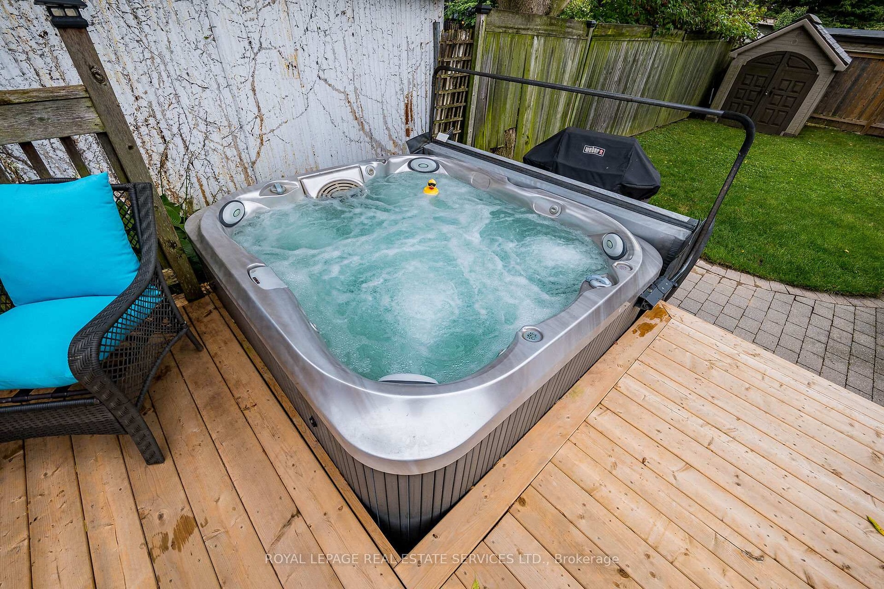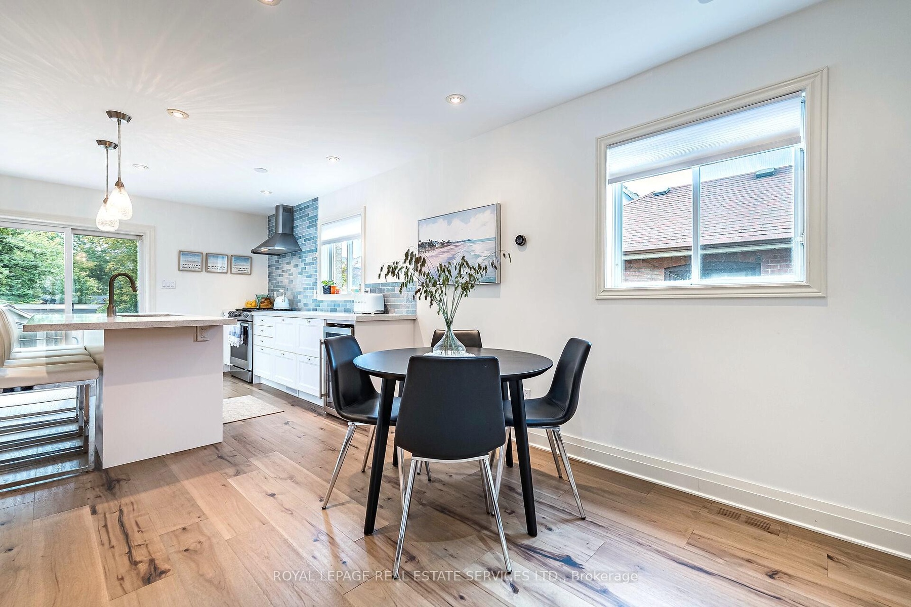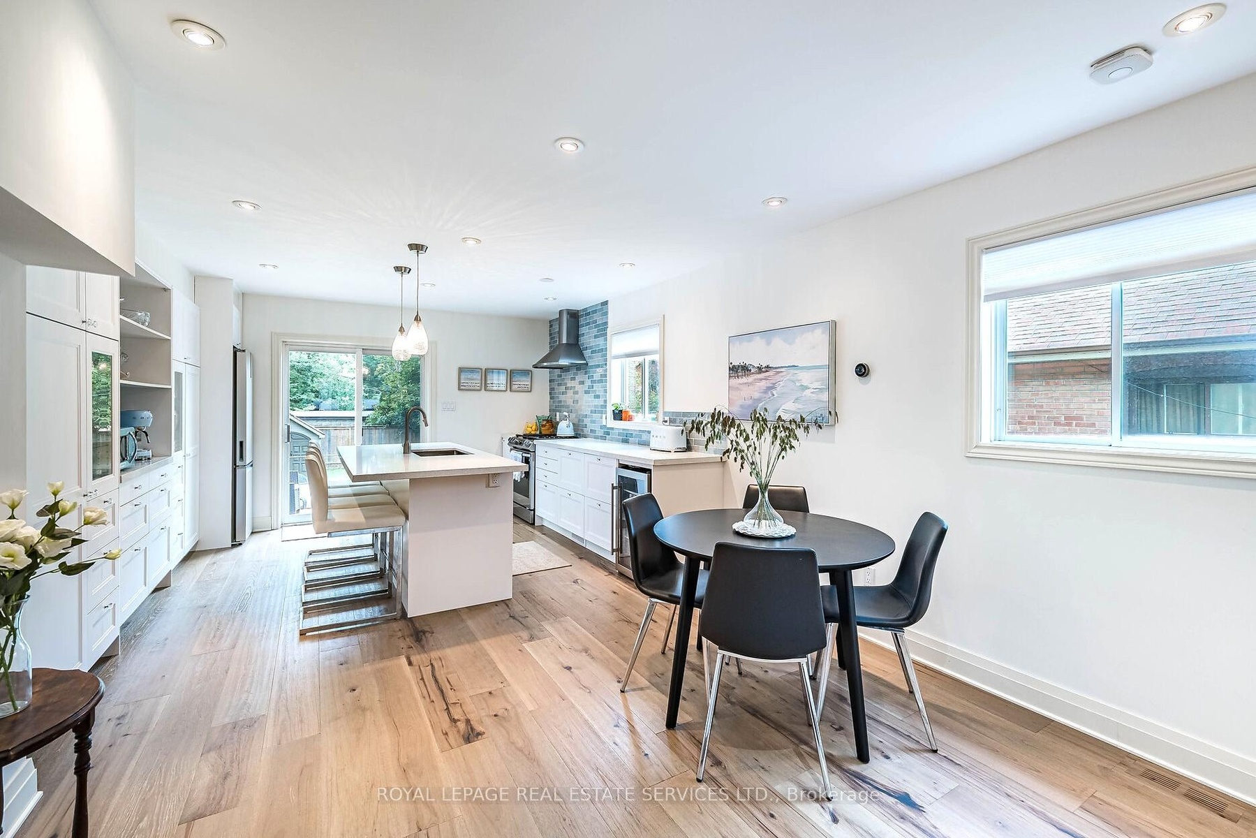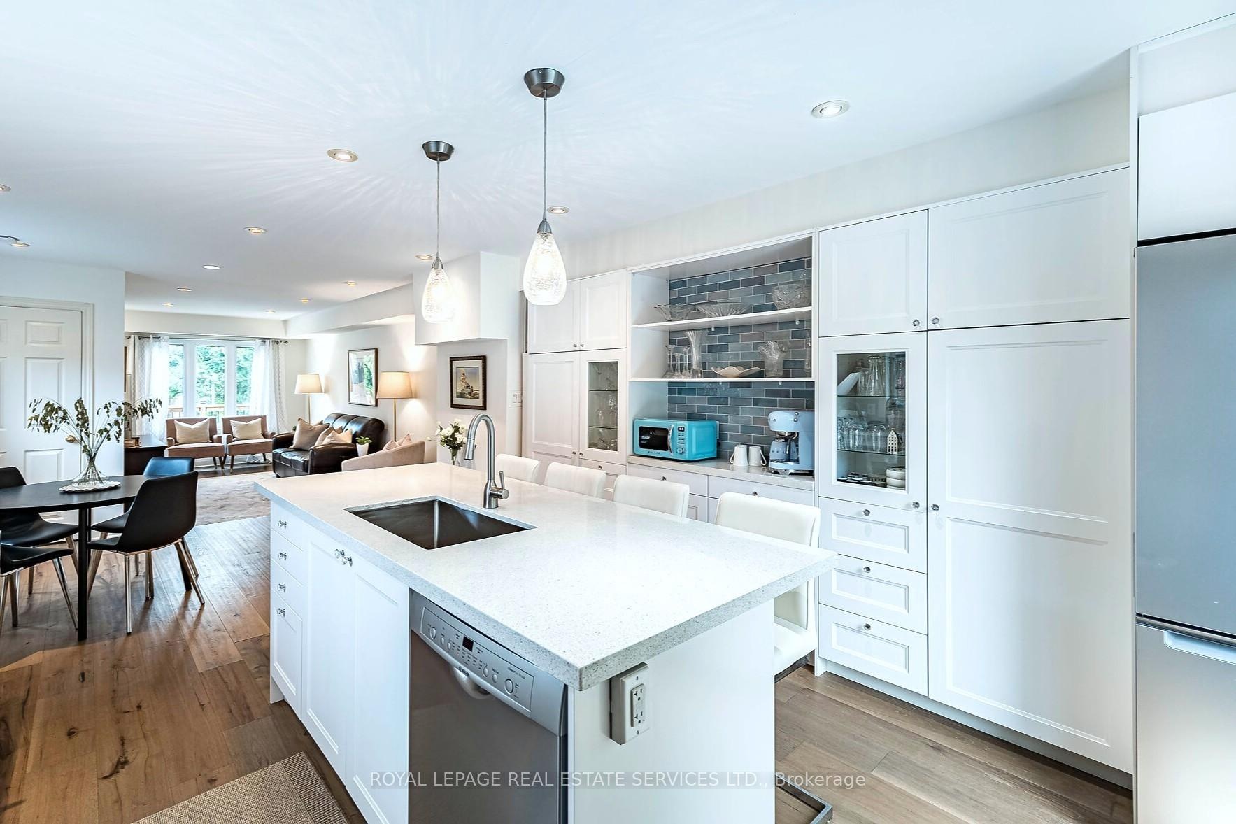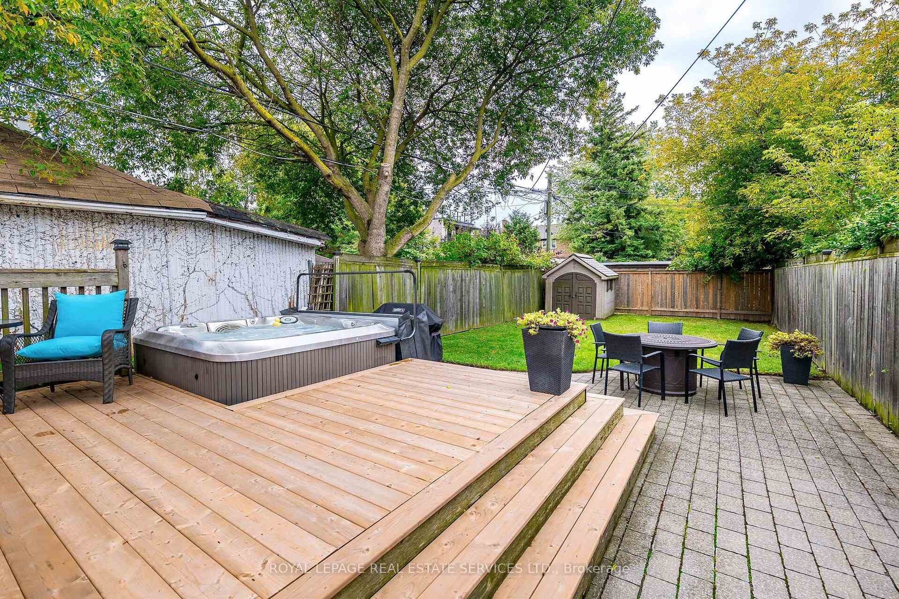 This simply-delightful, recently renovated home offers turn-key living, stylish updates & modern decor in a wonderful, near the Lake location! This captivating, 3-bedroom, 2-bathroom home is literally a stone's throw to the Lake. It is the 1st house from Lake Shore Dr, the Waterfront Trail, and lakeside Cliff Lumsden Park with spectacular sunrises and panoramic views of Toronto's skyline. Imagine the joy of walking the dog, feeding the ducks, skipping pebbles and seeing sailboats coasting by while strolling, cycling or jogging along the Waterfront Trail! The open concept main floor was renovated in 2022, is a bright, open-concept living space that is perfect for everyday family living and entertaining alike. The gorgeous, well-appointed, chefs kitchen offers an abundance of timeless shaker style cabinets, loads of counter space, a large island and a walk-out to a sunny, west facing backyard with an impressive, 2-level deck and Jacuzzi hot tub. It is a perfect place for BBQing with family and friends! The 2nd floor is freshly painted in Cloud White by Benjamin Moore and enjoys 3 comfortable bedrooms including a 'King-sized' primary bedroom with wall-to-wall closets. The exquisite 5-piece bathroom offers a separate bathtub, shower and double sinks. The lower level was refreshed in 2024 and enjoys a fitness area with laundry closet, a cozy rec room, a home office nook, 4-piece bath, utility room and storage. Best of all, the basement has soaring 8-foot ceilings. Additional updates also include front yard hardscaping with inlaid pavers ('24); resurfaced private driveway ('22), re-shingled roof ('20), new front porch & a refreshed 2-tiered back deck. Steps to schools, pools, shopping & public transit. And, it's just a short commute downtown. Dreaming of living near the lake? Dream no longer! Now you too can enjoy the excitement of Life-by-the-Lake!