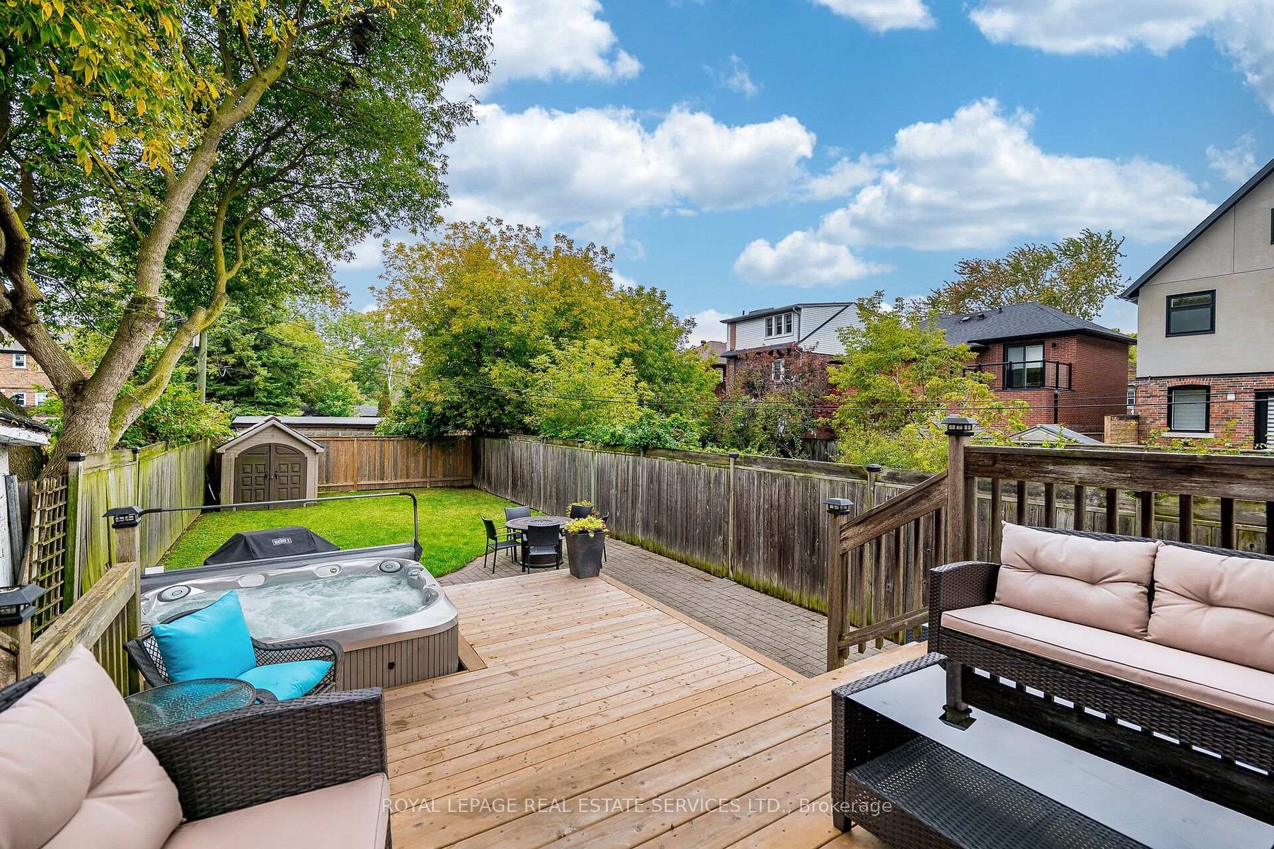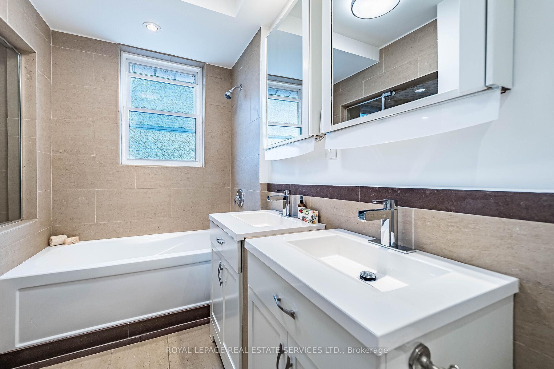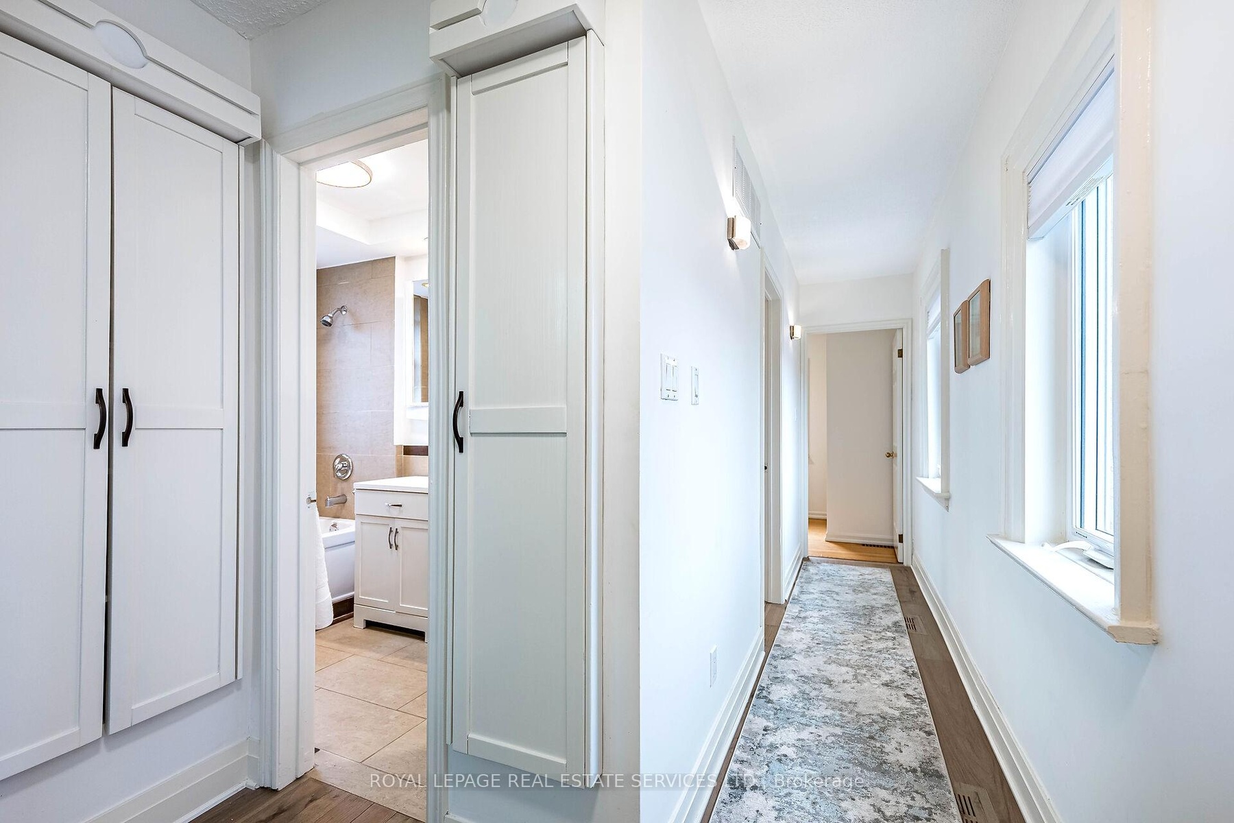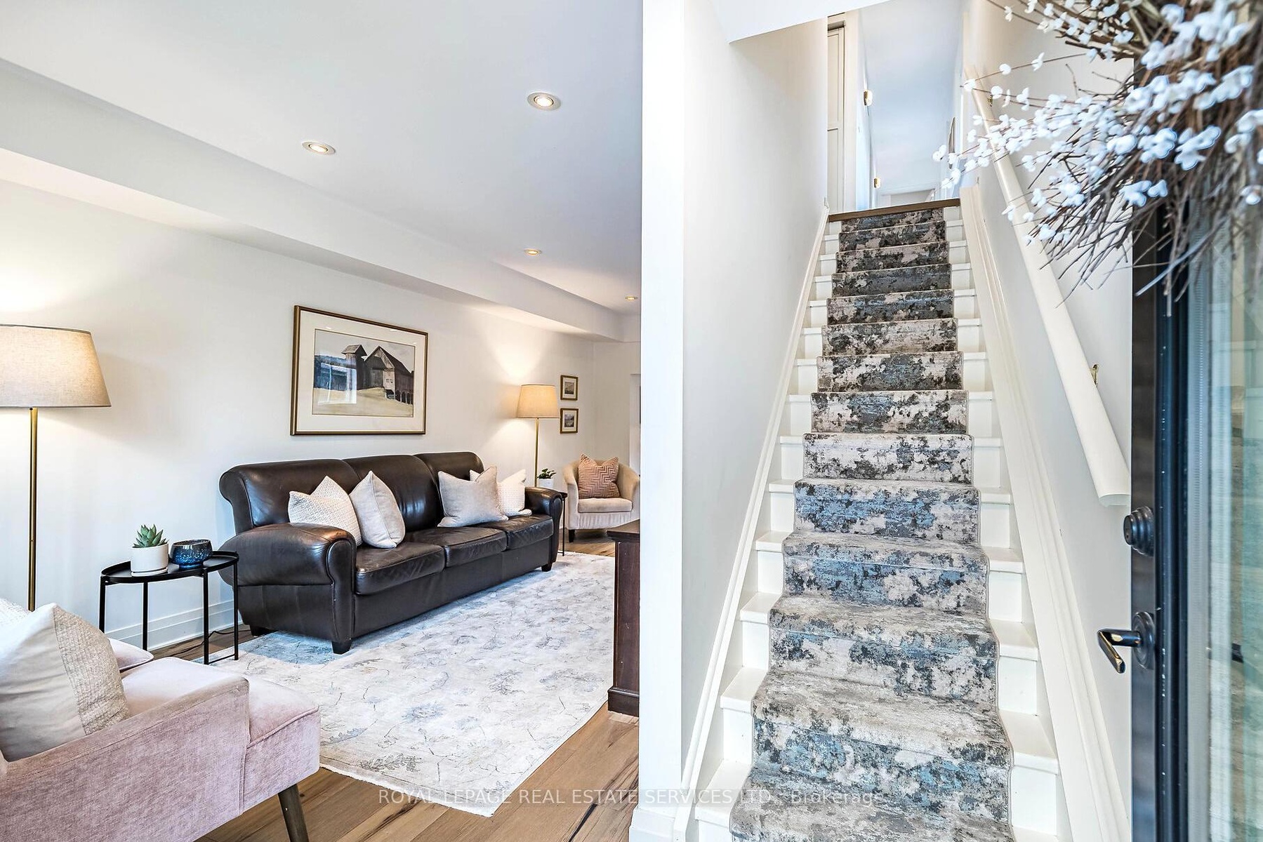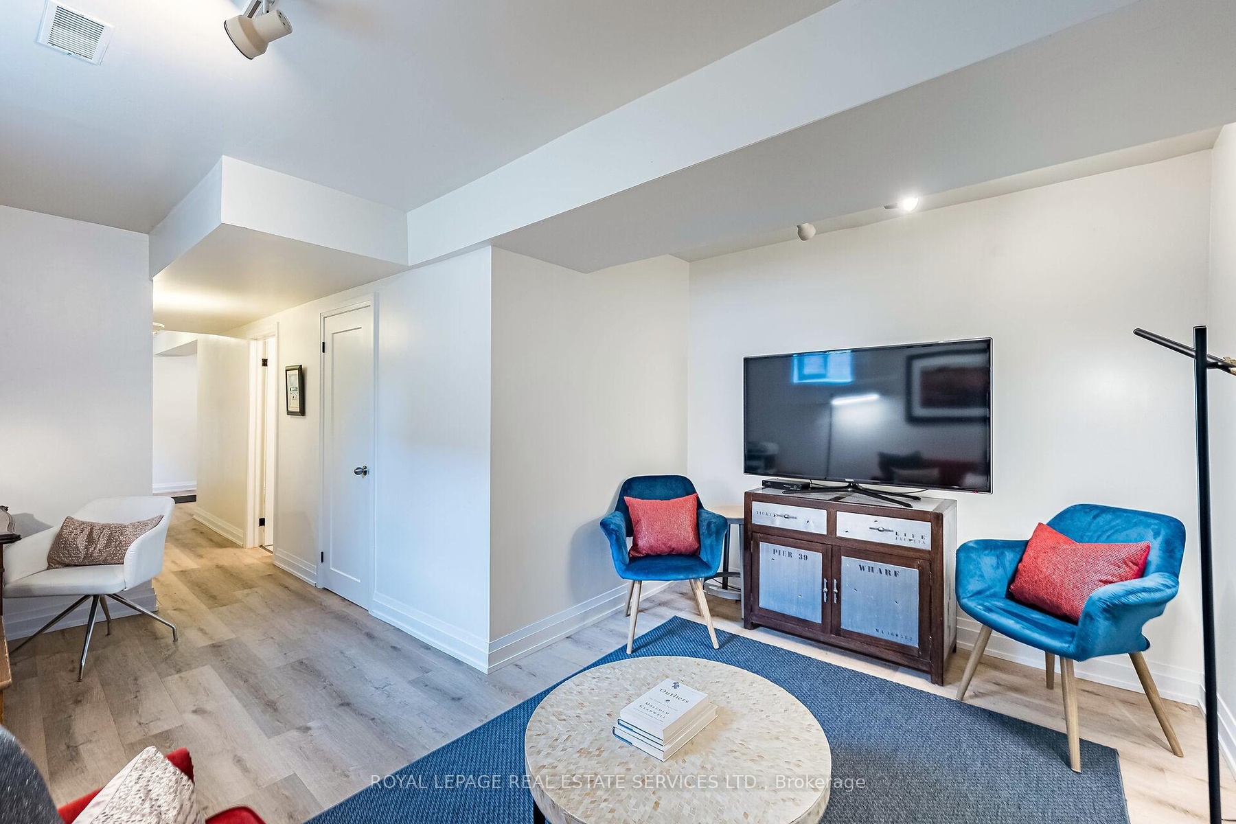 This simply-delightful, recently renovated home offers turn-key living, stylish updates & modern decor in a wonderful, near the Lake location! This captivating, 3-bedroom, 2-bathroom home is literally a stone's throw to the Lake. It is the 1st house from Lake Shore Dr, the Waterfront Trail, and lakeside Cliff Lumsden Park with spectacular sunrises and panoramic views of Toronto's skyline. Imagine the joy of walking the dog, feeding the ducks, skipping pebbles and seeing sailboats coasting by while strolling, cycling or jogging along the Waterfront Trail! The open concept main floor was renovated in 2022, is a bright, open-concept living space that is perfect for everyday family living and entertaining alike. The gorgeous, well-appointed, chefs kitchen offers an abundance of timeless shaker style cabinets, loads of counter space, a large island and a walk-out to a sunny, west facing backyard with an impressive, 2-level deck and Jacuzzi hot tub. It is a perfect place for BBQing with family and friends! The 2nd floor is freshly painted in Cloud White by Benjamin Moore and enjoys 3 comfortable bedrooms including a 'King-sized' primary bedroom with wall-to-wall closets. The exquisite 5-piece bathroom offers a separate bathtub, shower and double sinks. The lower level was refreshed in 2024 and enjoys a fitness area with laundry closet, a cozy rec room, a home office nook, 4-piece bath, utility room and storage. Best of all, the basement has soaring 8-foot ceilings. Additional updates also include front yard hardscaping with inlaid pavers ('24); resurfaced private driveway ('22), re-shingled roof ('20), new front porch & a refreshed 2-tiered back deck. Steps to schools, pools, shopping & public transit. And, it's just a short commute downtown. Dreaming of living near the lake? Dream no longer! Now you too can enjoy the excitement of Life-by-the-Lake!