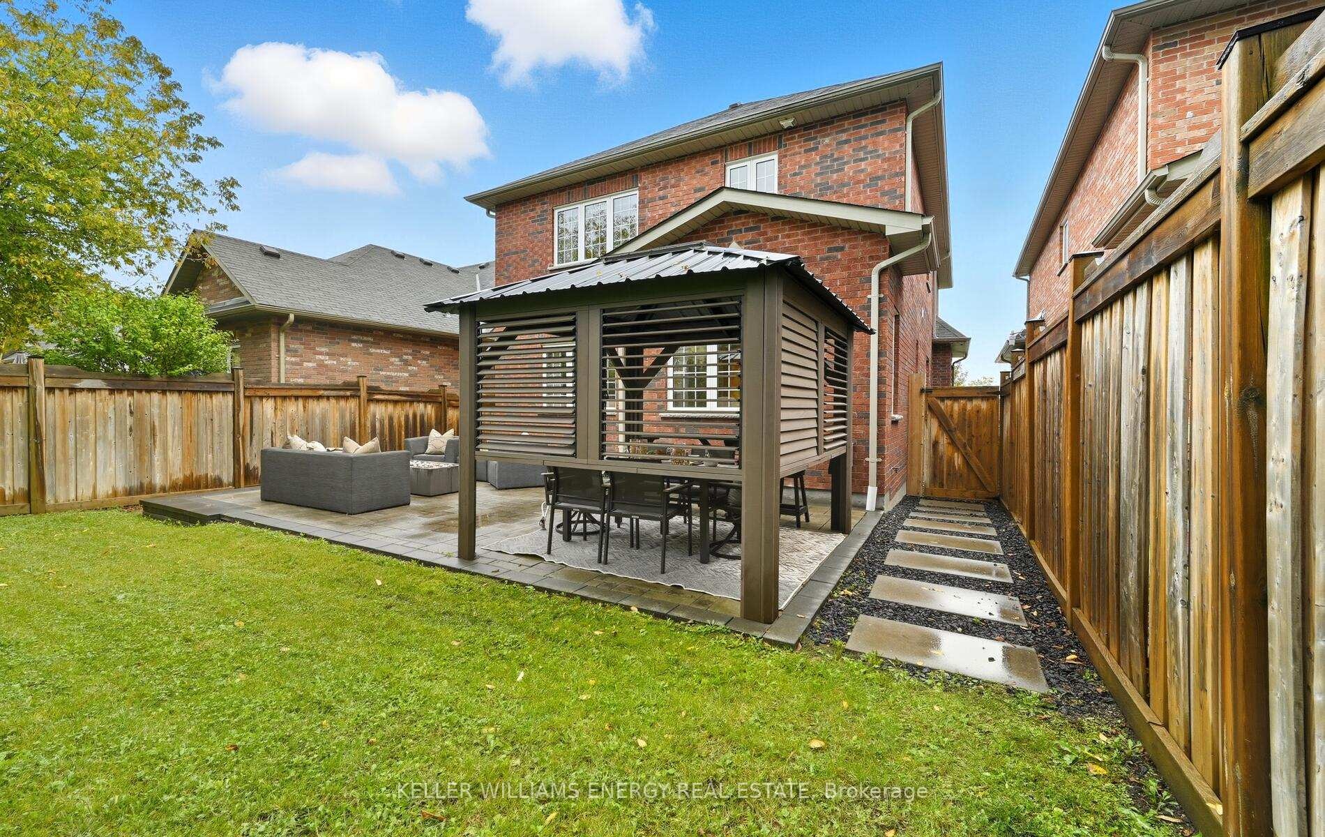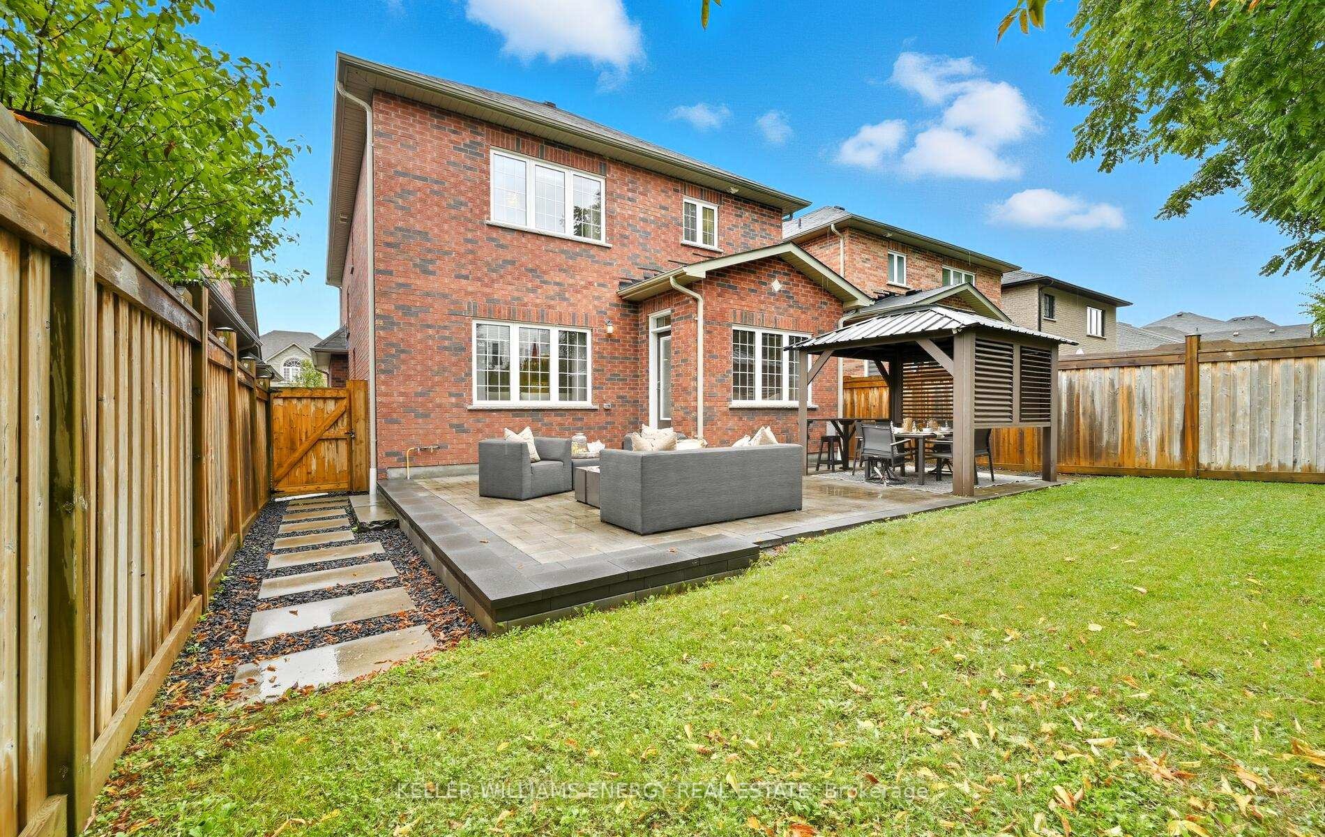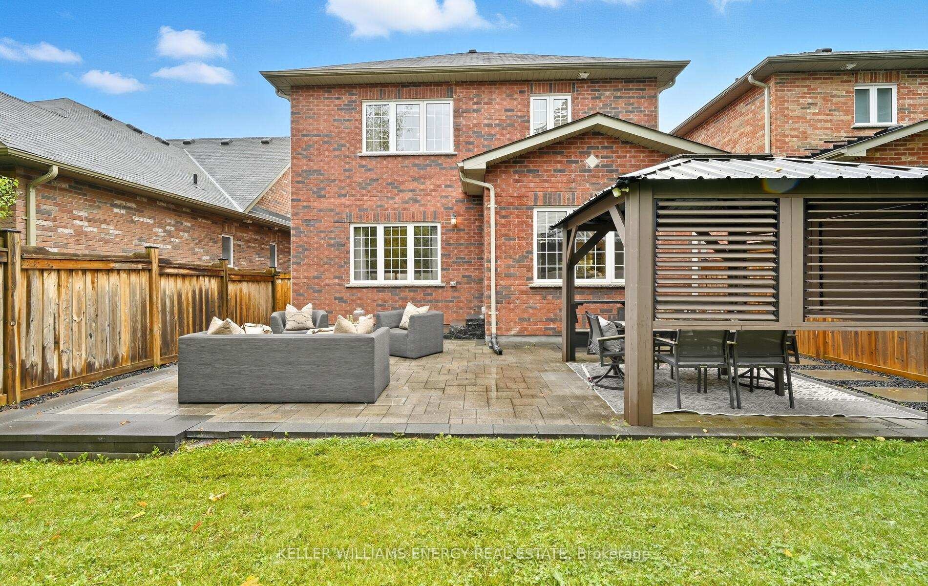 Welcome to 46 Nathan Avenue, an executive showpiece in the heart of Brooklin where timeless design meets everyday luxury. This 2-storey home commands attention with its stone, stucco and brick façade, stately front portico, and elegant exterior lighting. Professionally landscaped front and side yards lead to a fully fenced backyard oasis featuring a Rain Bird irrigation system (5 zones), interlock walkways, and dual gated entrances. Gather with family and friends around the gas fire table, enjoy evenings under the gazebo this outdoor space is made for entertaining. Inside, the grand entrance is framed by custom moldings and trim that set the tone for the refined finishes throughout. The dream kitchen boasts soft-close cabinetry, an oversized island with breakfast bar, pendant lighting, pot drawers, upgraded backsplash, and built-in oven and microwave. French doors extend the living space and natural light. The main floor flows seamlessly with smooth ceilings, 9-foot height, upgraded hardwood and ceramic tile, plus waffle ceilings in the family room, dining room, and office. A custom bookcase in the family room, pot lighting throughout, and a wet bar with cabinetry and wine fridge elevate both style and function. Upstairs, the primary retreat offers pot lighting, a spa-inspired ensuite with upgraded rain shower, double under-mount sinks, and a generous walk-in closet. Three additional bedrooms are equally spacious and versatile. Each is finished with blackout blinds, upgraded lighting, privacy shades, and plush broadloom with upgraded under-pad. A convenient second-floor laundry room completes the level. This home is designed for modern living, offering eleven built-In speakers, central vacuum, garage access, and a 3-ton A/C unit. Lifestyle details from the under-mount sinks throughout to custom crown moldings, upgraded fixtures, and window coverings showcase true pride of ownership.