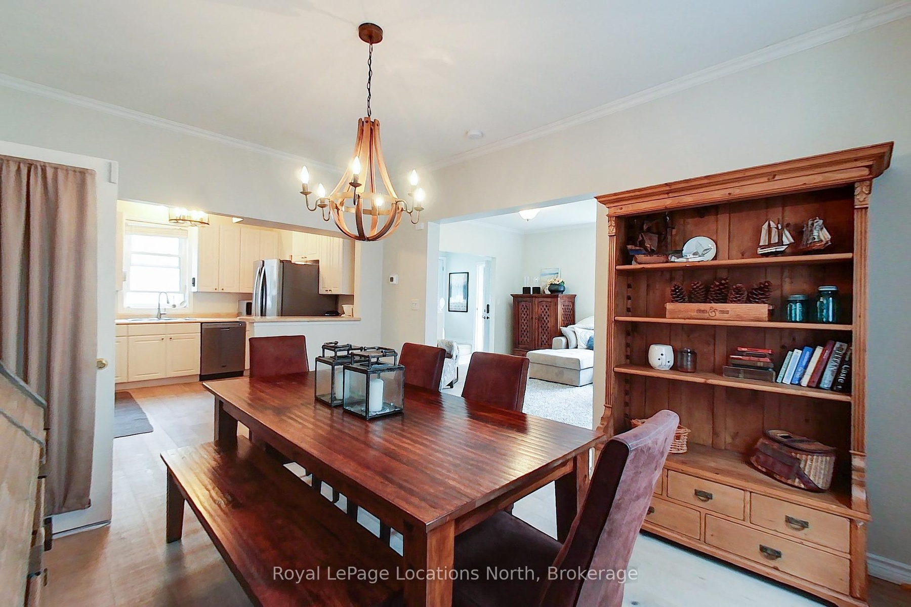 Lovely two storey brick Century Home just steps from Meaford's inner harbour, local shops and restaurants and Meaford Hall - Welcome to 36 Nelson St. Currently functioning as a two unit dwelling or could easily be converted back to a single family home. Unit One has three generous bedrooms, one and a half baths, in suite laundry, large kitchen, living and dining rooms, a balcony and covered front porch. Unit Two is a one bed, two bath unit with large kitchen and living room. Outside, enjoy a rear deck, large yard and a detached garage. Many upgrades to interior finishes including engineered wide plank flooring on main floor, furnace (2021) and roof (2023 & 2025).