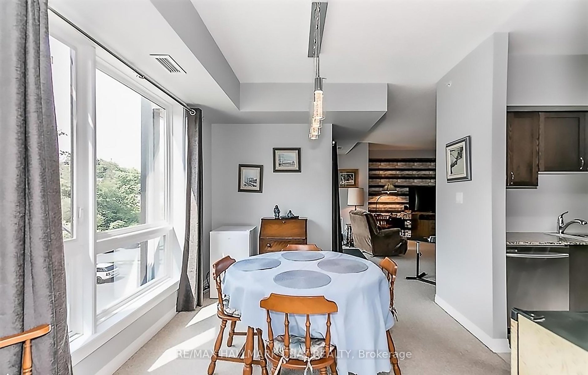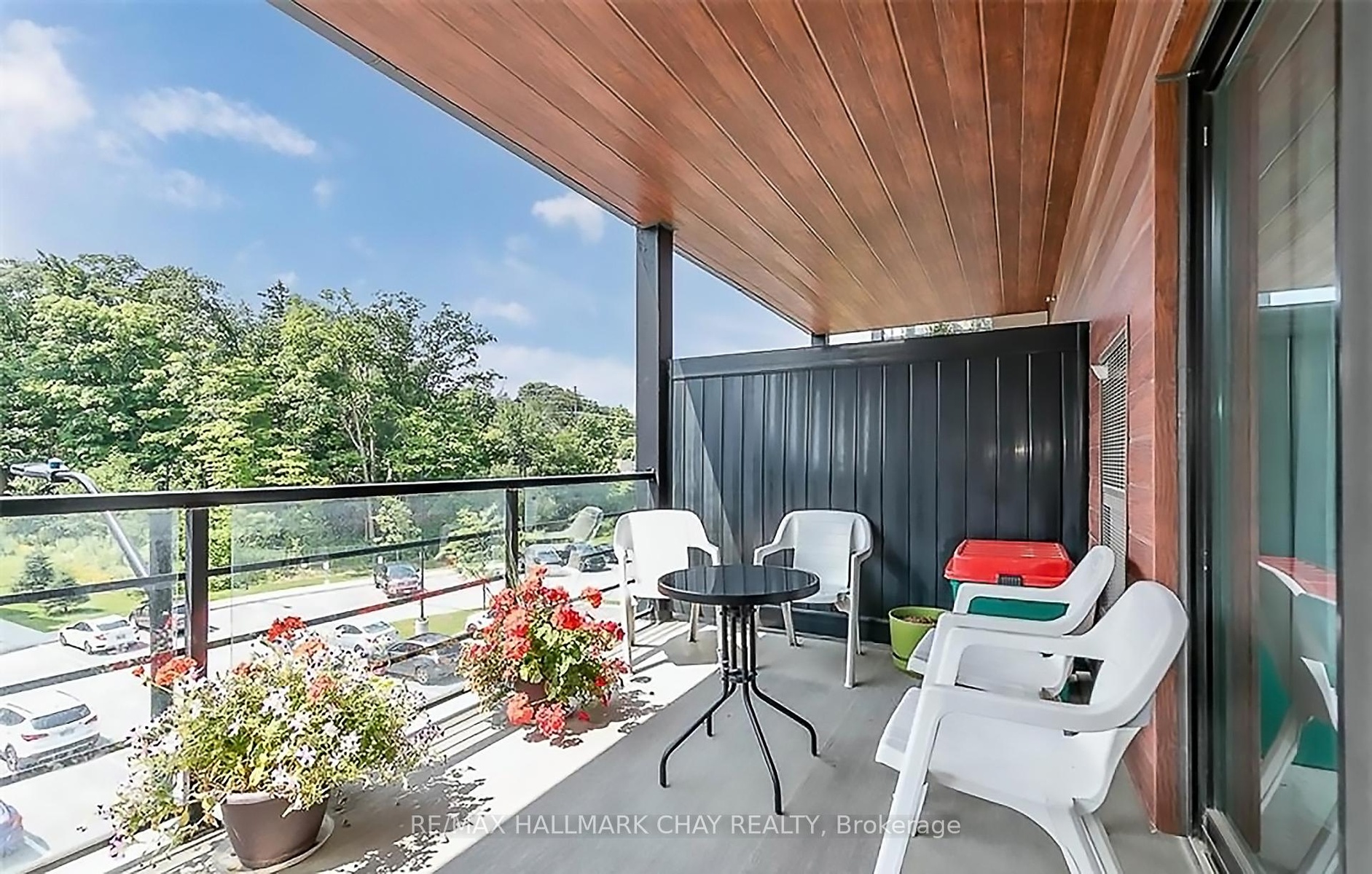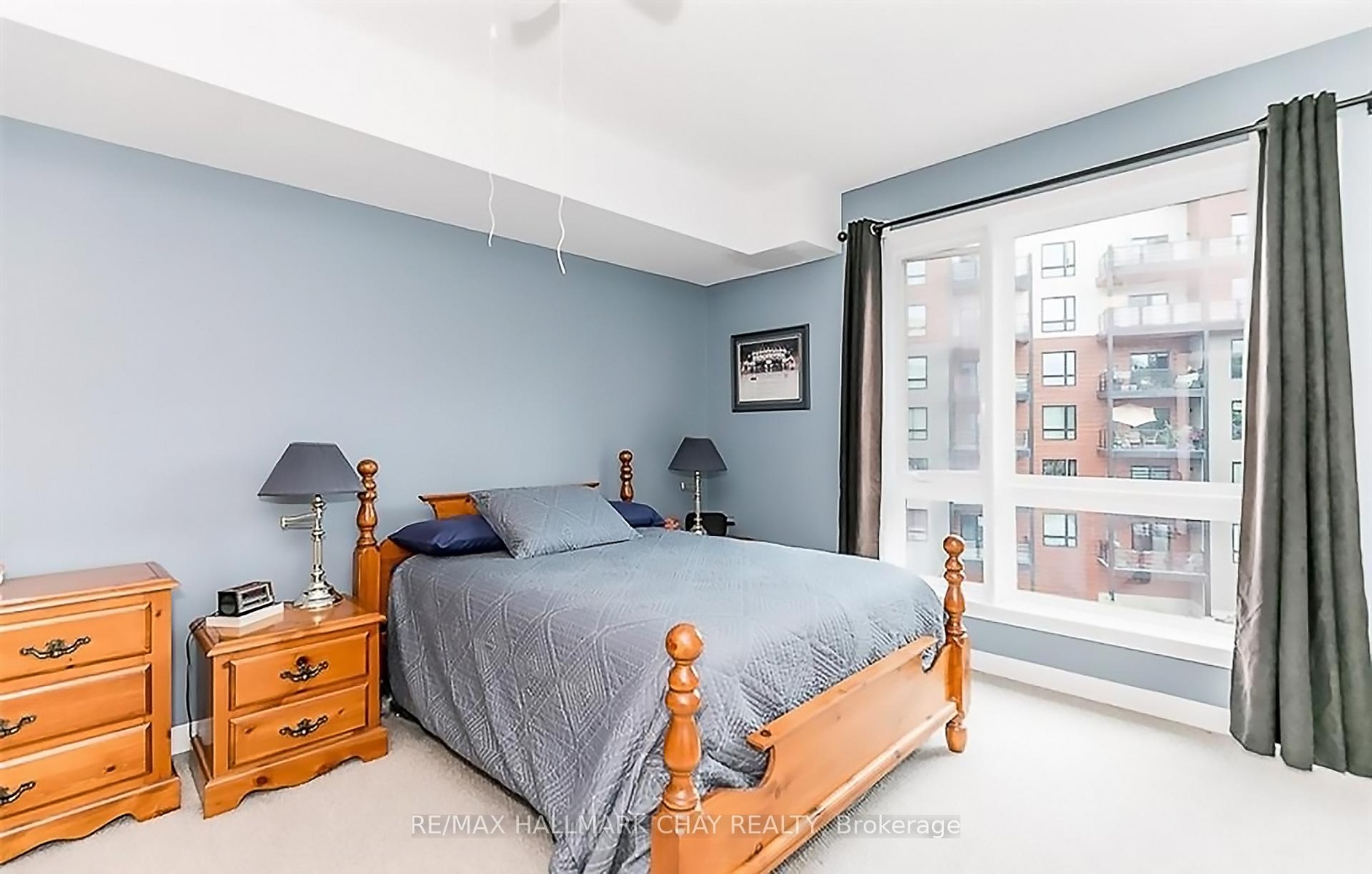 Welcome to the Gallery condo community! Making the switch to condo living has never been so easy! Enjoy this care-free condo lifestyle - no mowing lawns, shoveling driveways! This popular and sought-after corner condo unit is bright with natural light via additional windows. The floor plan for this 1,454 sq.ft. corner suite features 9' ceilings, open concept with an abundance of functional living space, walk out to premium large, covered, wrap-around balcony, as well as primary bedroom, another spacious bedroom + flex space of the den, two full baths. Convenience of ensuite laundry, BBQs allowed on your balcony (2.34m x 4.37m). You will appreciate TWO PARKING SPOTS - 1 indoor & 1 outdoor, plus a storage locker. This building offers one of the best roof top patios around - al fresco dining, entertaining, summer morning coffee dates, evening wrap up & chill time. Steps to trails for hiking, biking, easy access to key amenities - shopping, services, casual and fine dining, entertainment and recreation. Commuting? Public transit, GO Train service and great highway access north to cottage country or south to the GTA. Welcome to the convenience condo lifestyle has to offer. Take a look today!