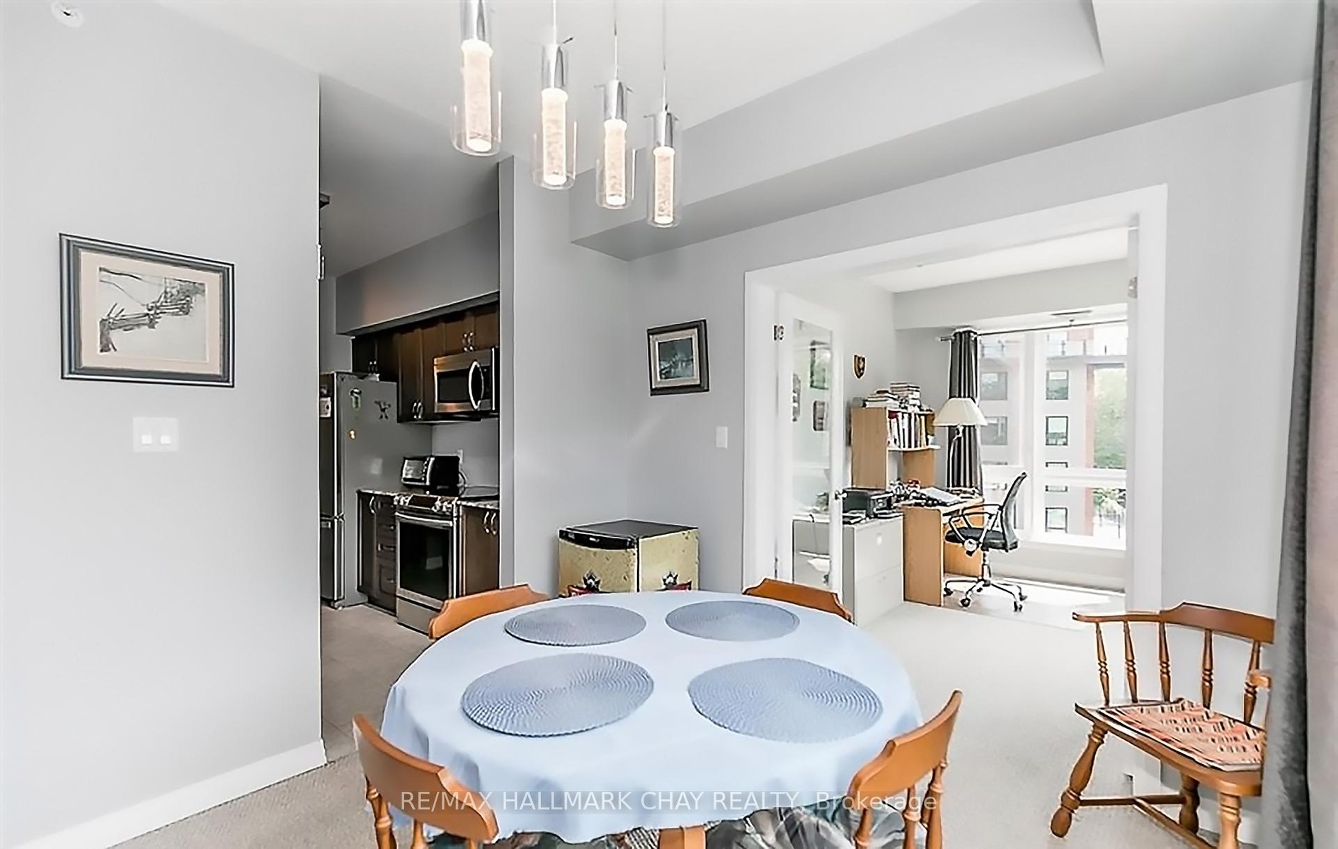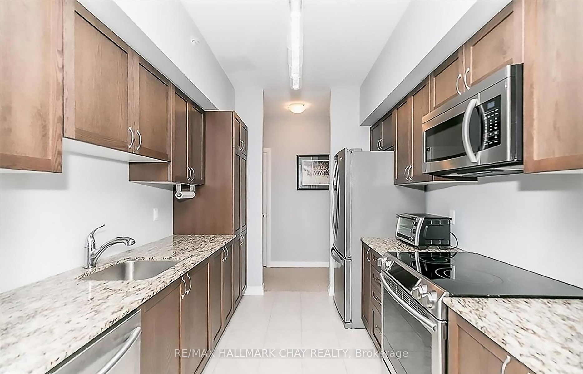 DescriptionWelcome to the Gallery condo community! Making the switch to condo living has never been so easy! Enjoy this care-free condo lifestyle - no mowing lawns, shoveling driveways! This popular and sought-after corner condo unit is bright with natural light via additional windows. The floor plan for this 1,454 sq.ft. corner suite features 9' ceilings, open concept with an abundance of functional living space, walk out to premium large, covered, wrap-around balcony, as well as primary bedroom, another spacious bedroom + flex space of the den, two full baths. Convenience of ensuite laundry, BBQs allowed on your balcony (2.34m x 4.37m). You will appreciate TWO PARKING SPOTS - 1 indoor & 1 outdoor, plus a storage locker. This building offers one of the best roof top patios around - al fresco dining, entertaining, summer morning coffee dates, evening wrap up & chill time. Steps to trails for hiking, biking, easy access to key amenities - shopping, services, casual and fine dining, entertainment and recreation. Commuting? Public transit, GO Train service and great highway access north to cottage country or south to the GTA. Welcome to the convenience condo lifestyle has to offer. Take a look today!Virtual Tour: https://youtu.be/On6kPCNioVMAmenities- BBQs Allowed