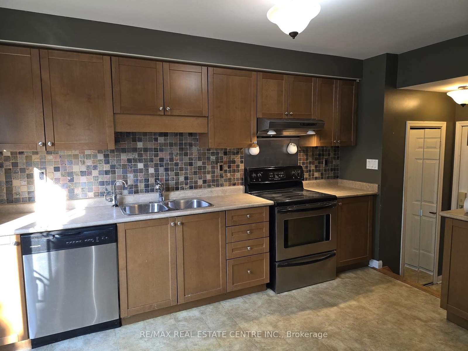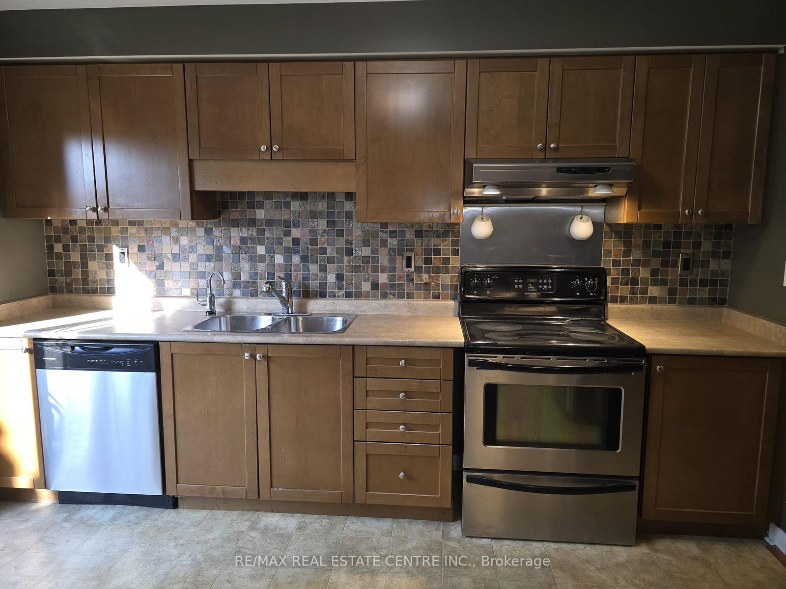 Beautiful 3 Beds, 3 Baths Town house with finished basement and 3 Parking spaces. Backs on to a GREEN SPACE. Lovely and peaceful landscaped fully fenced Private backyard is one of the great features of this house. No Houses in the back. Located in the heart of Milton (Thompson and Clark). Steps to Parks, Public Transit and schools. Milton Go is merely 3 Km away. Heartbeat to new Freshco, Metro, Shoppers Drug Mart, and Many New Restaurants. Minutes to Highway 401. Freshly Painted. Entrance from Garage to home. . The basement has a large Rec room and 3 pc bath and storage room. Master Bedroom has walk in closet and semi-ensuite 4 Pc. bath. Front Entrance has a glass enclosed porch. Comes with One Garage and 2 car park extended driveway with NO SIDEWALK. For List of schools and parks, please see the attached schedule. A great Neighborhood for raising your children. The previous tenants stayed for over 8 years. Looking for A++ tenants only. Available Immediately.